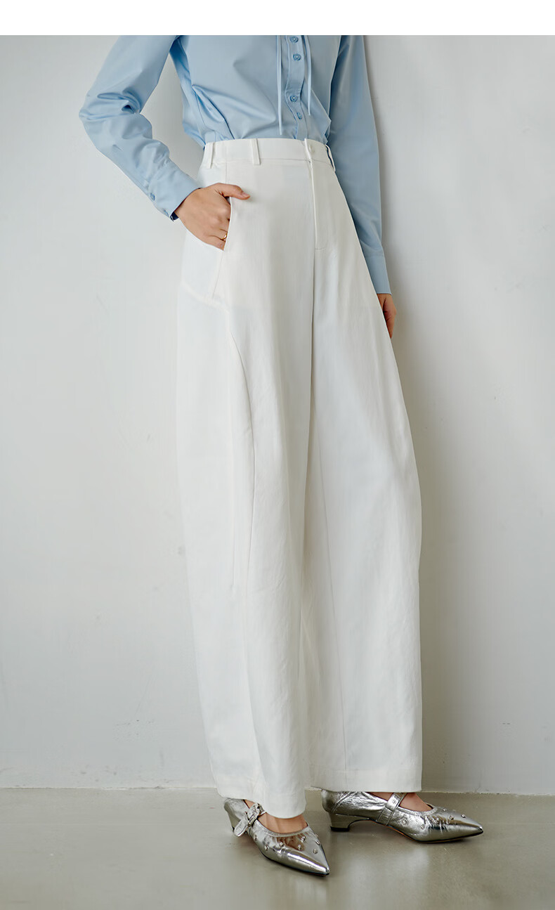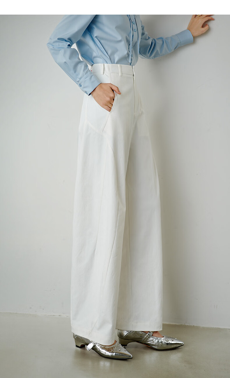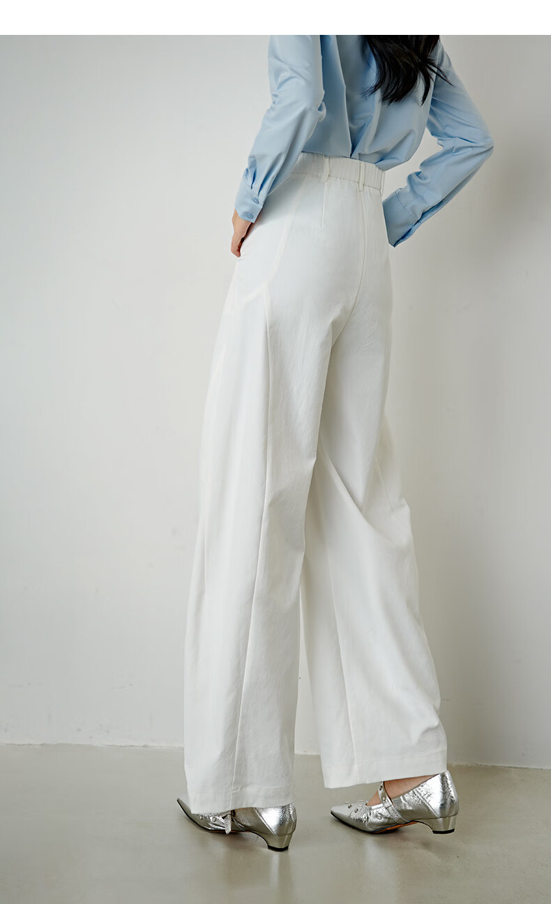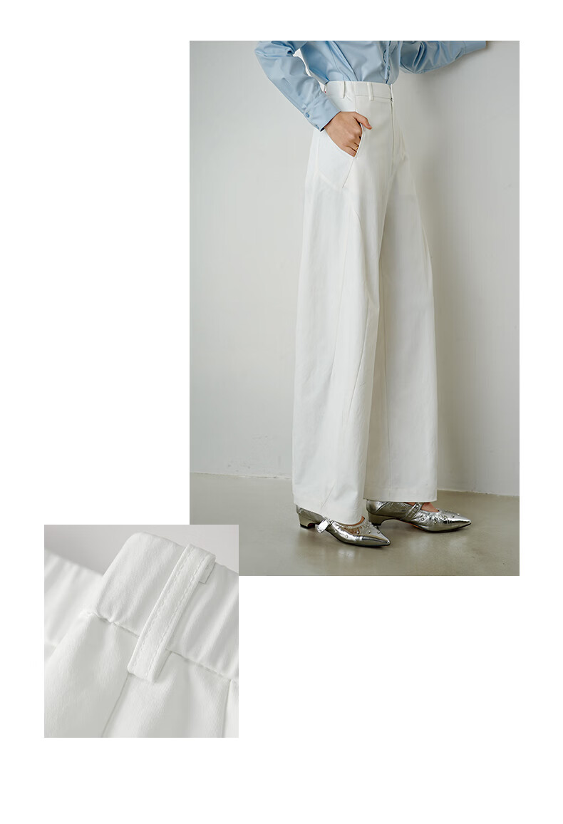 晚白【新品】2026春款休闲后松紧腰立体拼缝山本裤高腰遮胯显瘦阔腿裤 白色 26