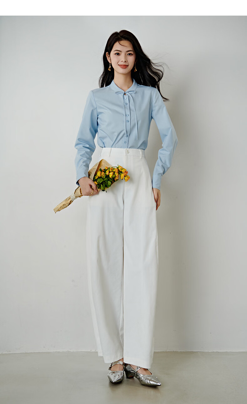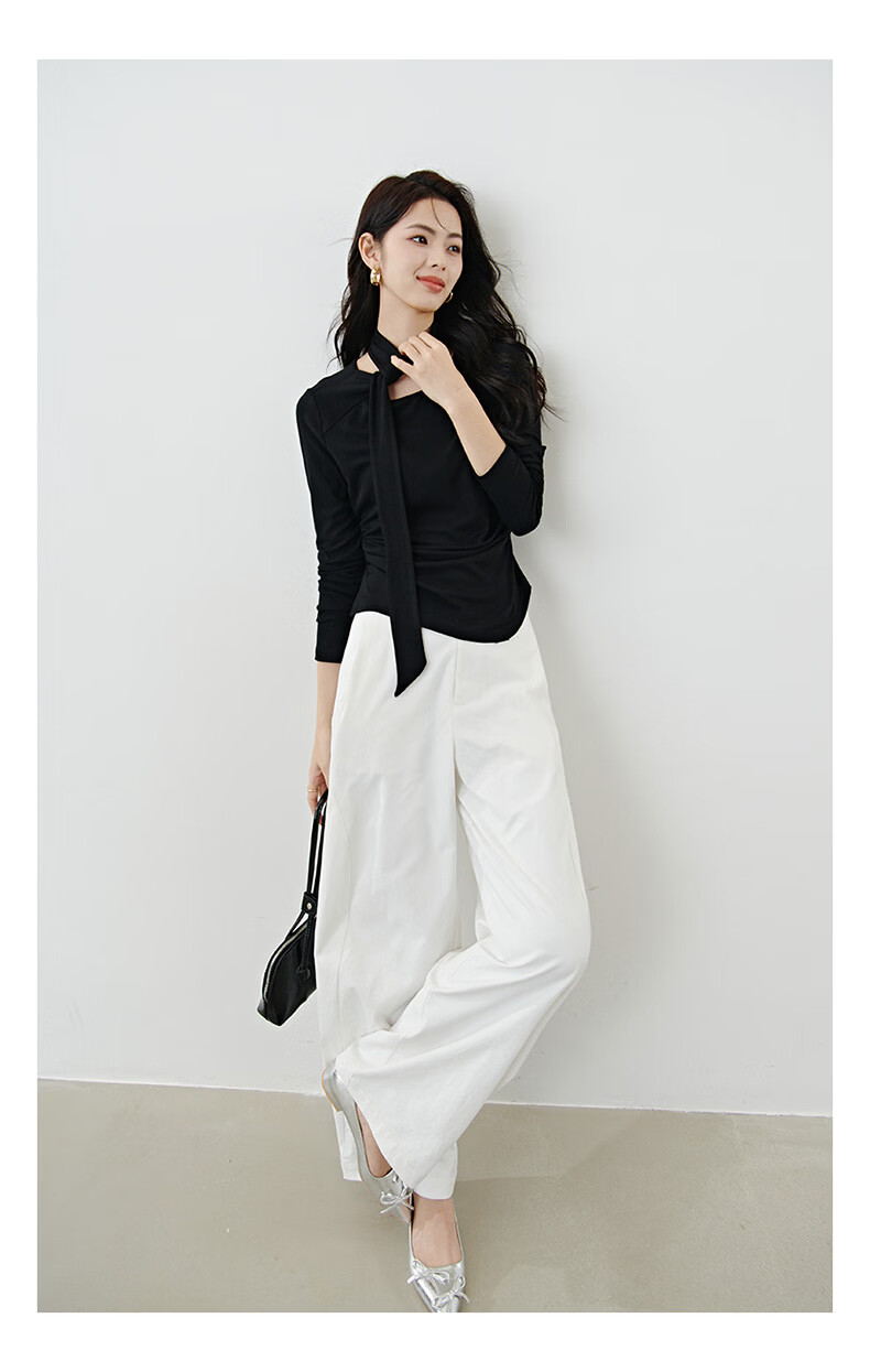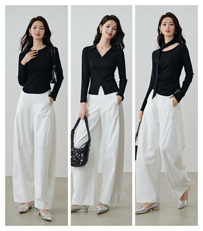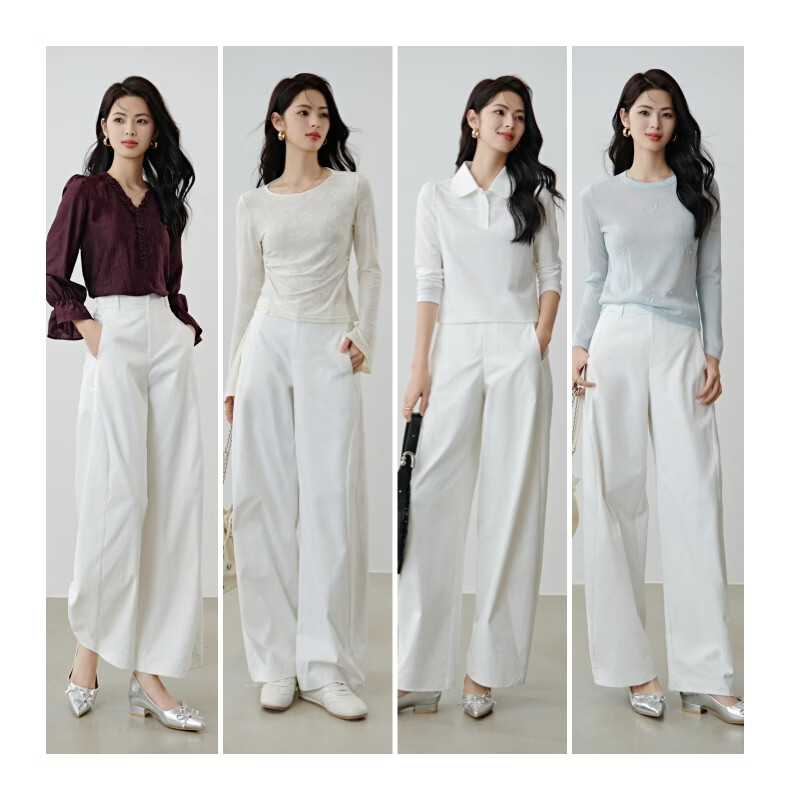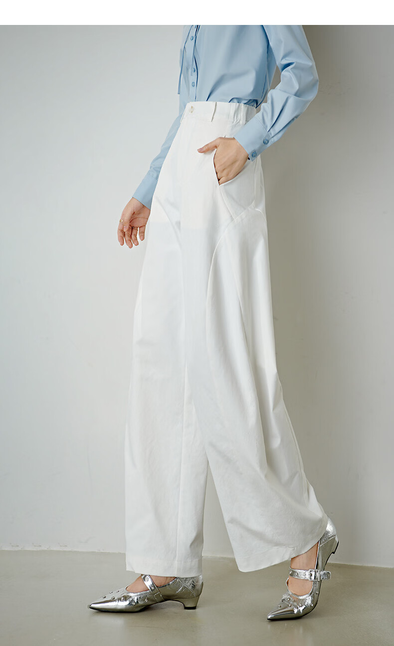 晚白【新品】2026春款休闲后松紧腰立体拼缝山本裤高腰遮胯显瘦阔腿裤 白色 26