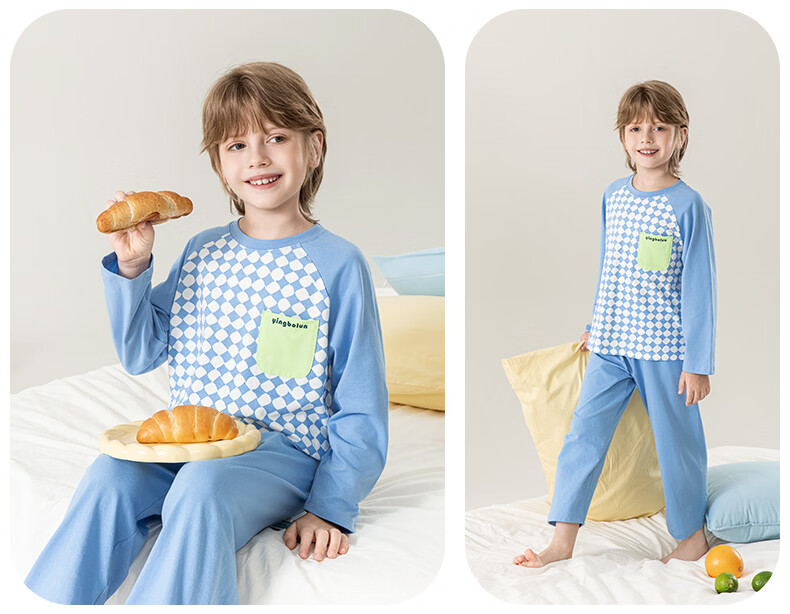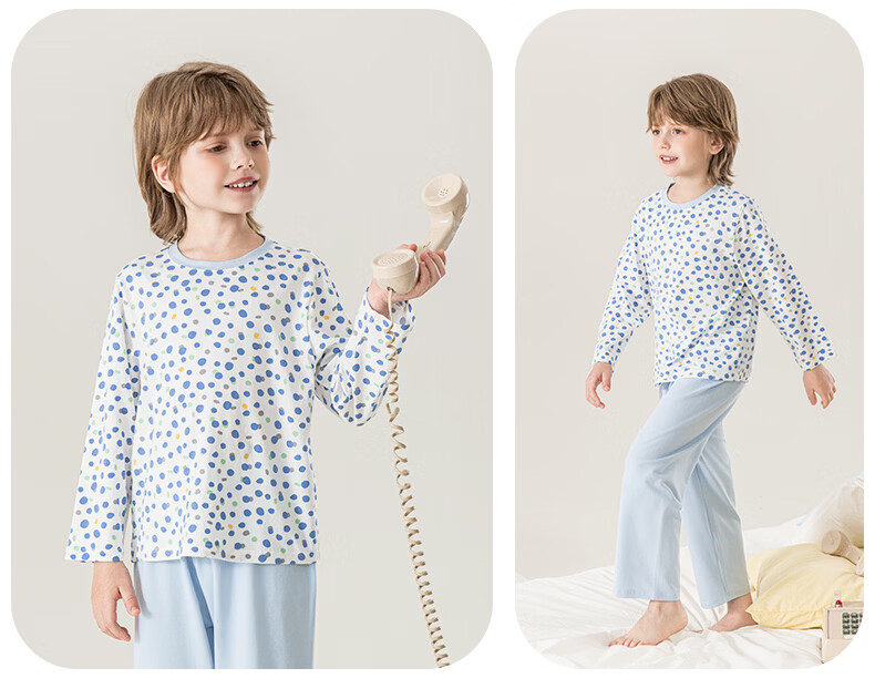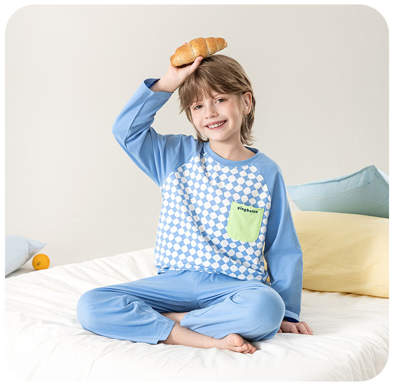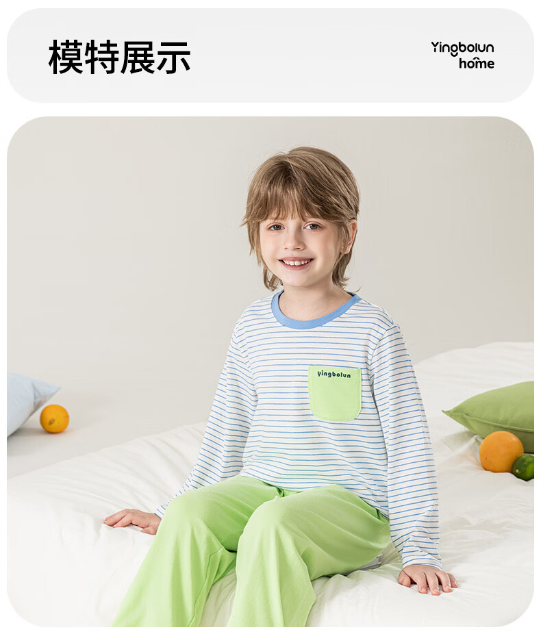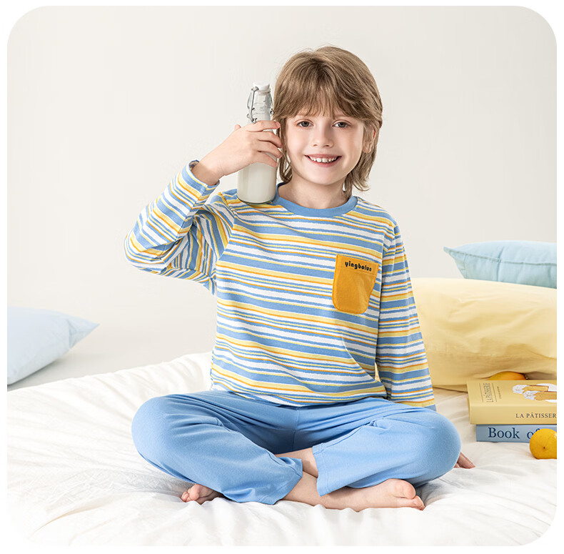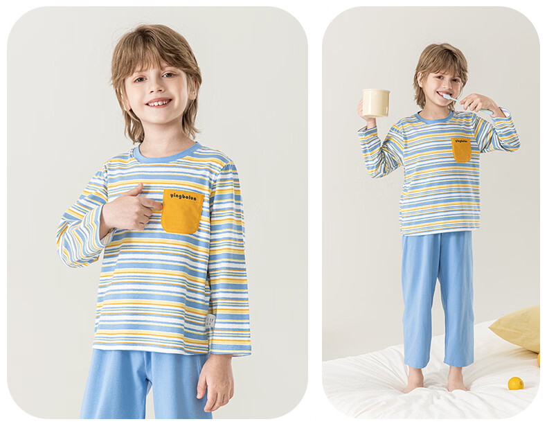 英博伦男童睡衣儿童纯棉家居服长袖套装26春秋款中大童秋衣秋裤 60577浅兰条 110