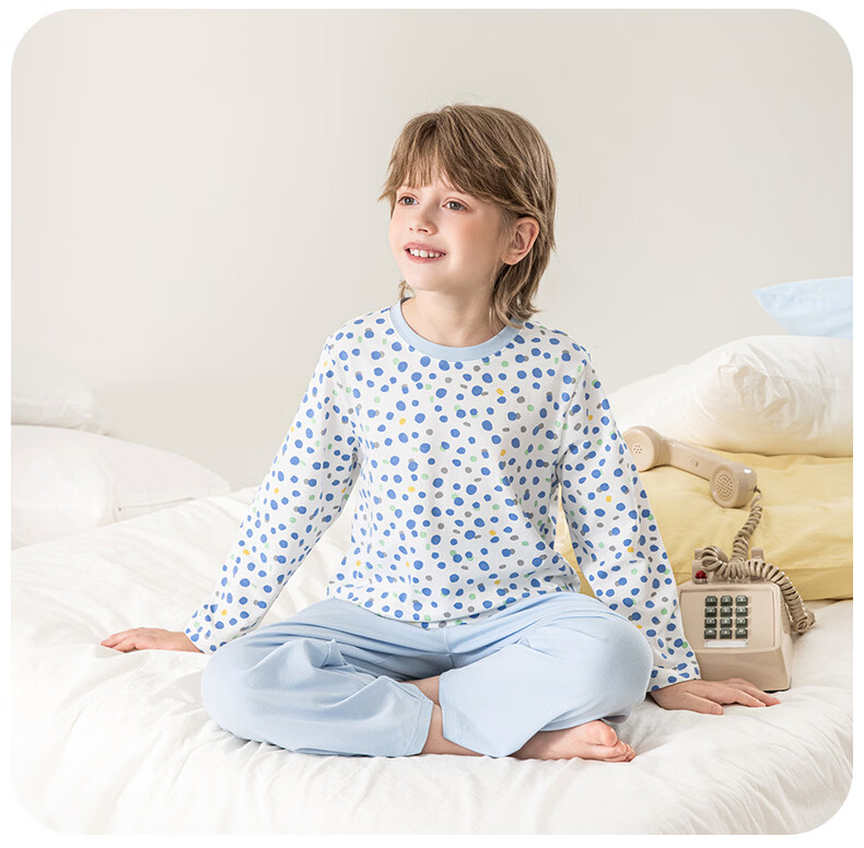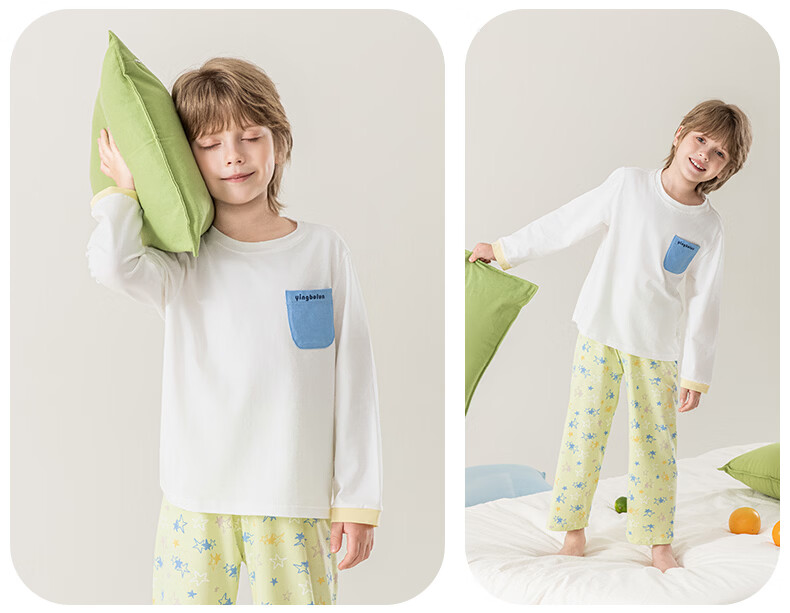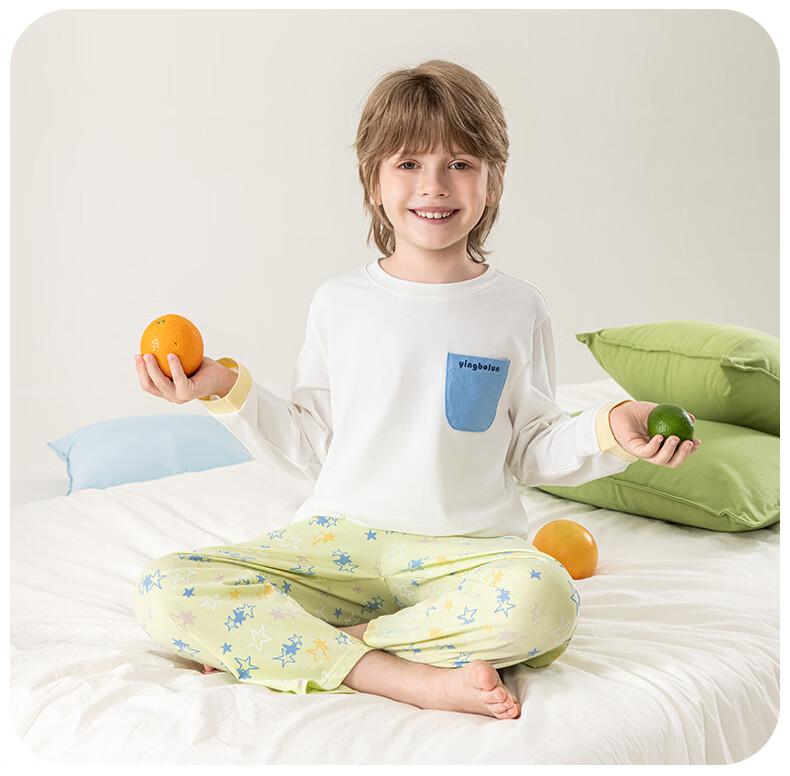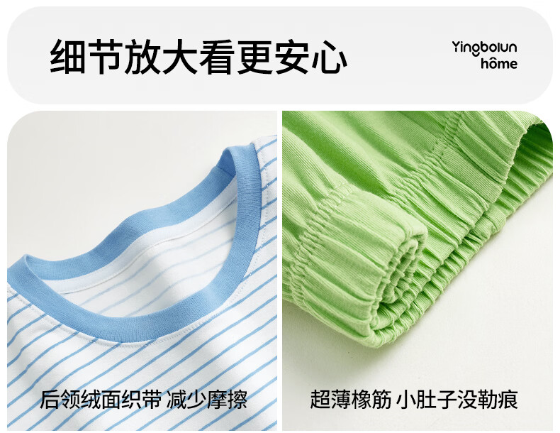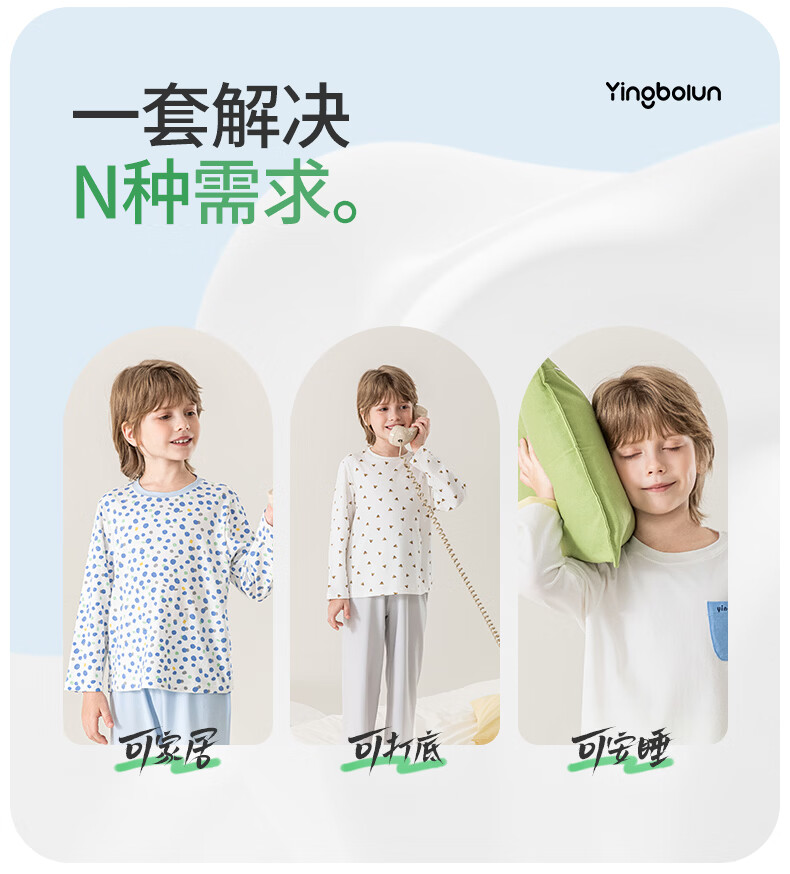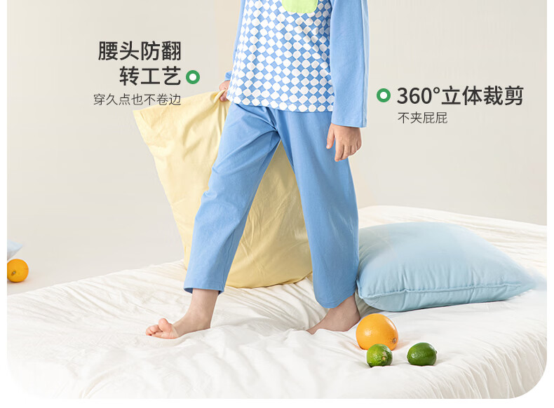 英博伦男童睡衣儿童纯棉家居服长袖套装26春秋款中大童秋衣秋裤 60577浅兰条 110