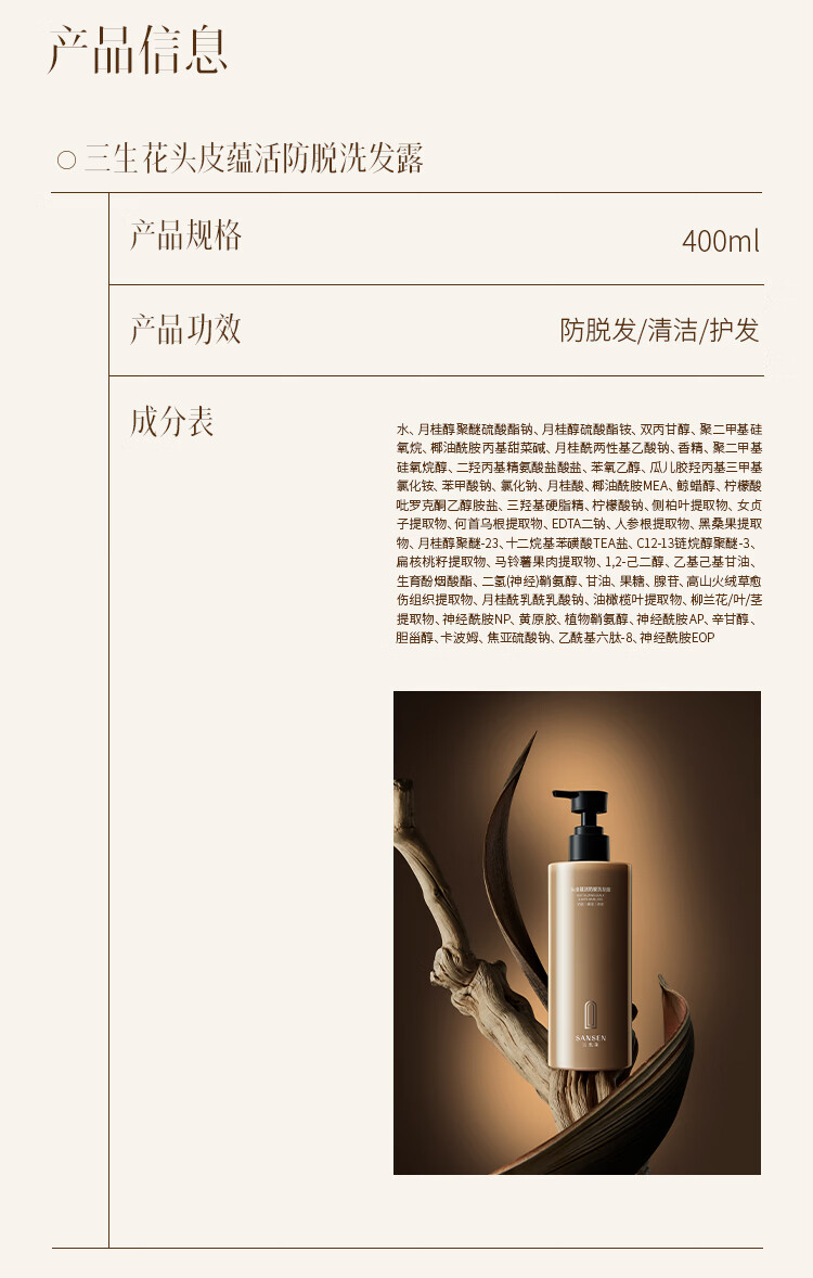 三生花屈臣氏三生花头皮蕴活防脱洗发露 400ml*1瓶
