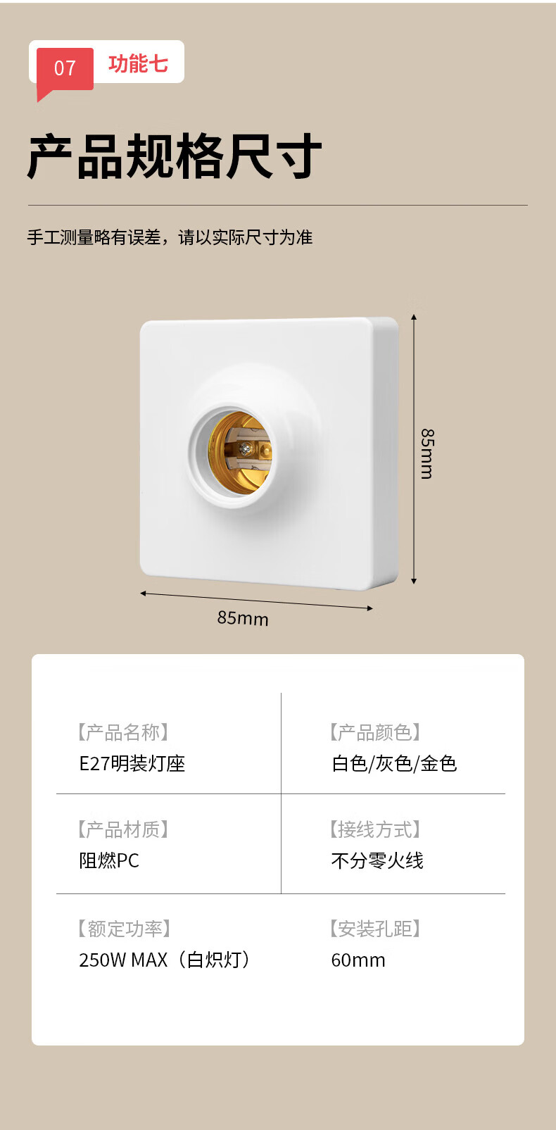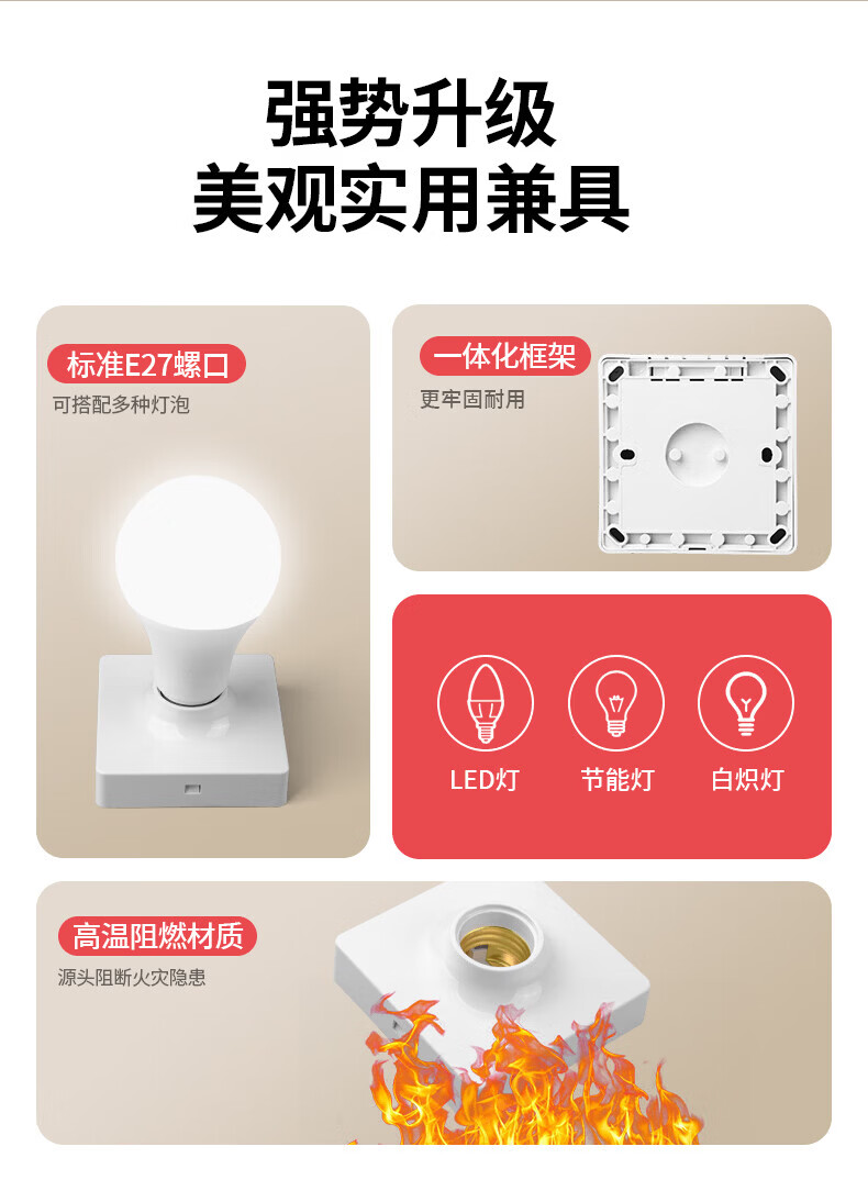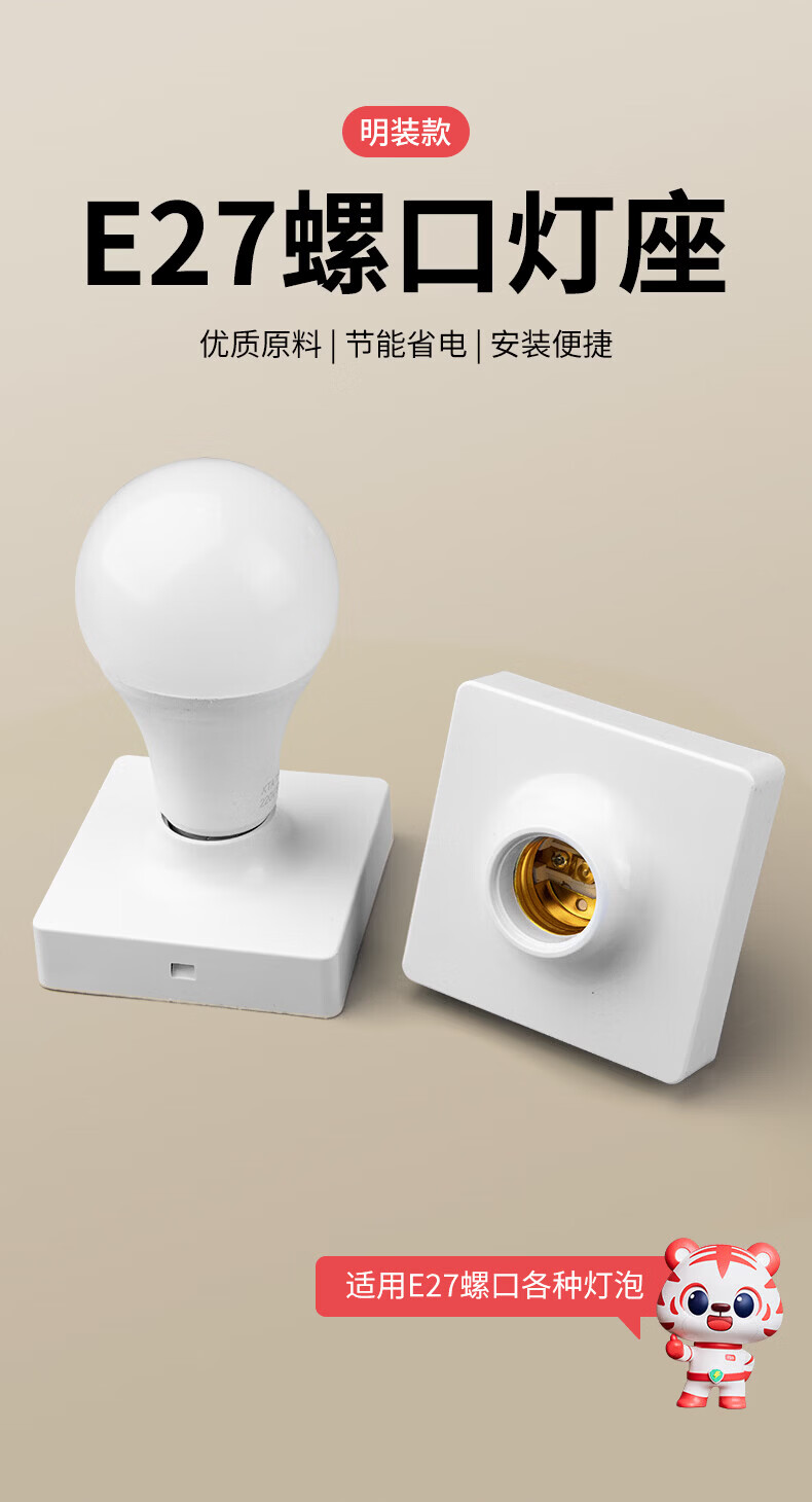 国际电工(FDD)明装E27通用螺口灯座LED灯泡螺旋灯头方形螺纹灯口家用节能灯底座 白色E27螺口明装灯座