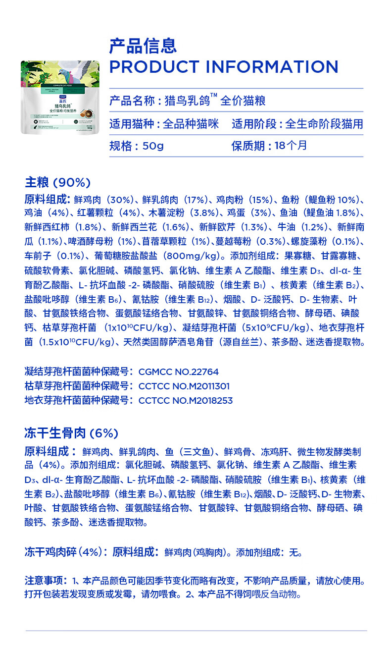 LEGENDSANDY蓝氏全价猫粮生鲜高能系列成猫幼猫 试用 试吃 猎鸟乳鸽 50g*5