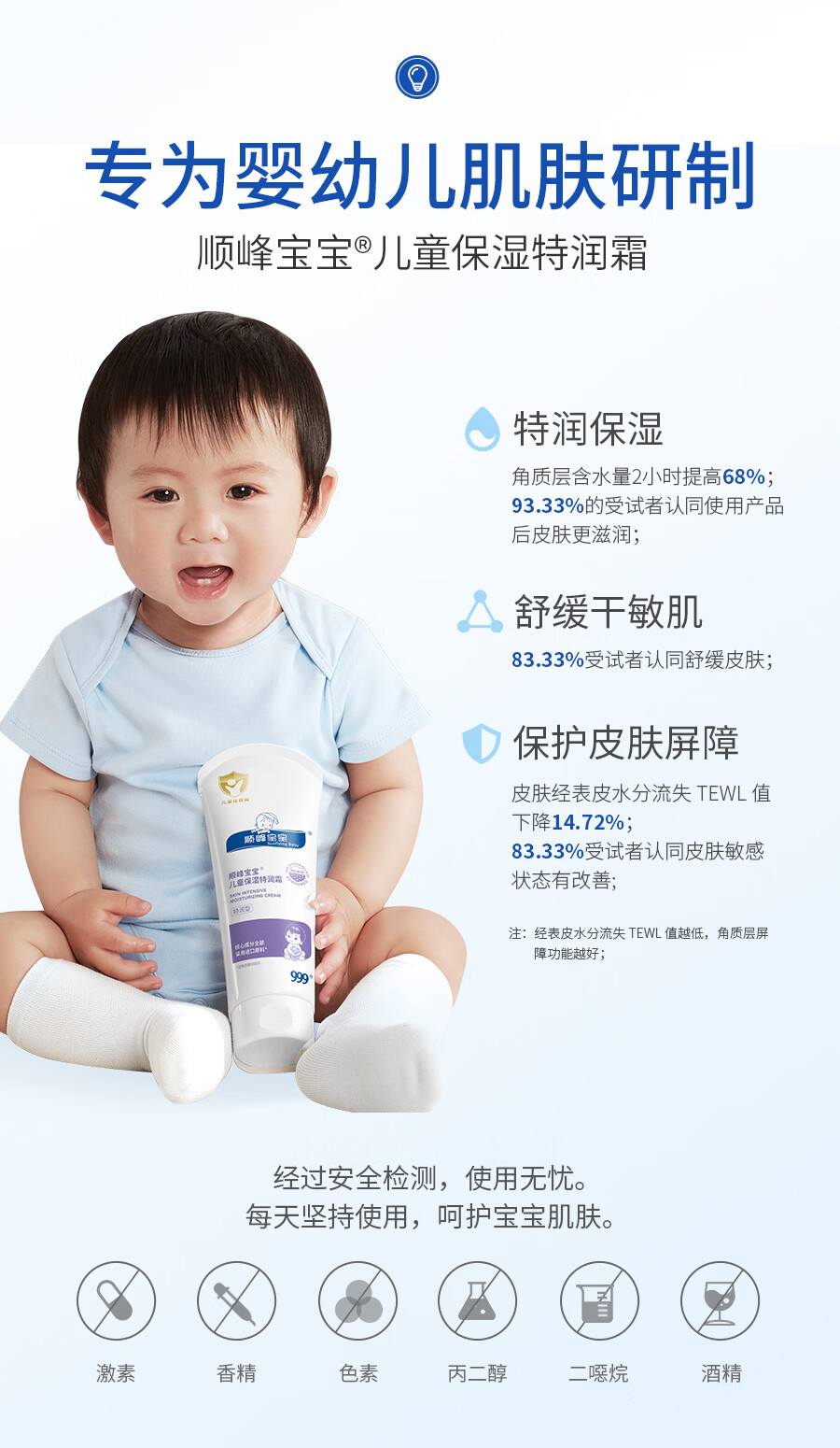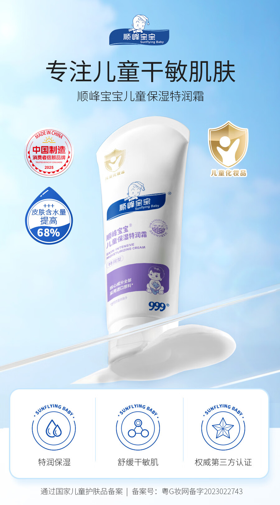 顺峰宝宝面霜100g保湿精华霜保湿特润霜儿童婴幼儿温和润肤护肤秋冬补水 特润霜100g(四季皆宜)