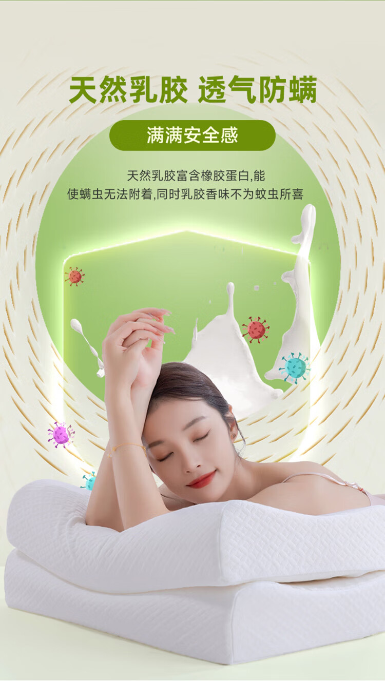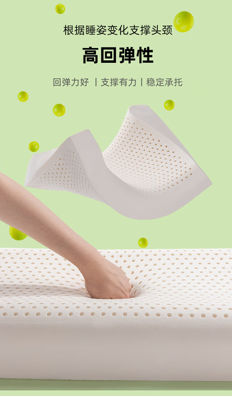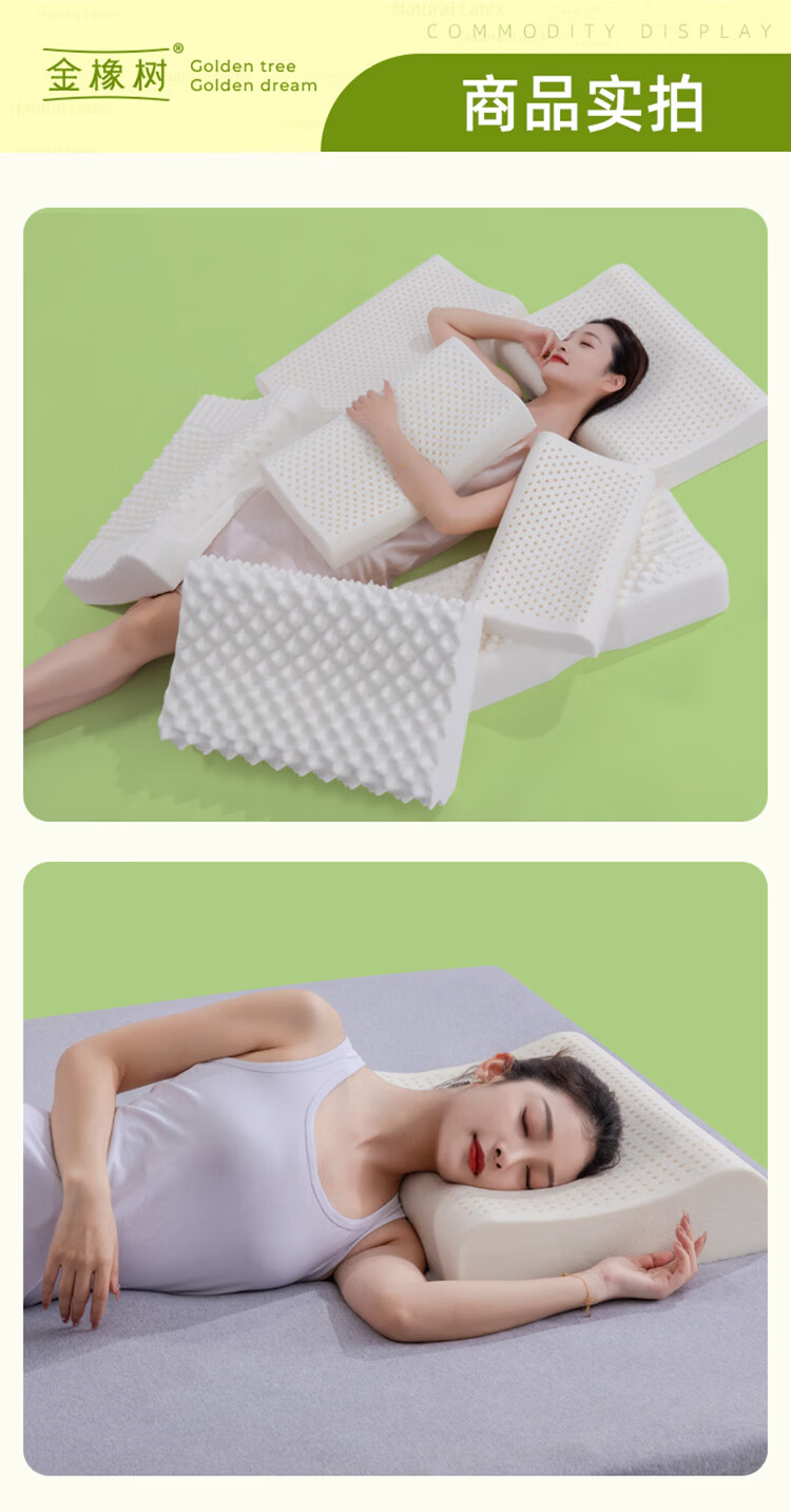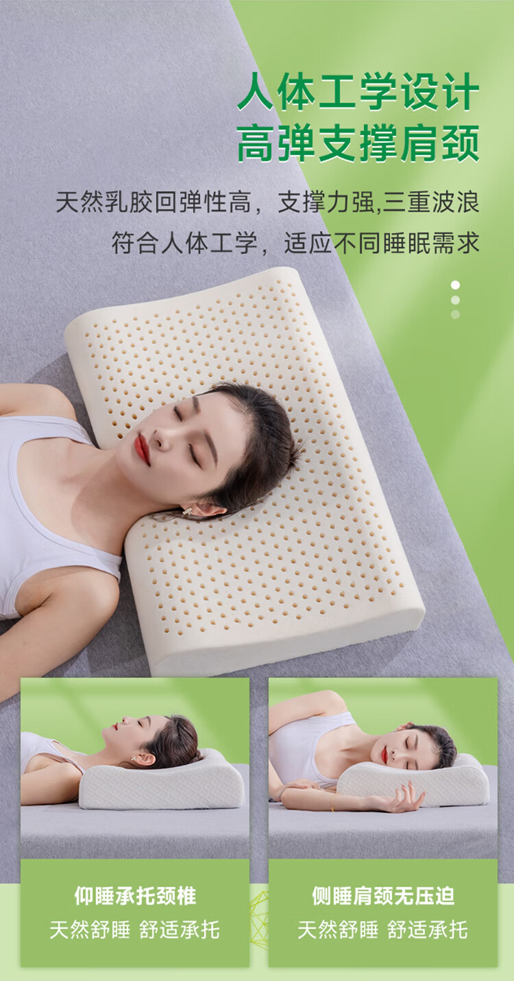 金橡树泰国进口天然乳胶枕头枕芯护颈枕午睡双人成人家用颈枕睡眠枕 单只 按摩枕60*40*10/12cm