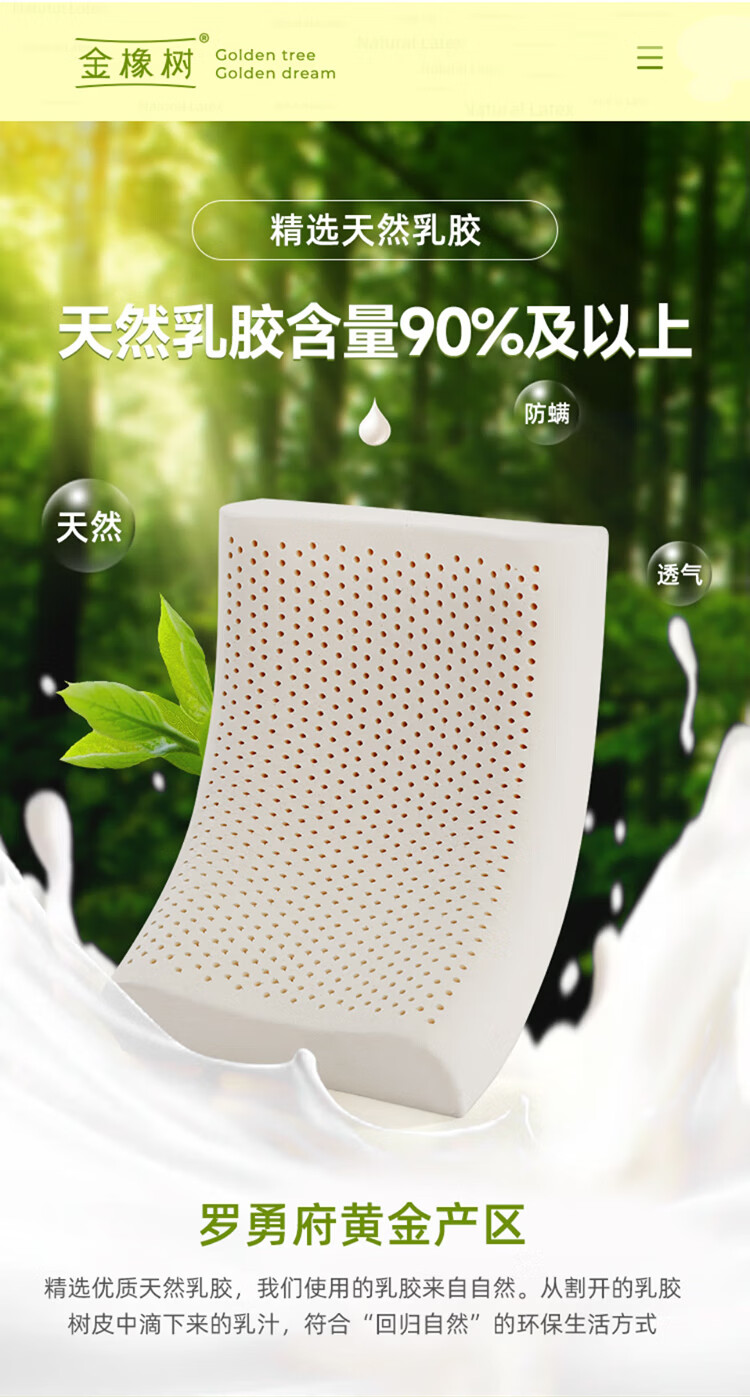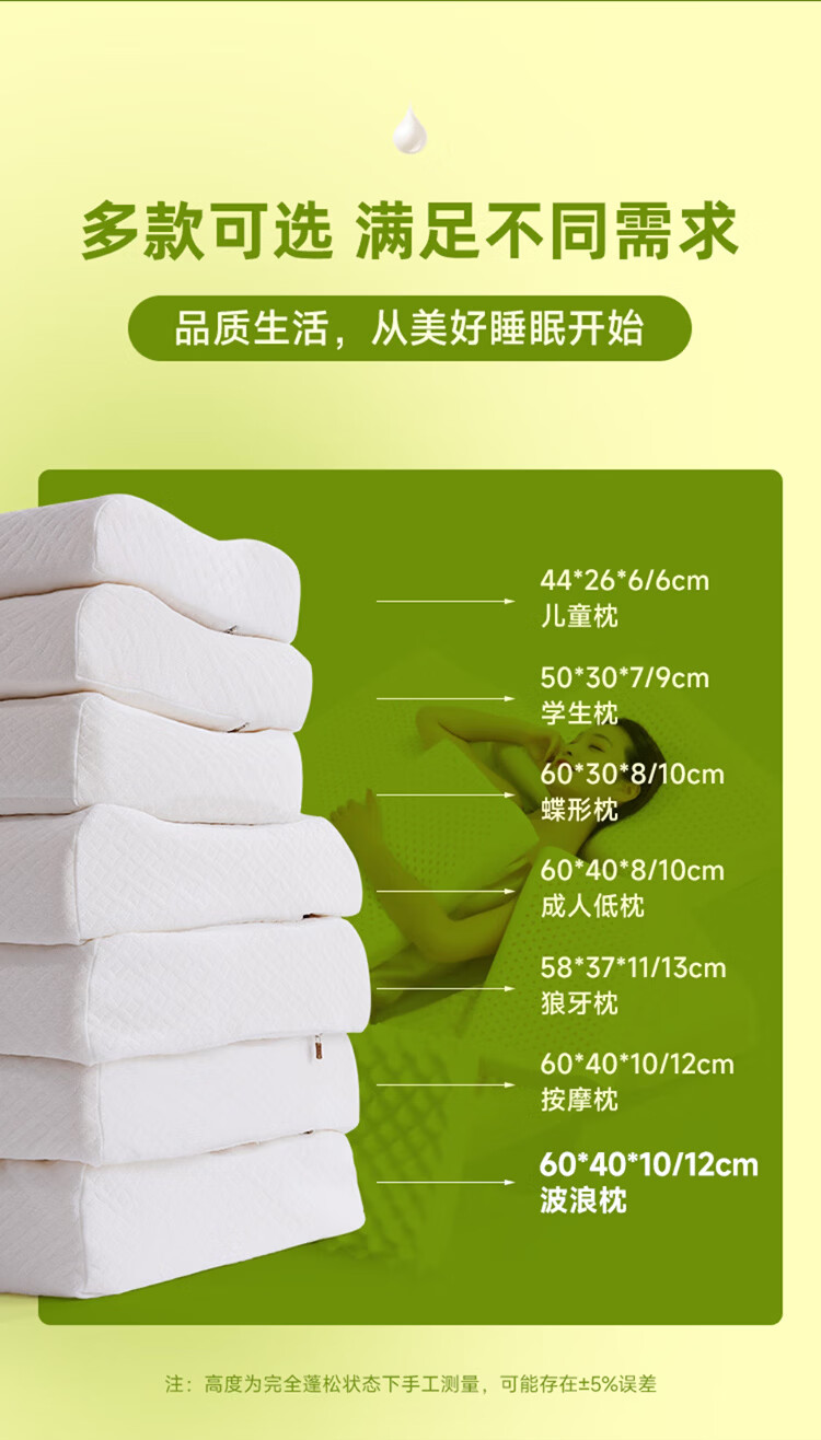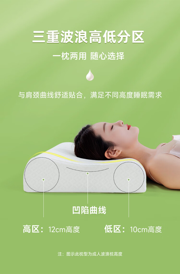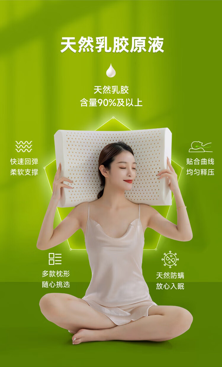 金橡树泰国进口天然乳胶枕头枕芯护颈枕午睡双人成人家用颈枕睡眠枕 单只 按摩枕60*40*10/12cm