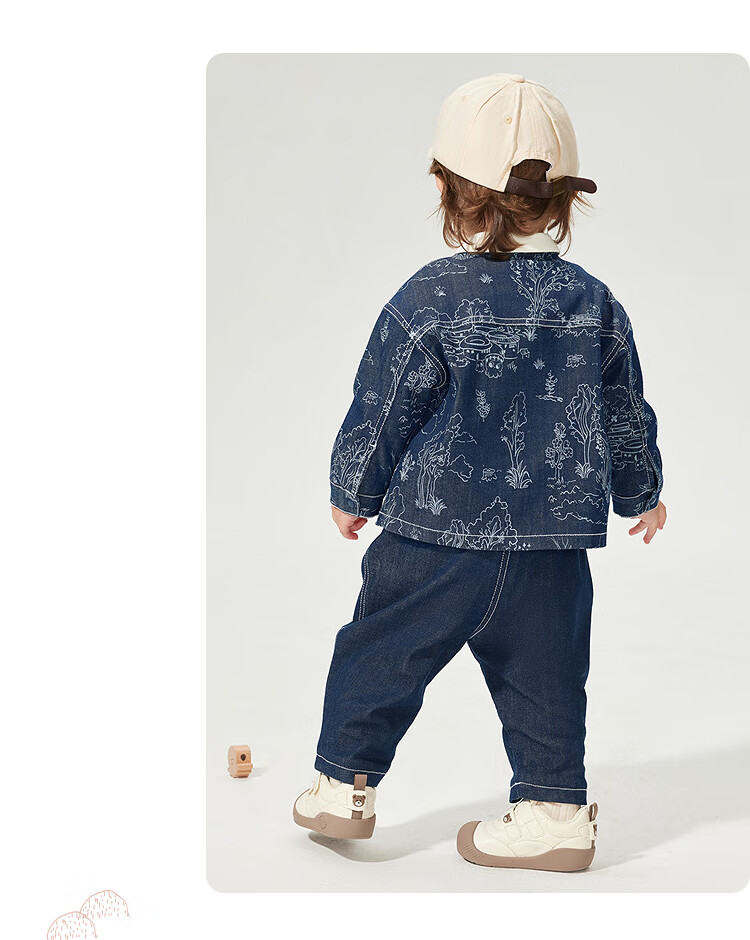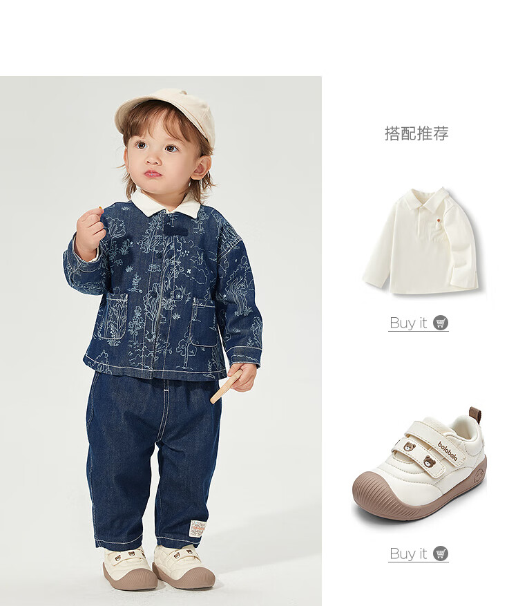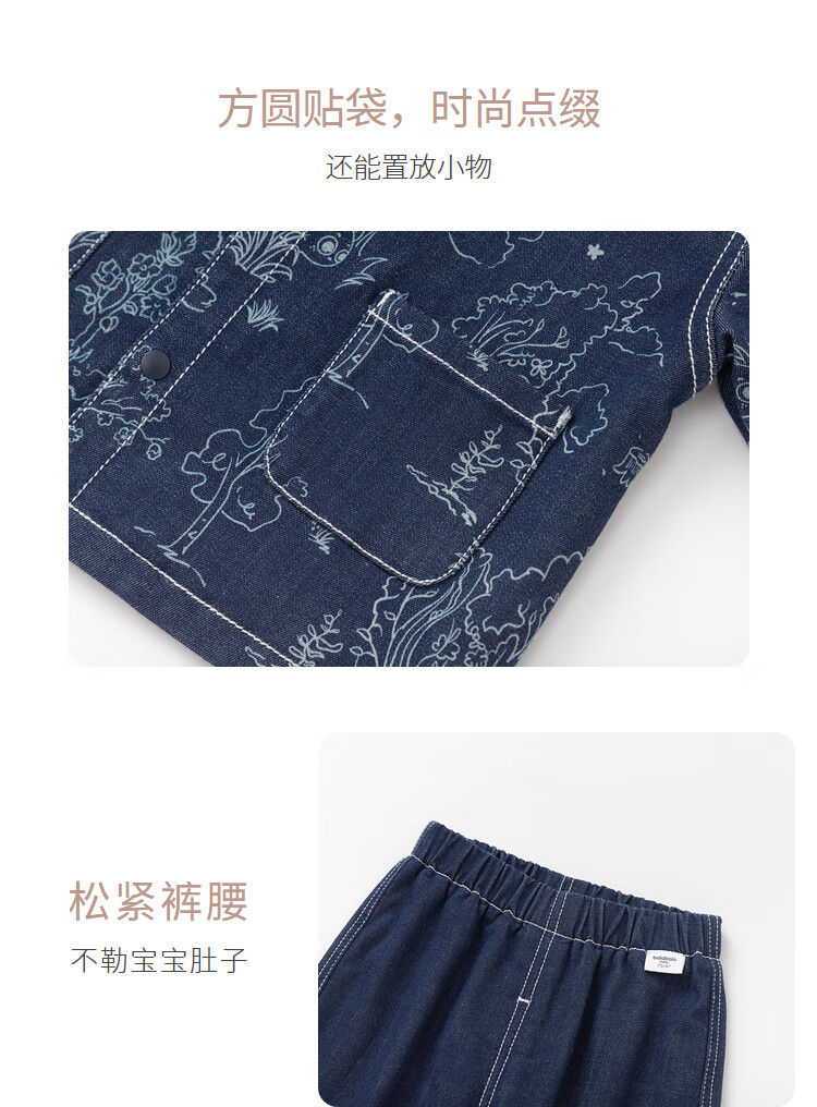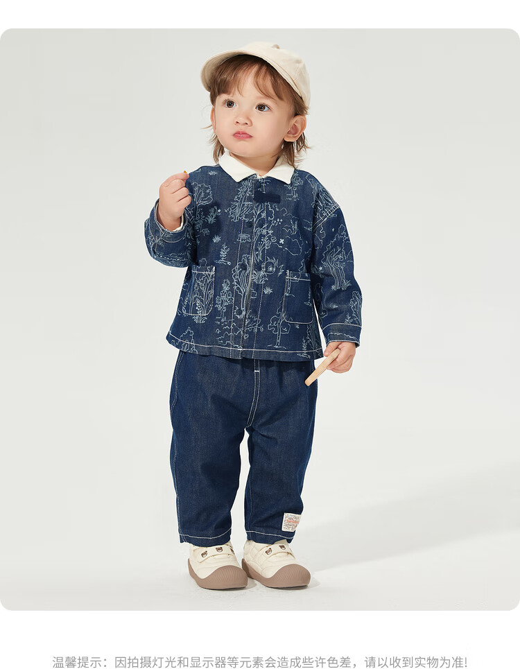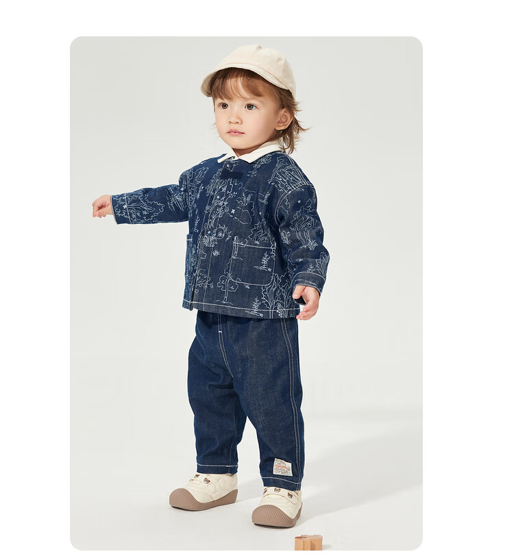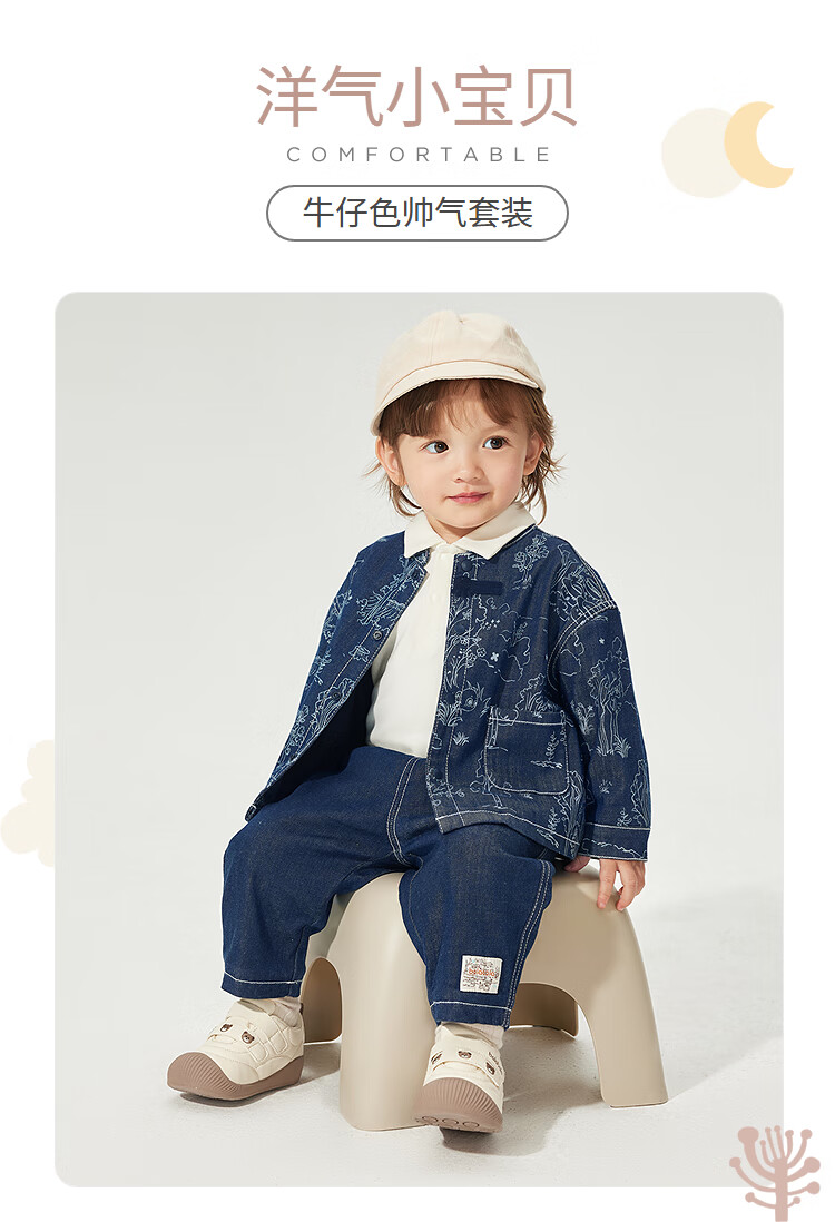 迷你巴拉巴拉男女童长袖套装潮流拼色上衣长裤两件套春季新款 海盐千层 100 【91-100cm 12-16kg】