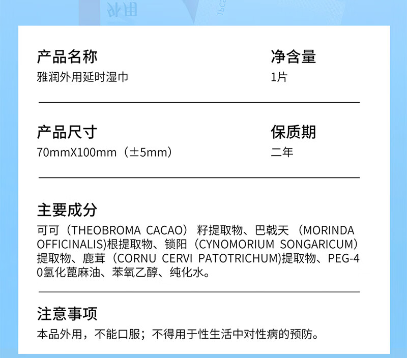雅润男用延时喷剂夫妻房事持久湿巾不麻木外用印度神油延迟喷雾可口爱 雅润外用延时湿巾10片装