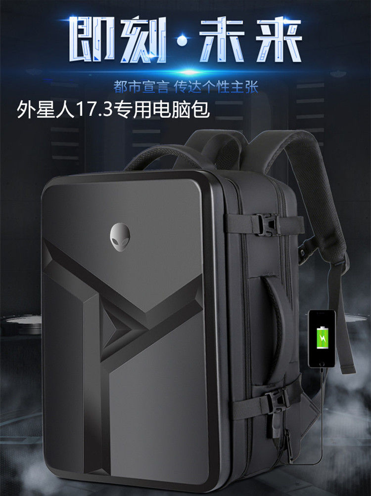 嘉丽诗适用外星人电脑包ALIENWARE外星人笔记本包硬壳双肩包17.3英寸巡 深浅蓝色+蓝外星人 16英寸