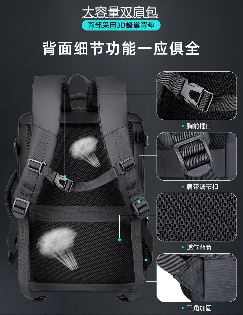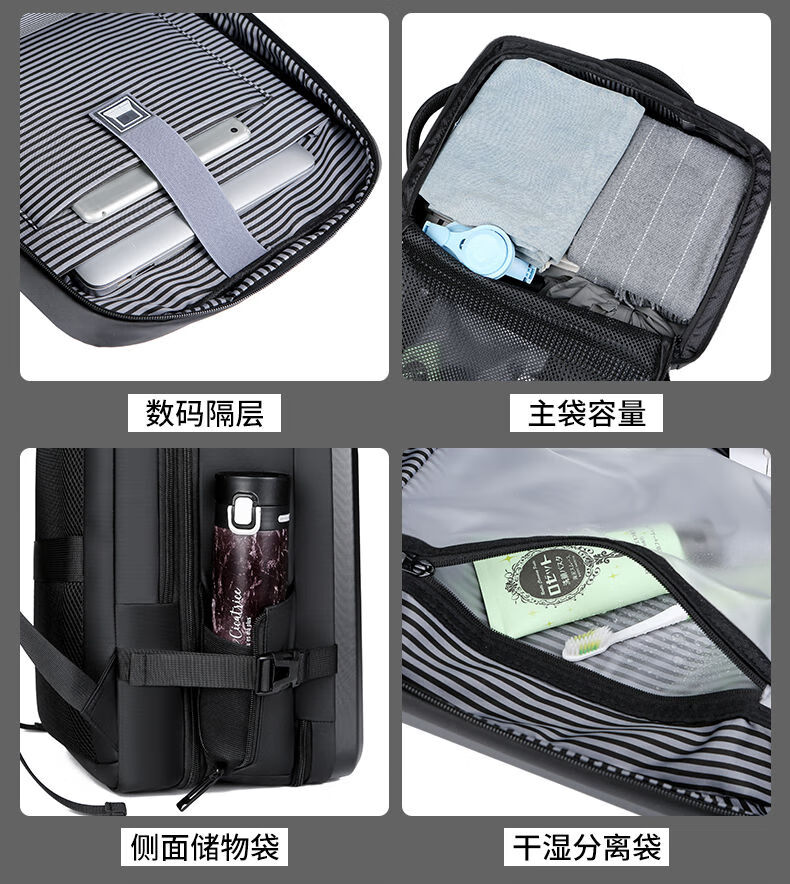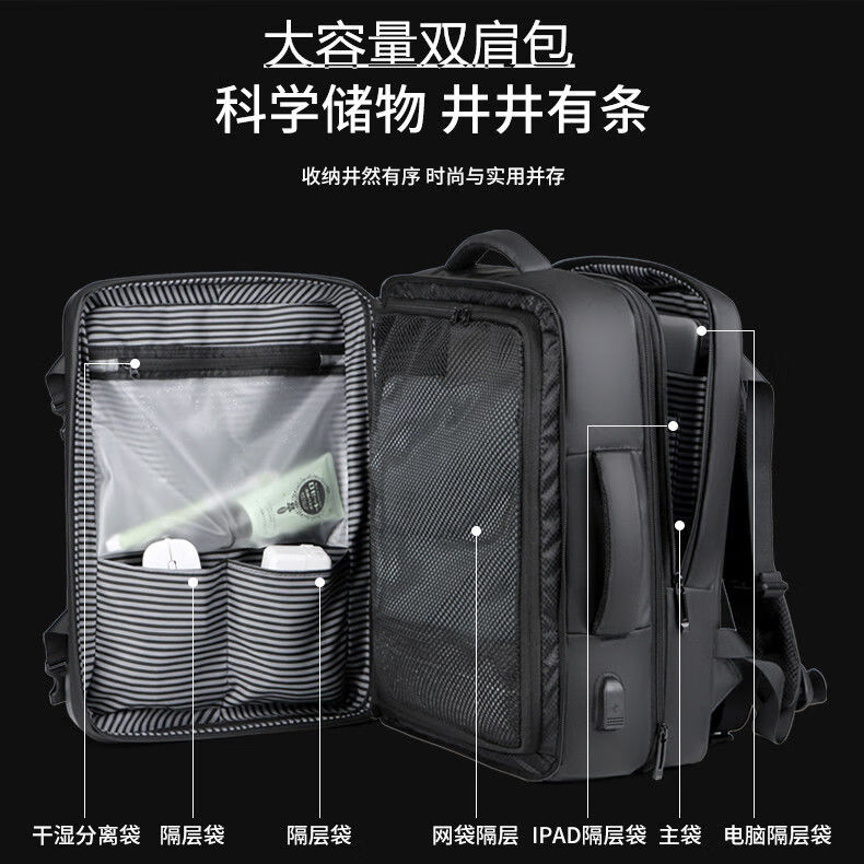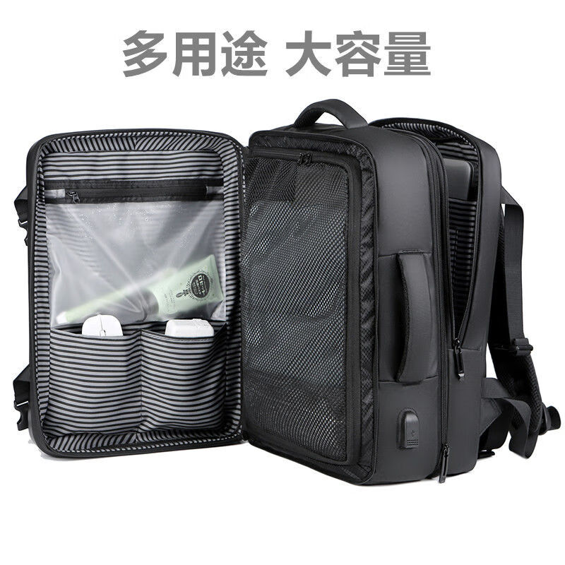 罗梅达尔(Rommedal)双肩包男时尚简约大容量旅行包男士背包头层牛皮学生书包双肩包 黑色【京仓次日达】高43*宽30*厚15CM