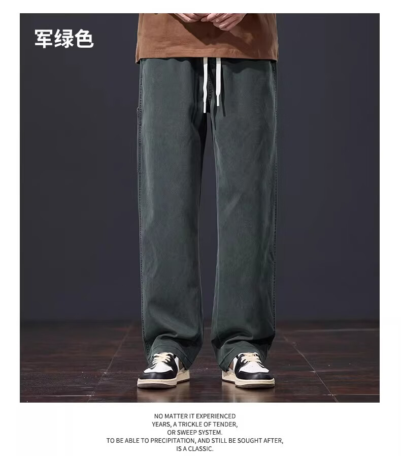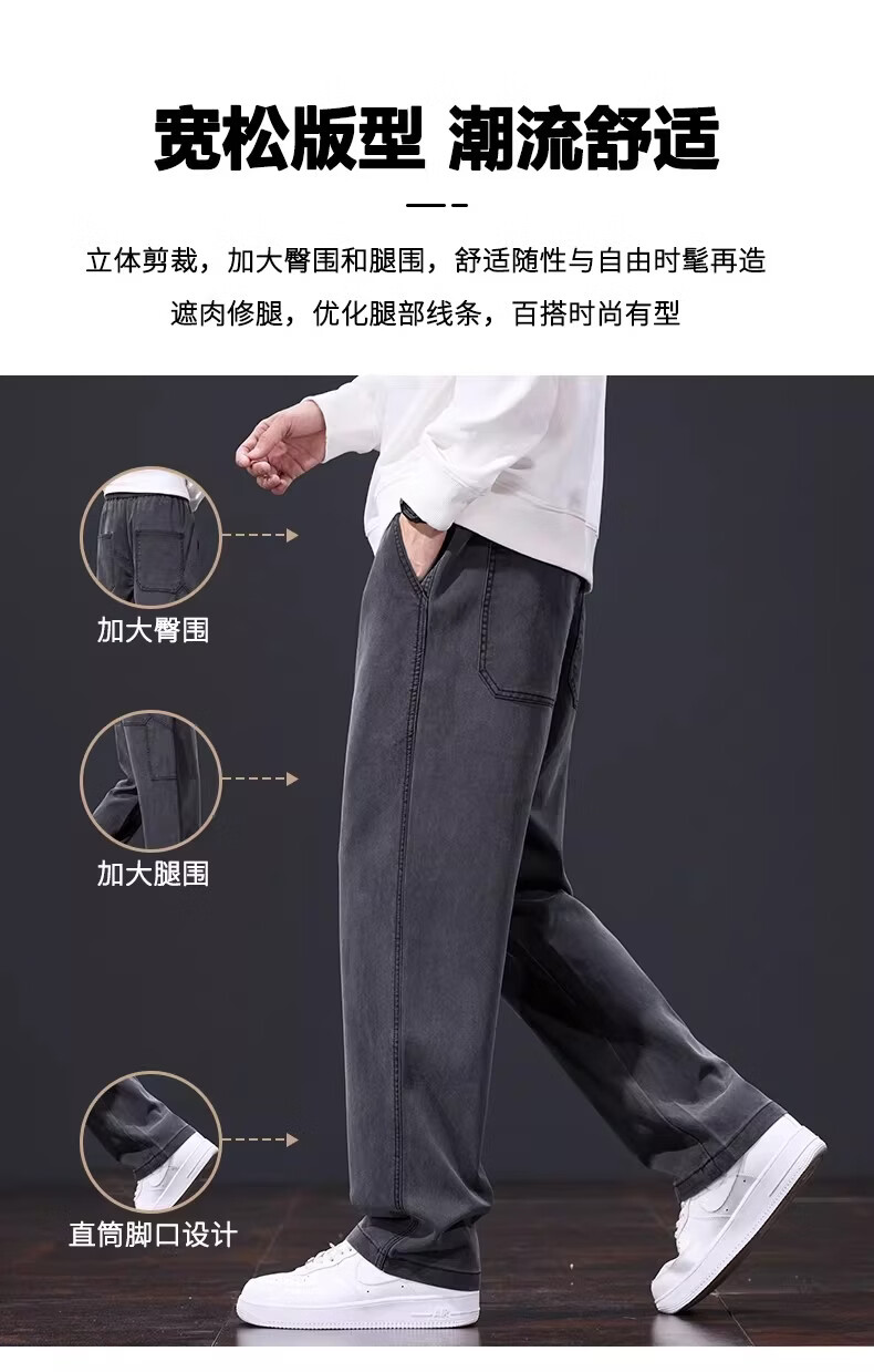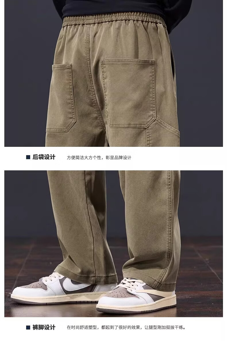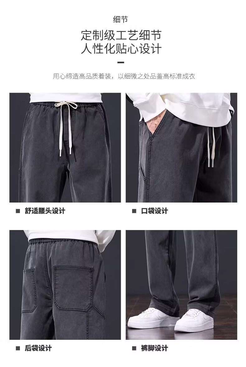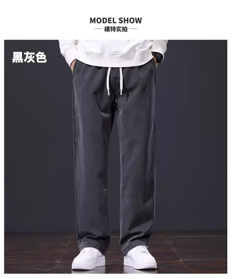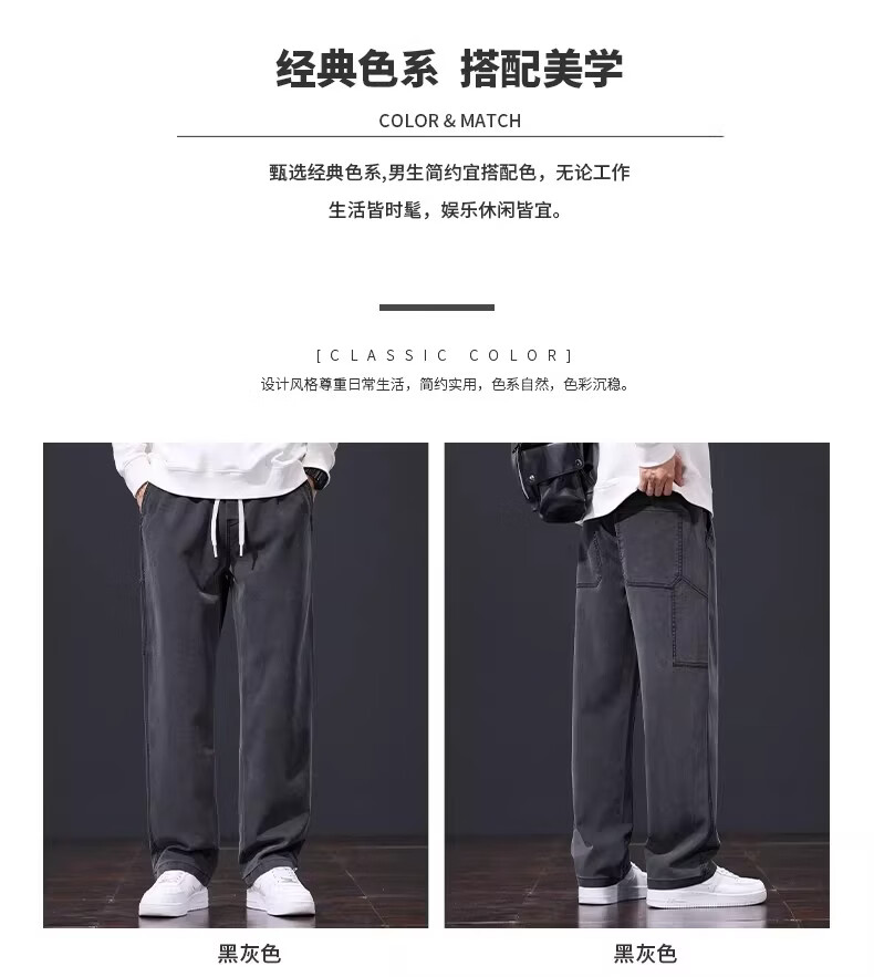 真维斯美式复古休闲裤男士2026春季新款潮牌宽松直筒潮流阔腿长裤子男款 黑灰色 S