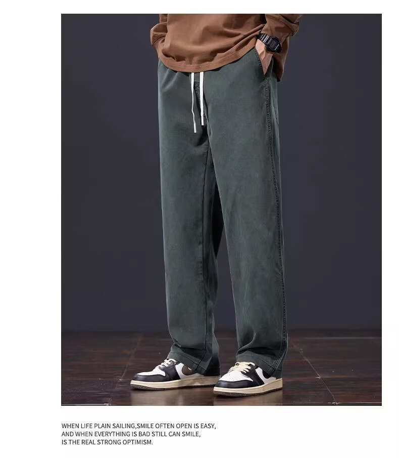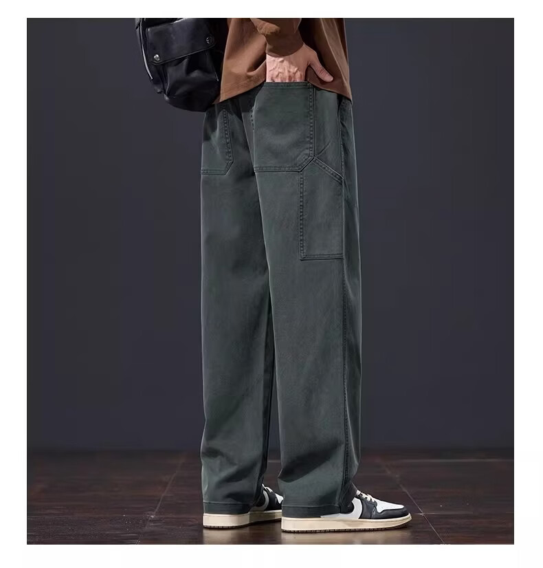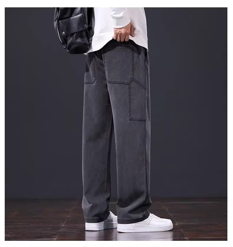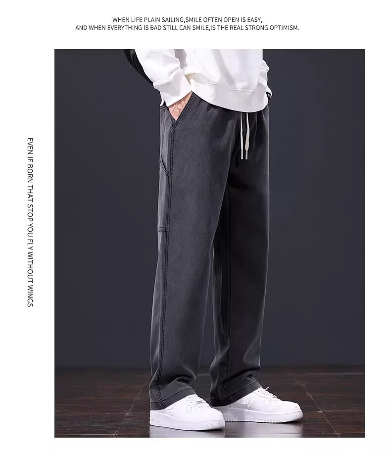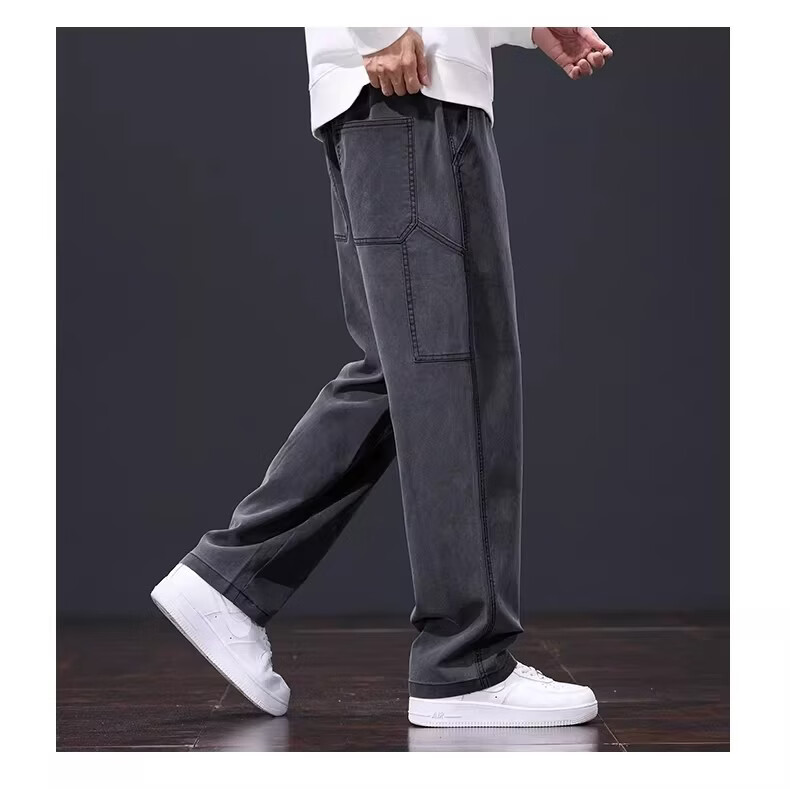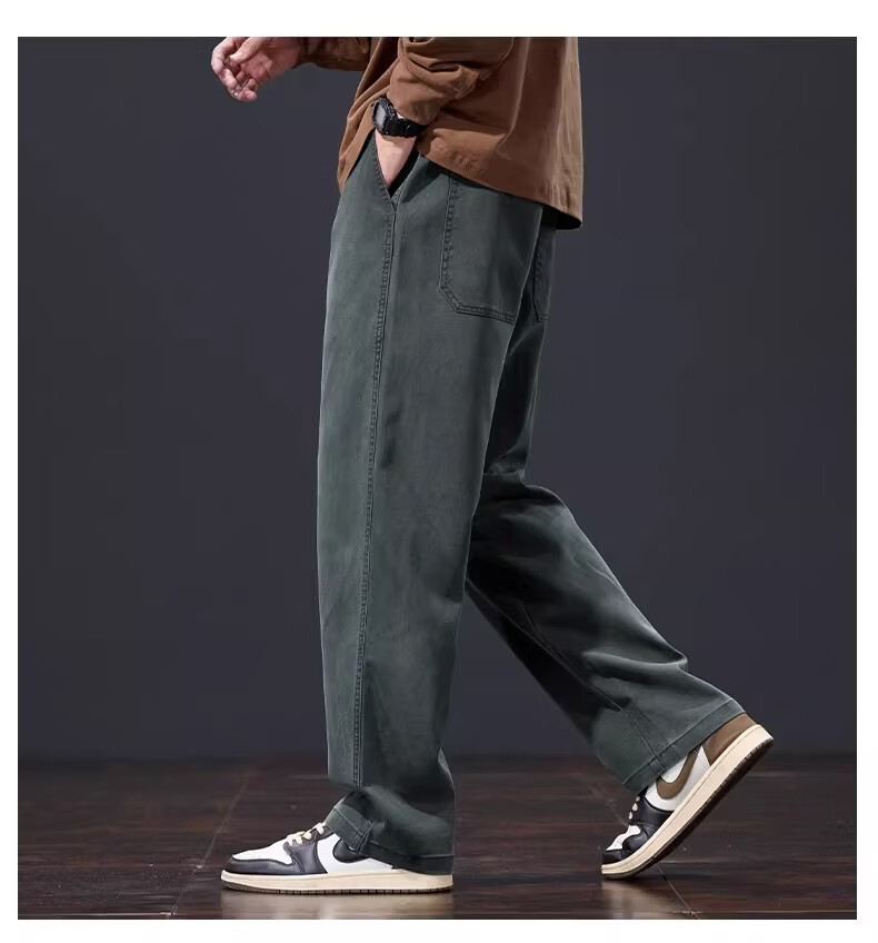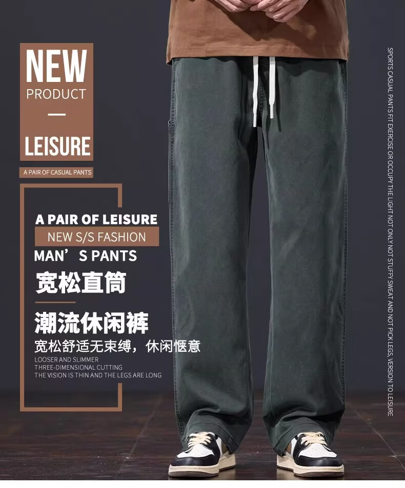 真维斯美式复古休闲裤男士2026春季新款潮牌宽松直筒潮流阔腿长裤子男款 黑灰色 S
