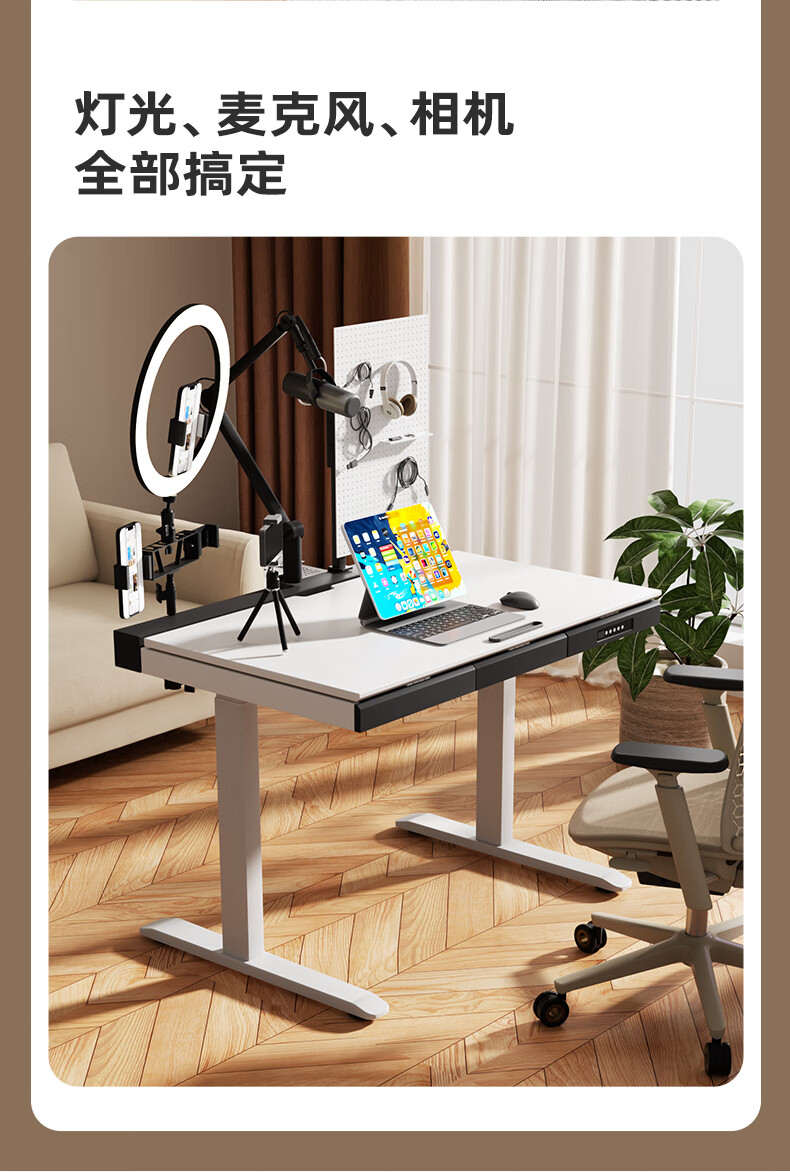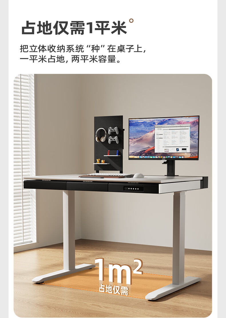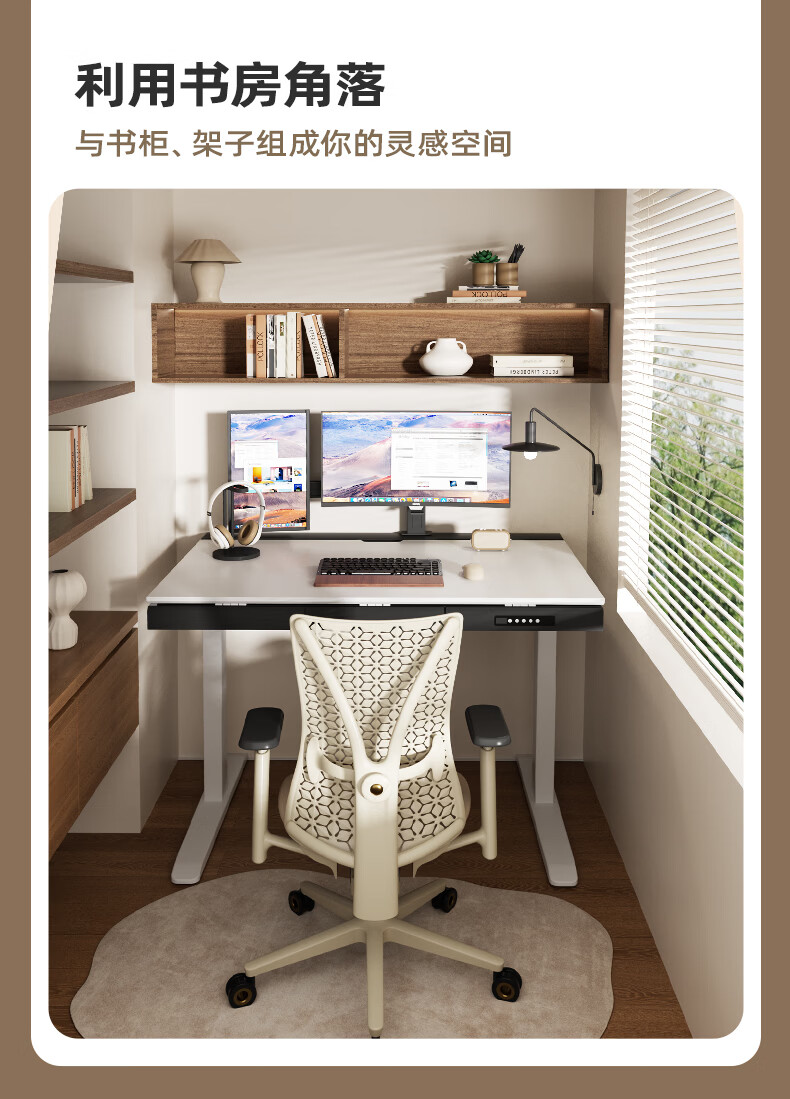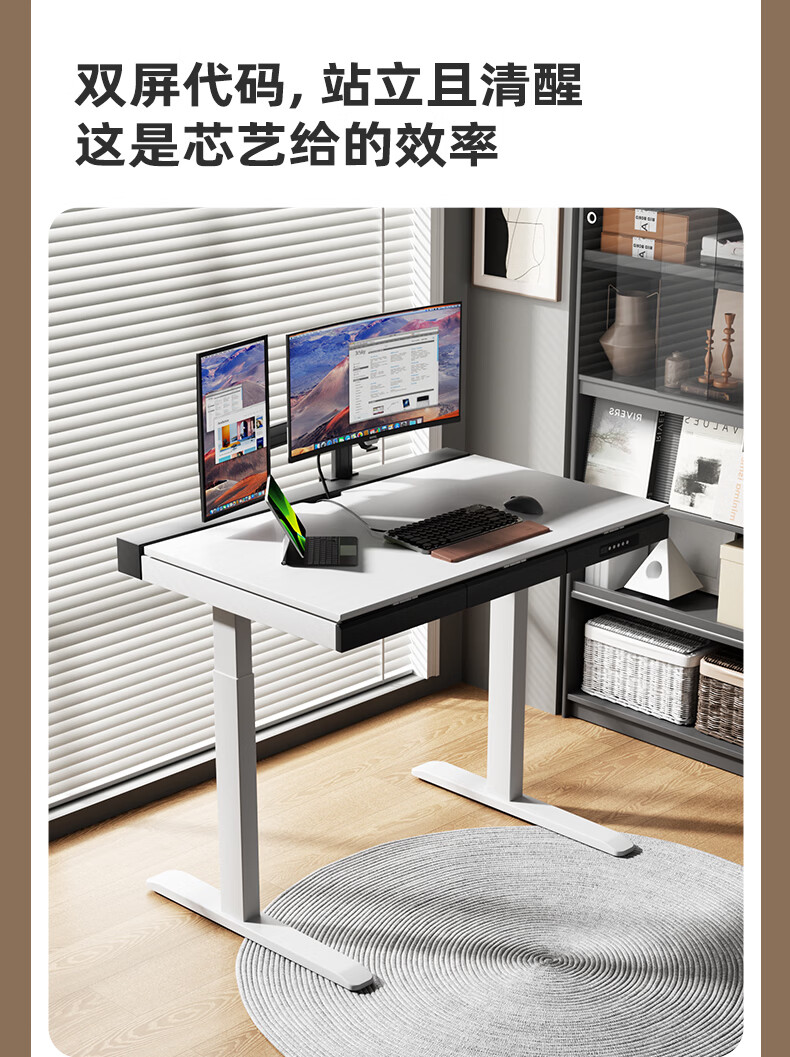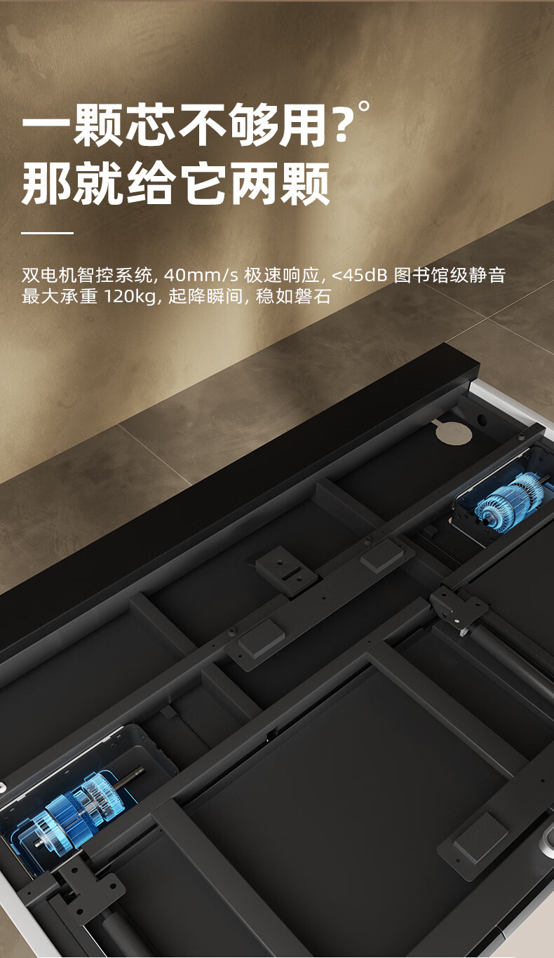智芯无凡智能电动升降桌双电机家用大尺寸书桌电脑桌学习办公电竞桌子 无凡 inline驱动系统【胡桃色】抽屉+双面内嵌排插 140cm*80cm(银黑双色桌腿)