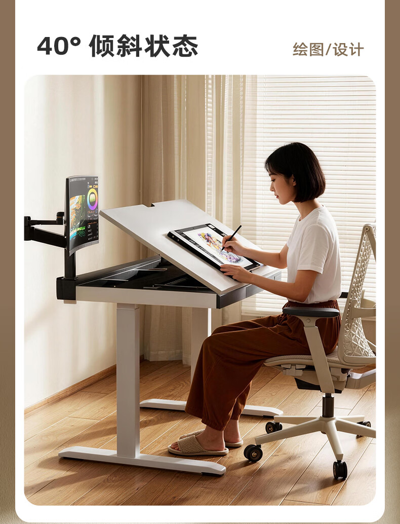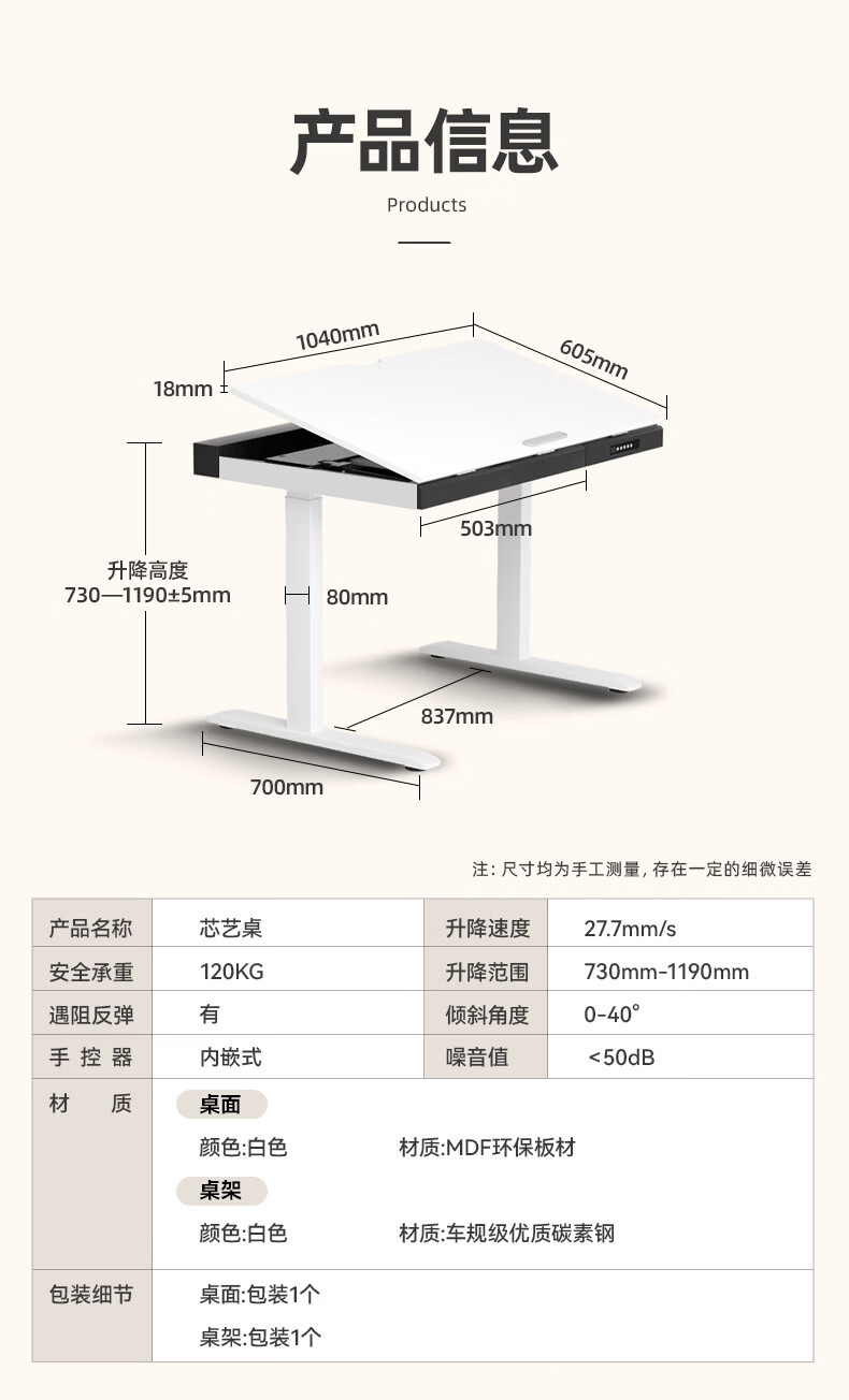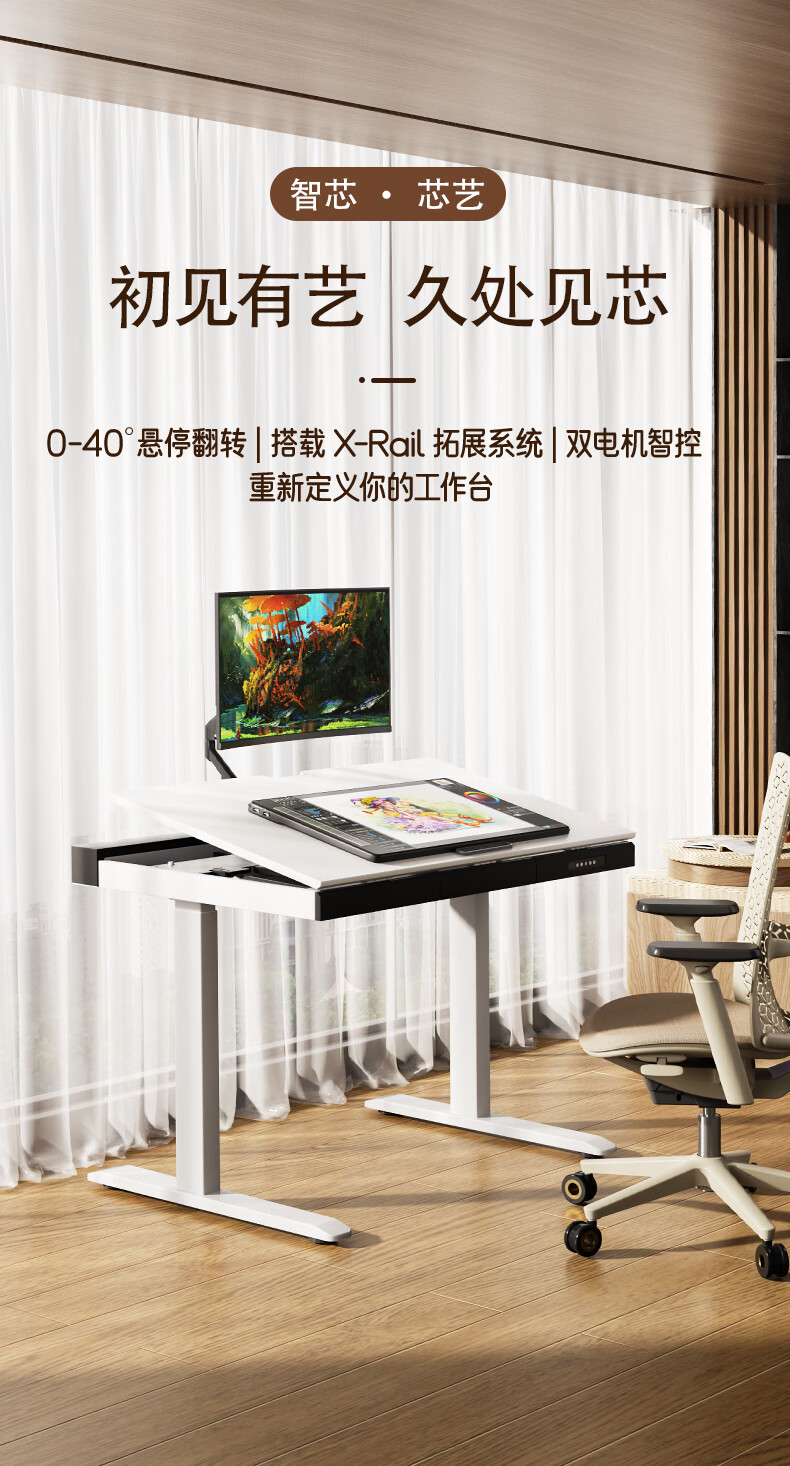 智芯2026新款儿童电动升降桌学习桌可翻转单人工作台升降学习书桌 芯艺桌(磁吸桌面+0~40°桌面翻转) 1040x700x730m
