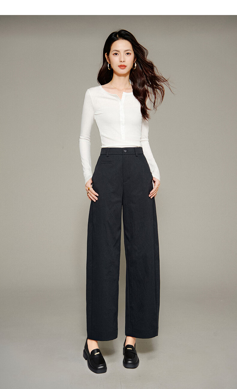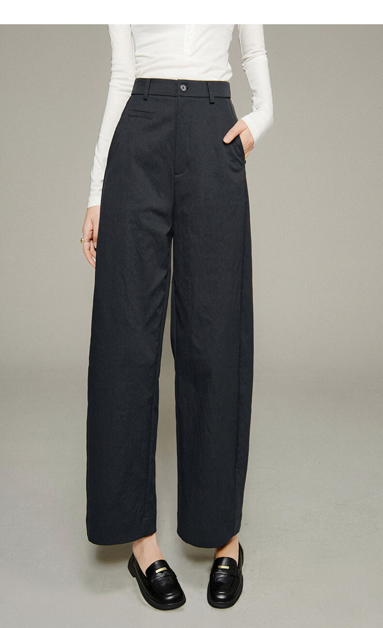 晚白【新品】2026春款时尚裤子高腰显瘦半松紧舒适百搭休闲裤女 深灰色 27