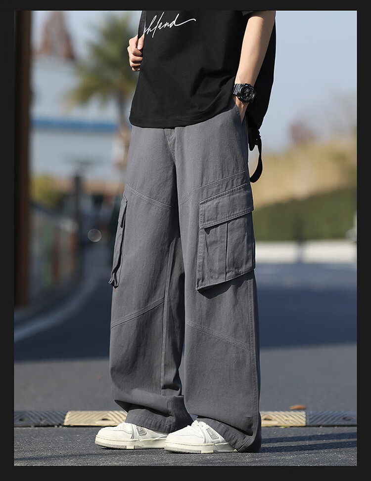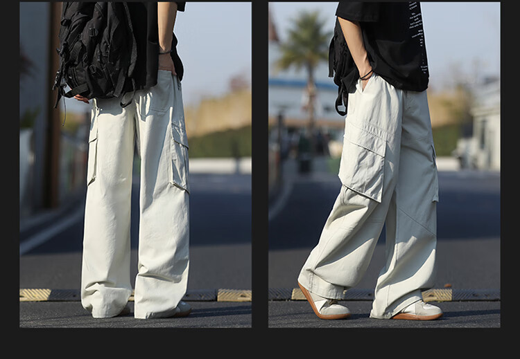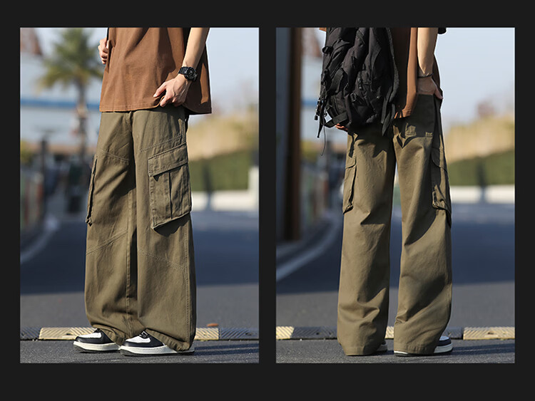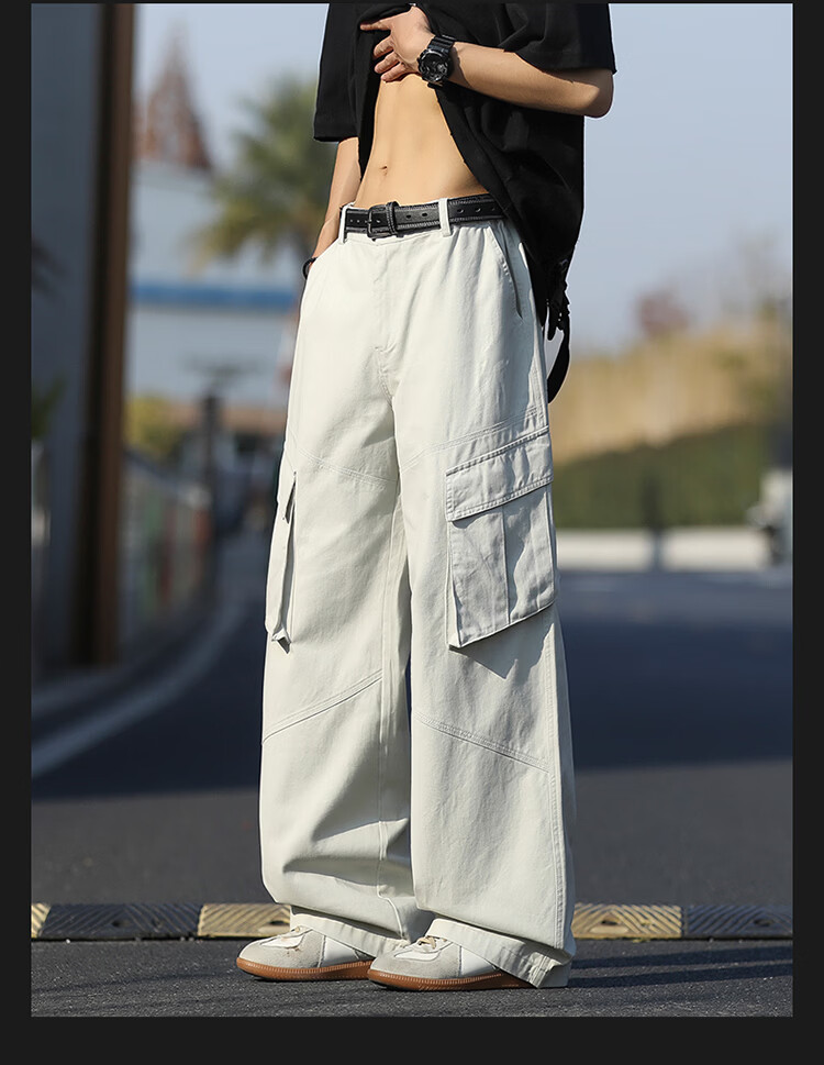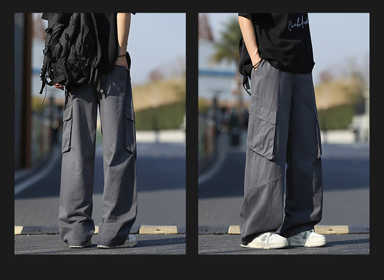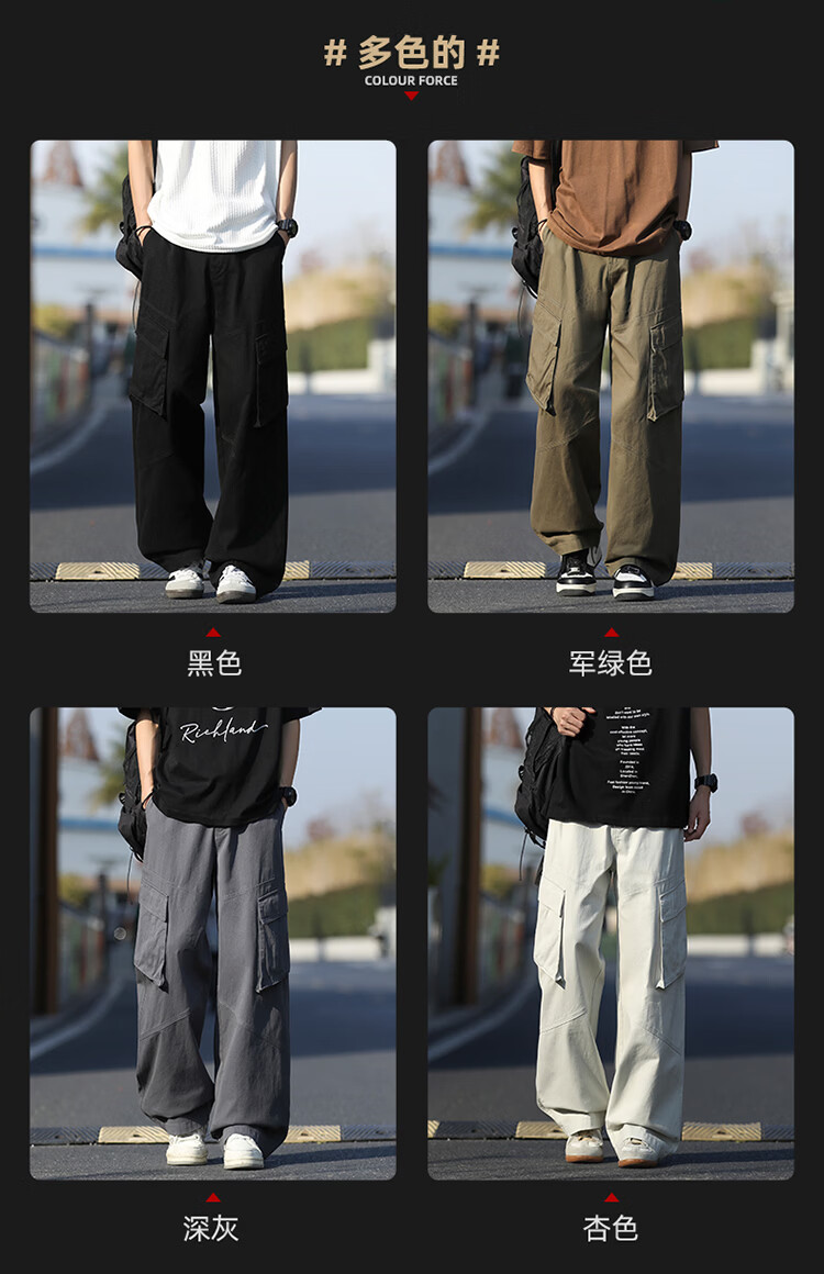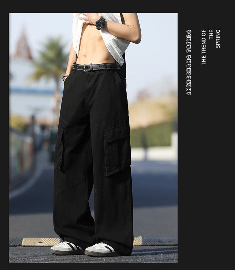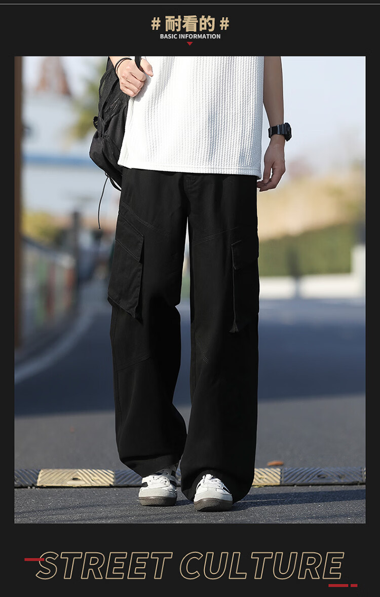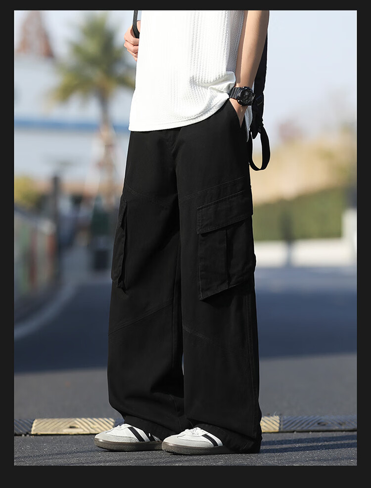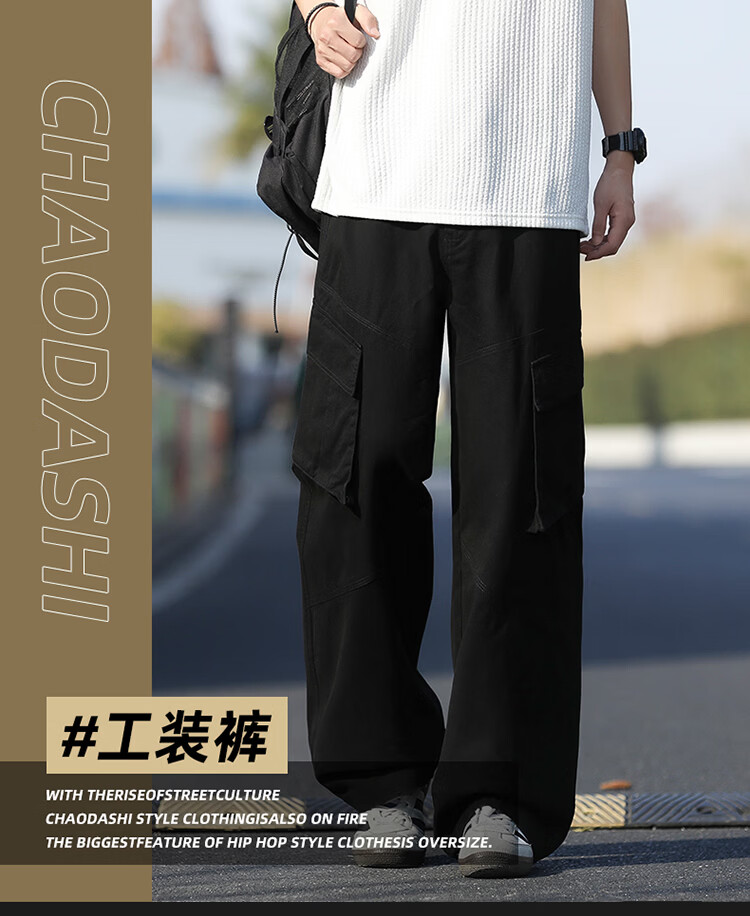 真维斯(Jeanswest)美式复古伞兵工装裤男女款秋季潮牌宽松阔腿裤大口袋痞帅休闲长裤 黑色 纯色 M