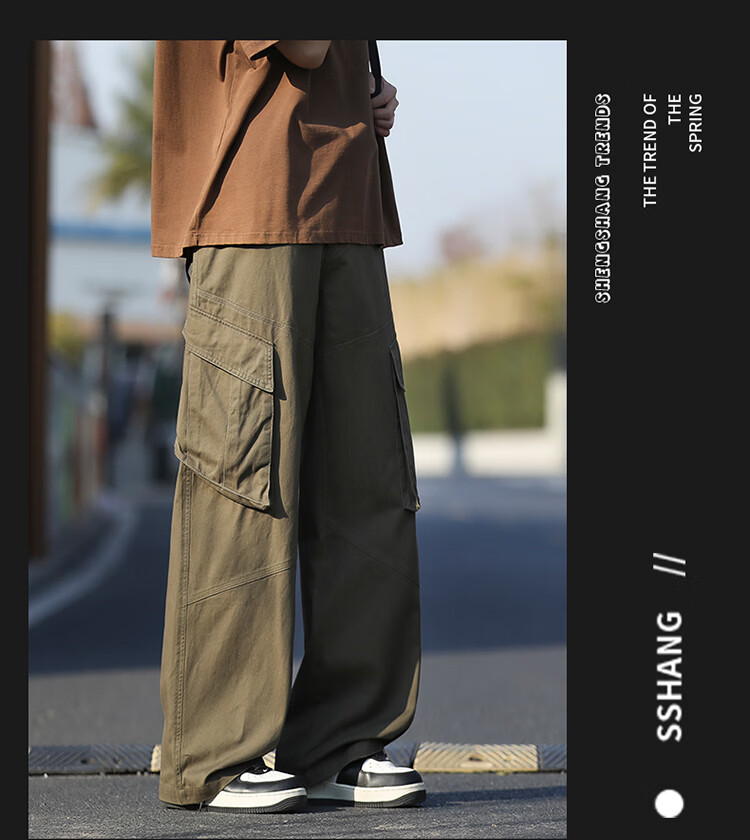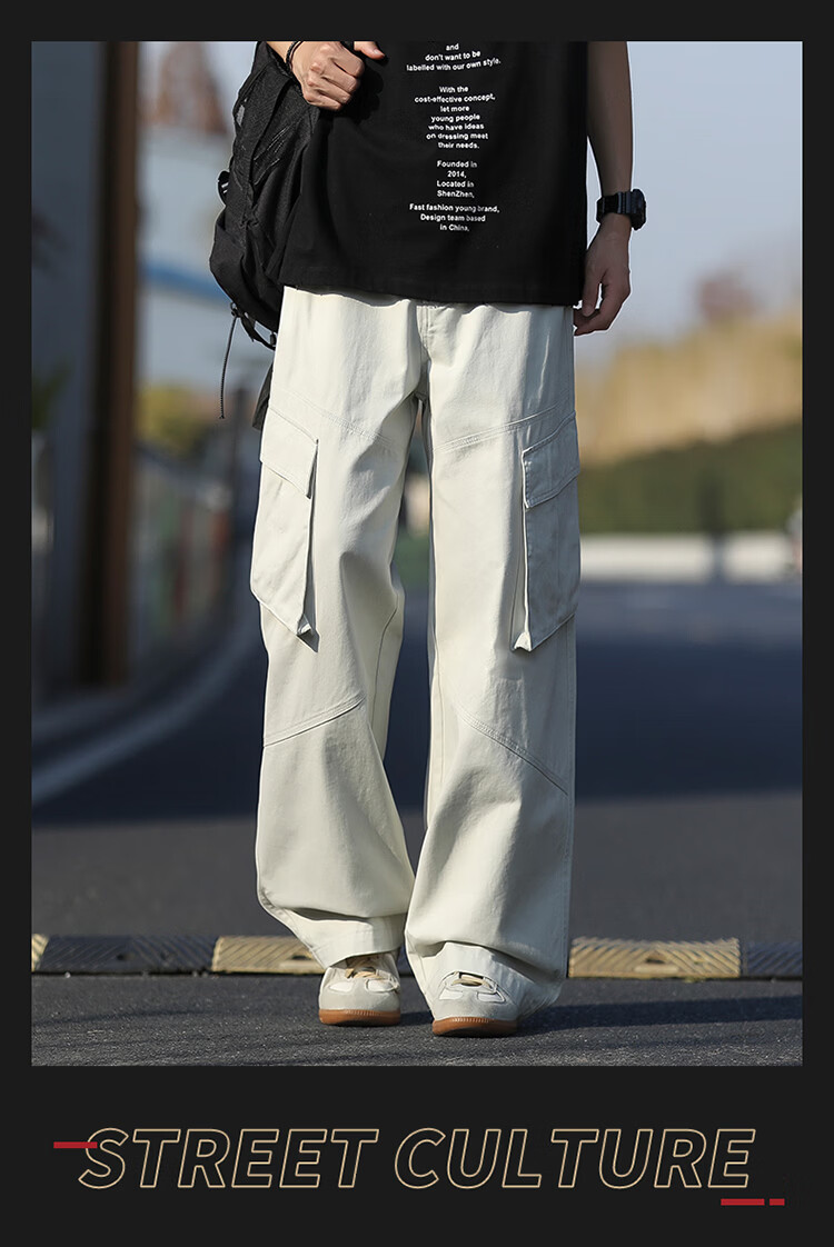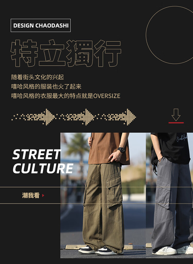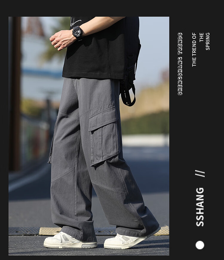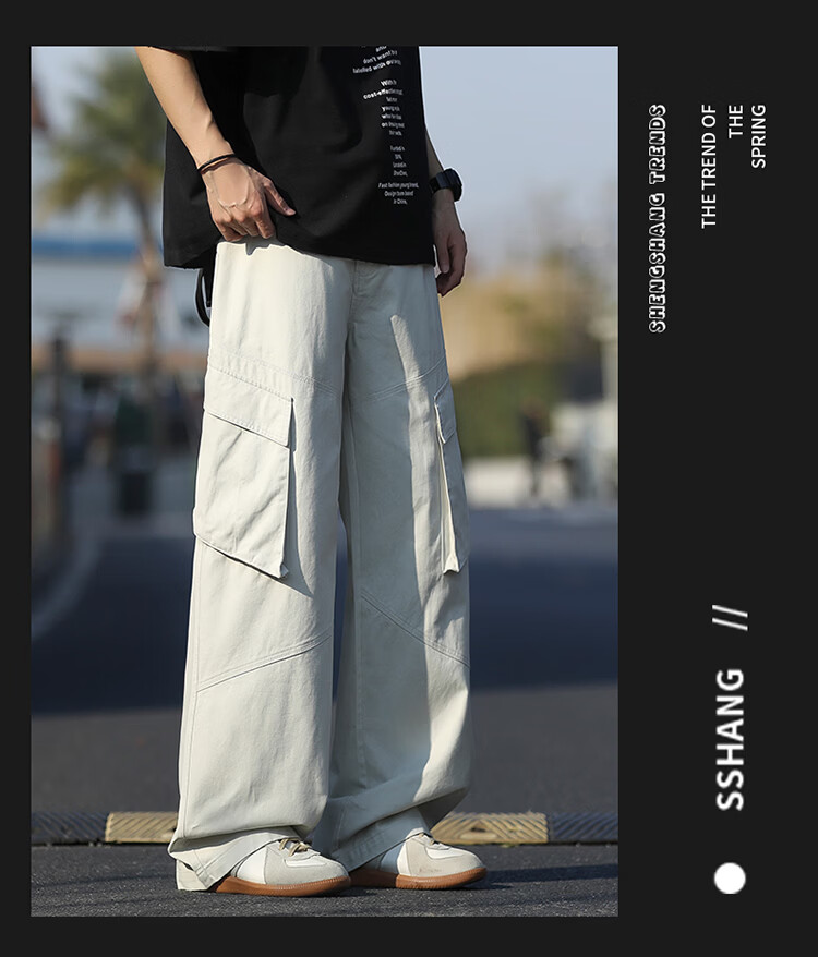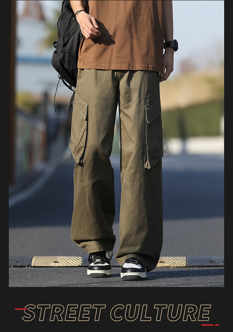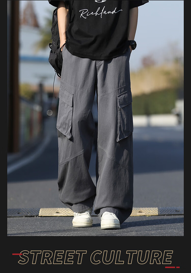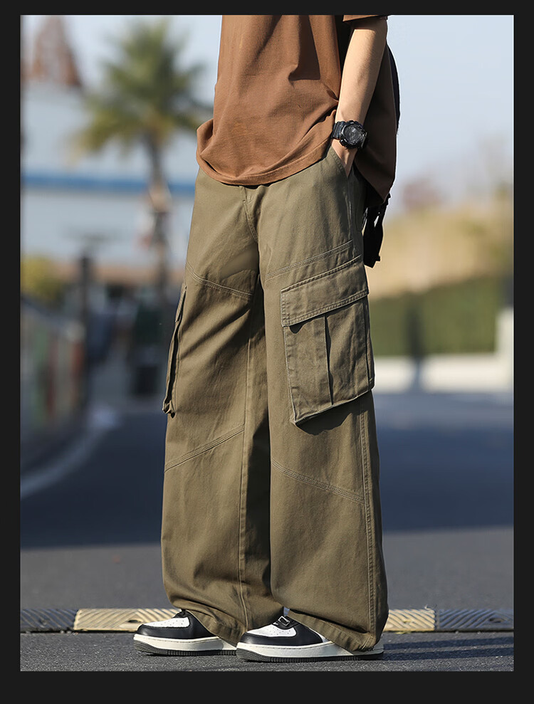 真维斯(Jeanswest)美式复古伞兵工装裤男女款秋季潮牌宽松阔腿裤大口袋痞帅休闲长裤 黑色 纯色 M