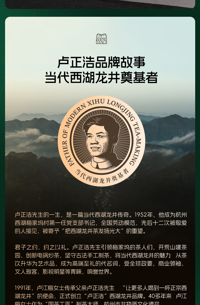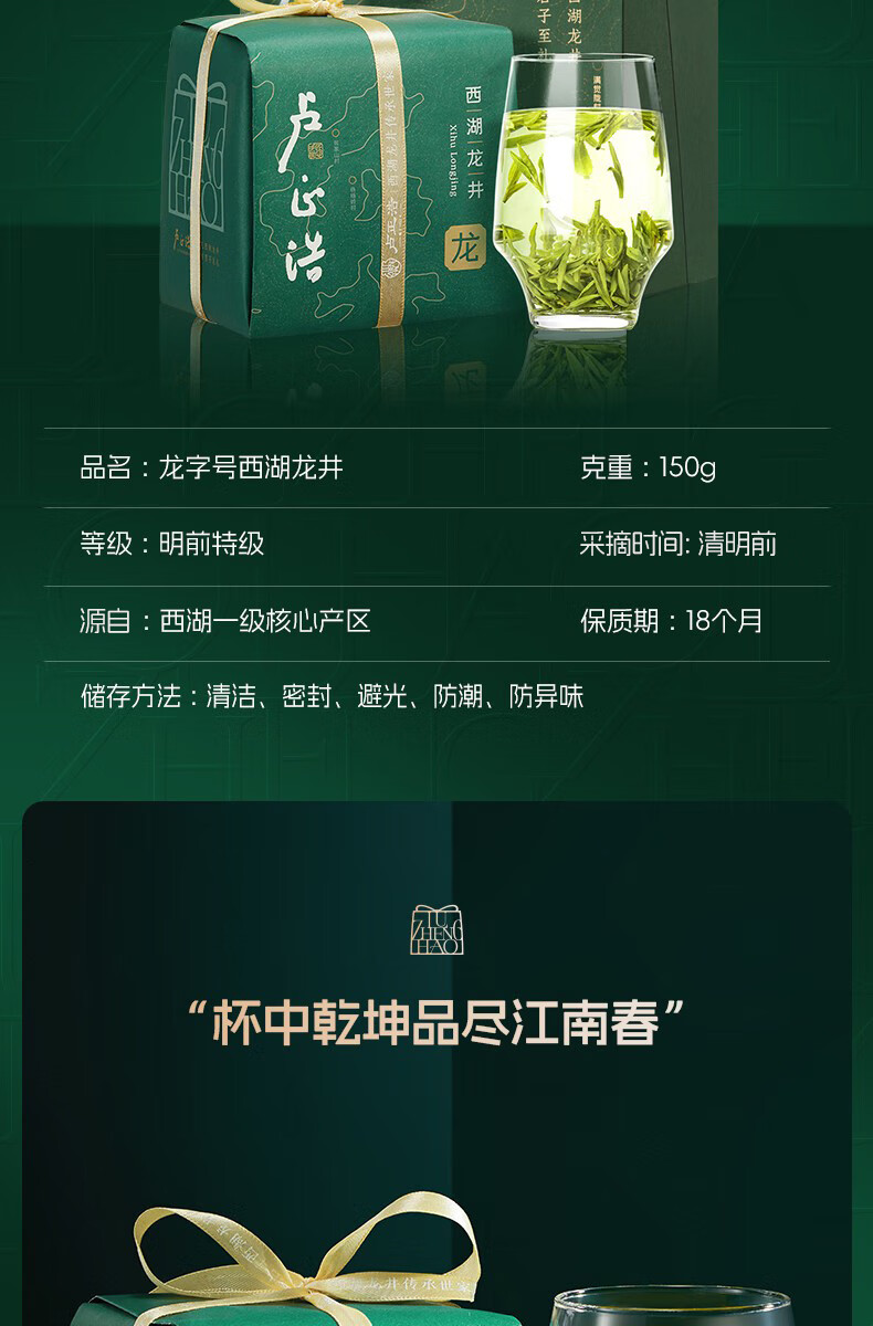 卢正浩绿茶龙字真西湖龙井茶特级150g2026新茶预售明前茶叶纸包源头直发