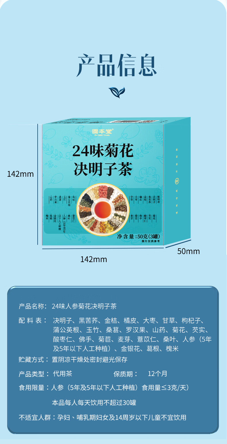 固本堂24味菊花决明子茶50g/3罐装 清火护肝