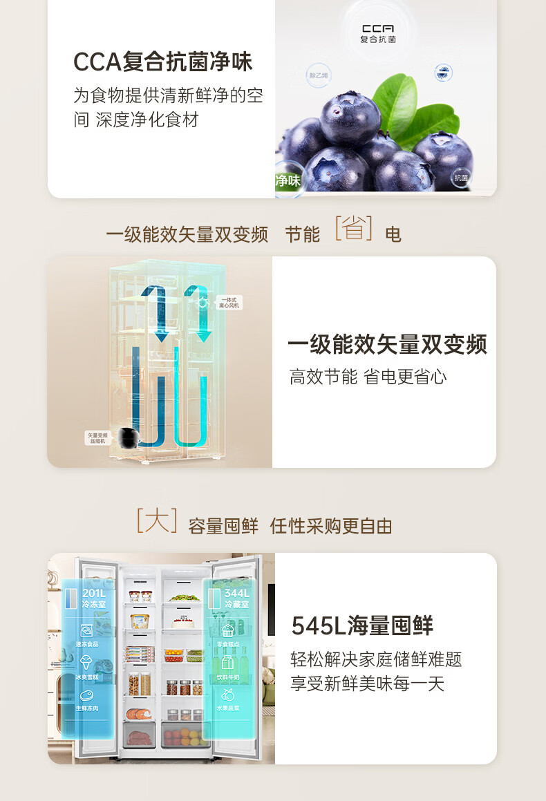 容声545L对开门冰箱超薄大容量家用一级能效风冷无霜双变频节能保鲜以旧换新BCD-545WD6HP国家补贴