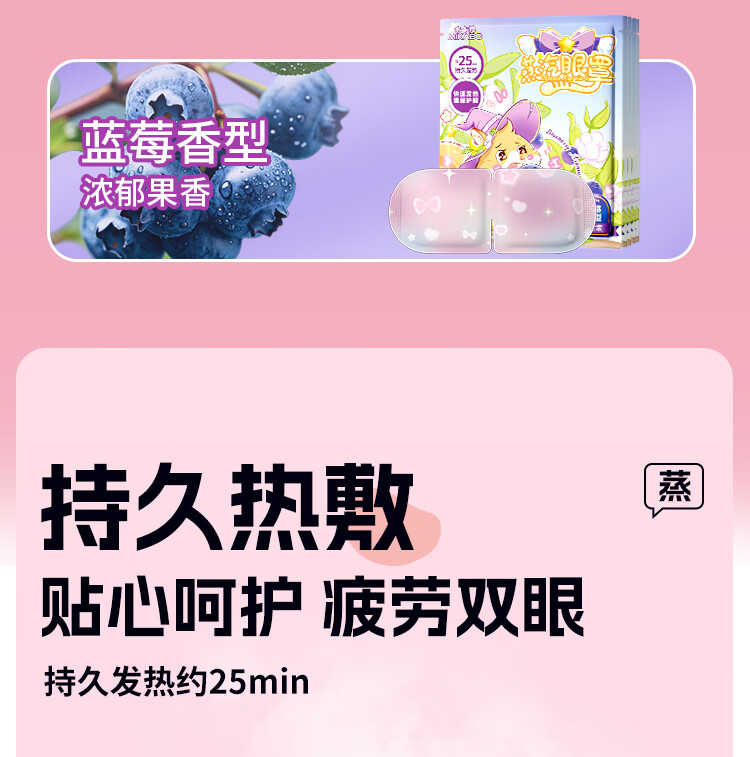 蒸汽眼罩热敷护眼贴舒缓眼部疲劳加热遮光睡眠眼罩自发热男女通用 10片【炫彩蓝莓】