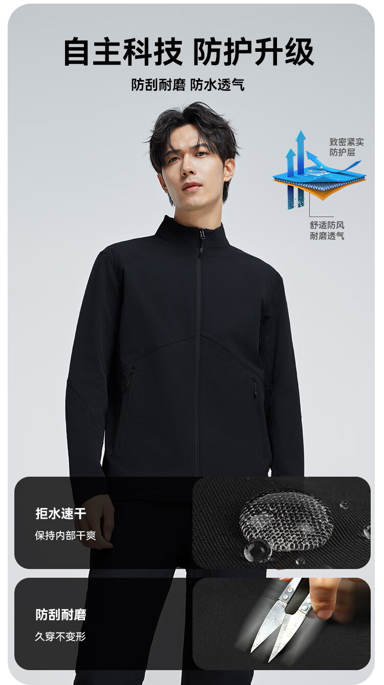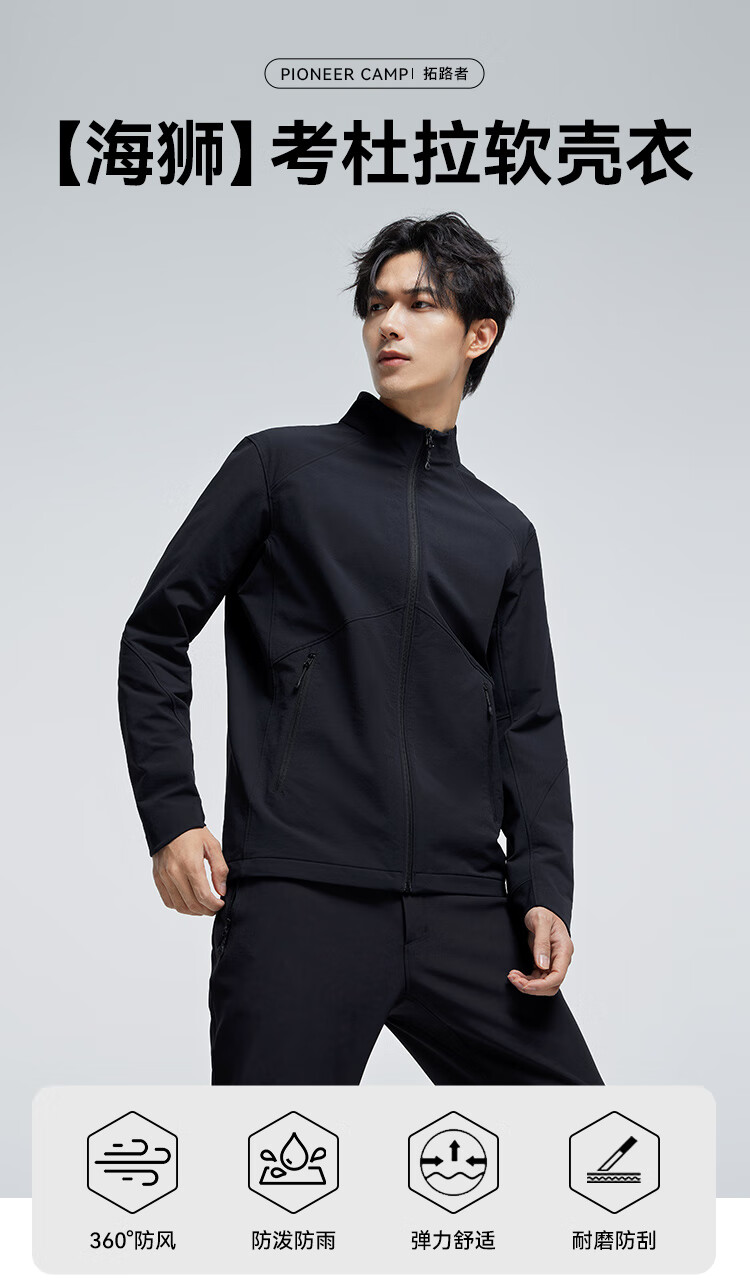 拓路者软壳衣考杜拉户外运动登山服防泼水防风立领夹克冬季加绒外套 松雾蓝-加绒 XL