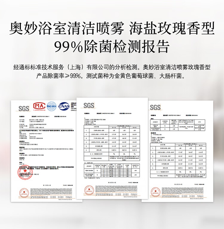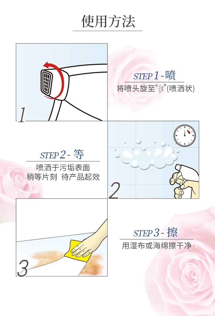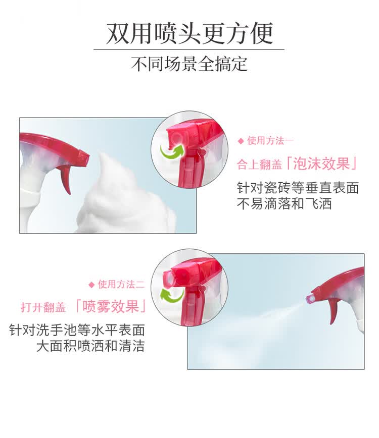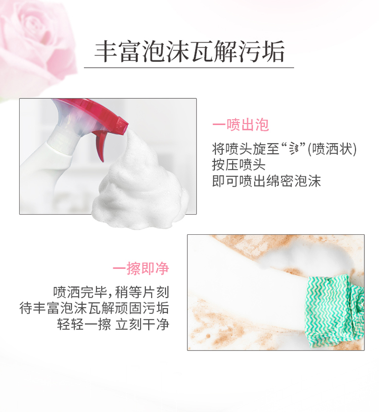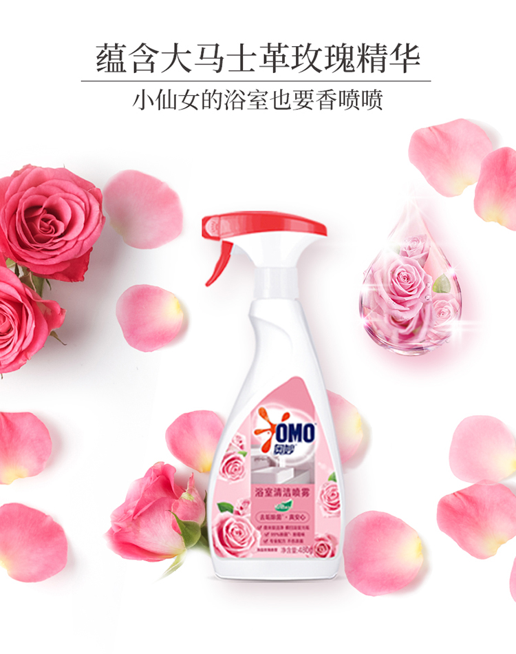 奥妙浴室清洁喷雾双瓶装480g×2 海盐玫瑰泡泡 强效除菌除霉味去污垢