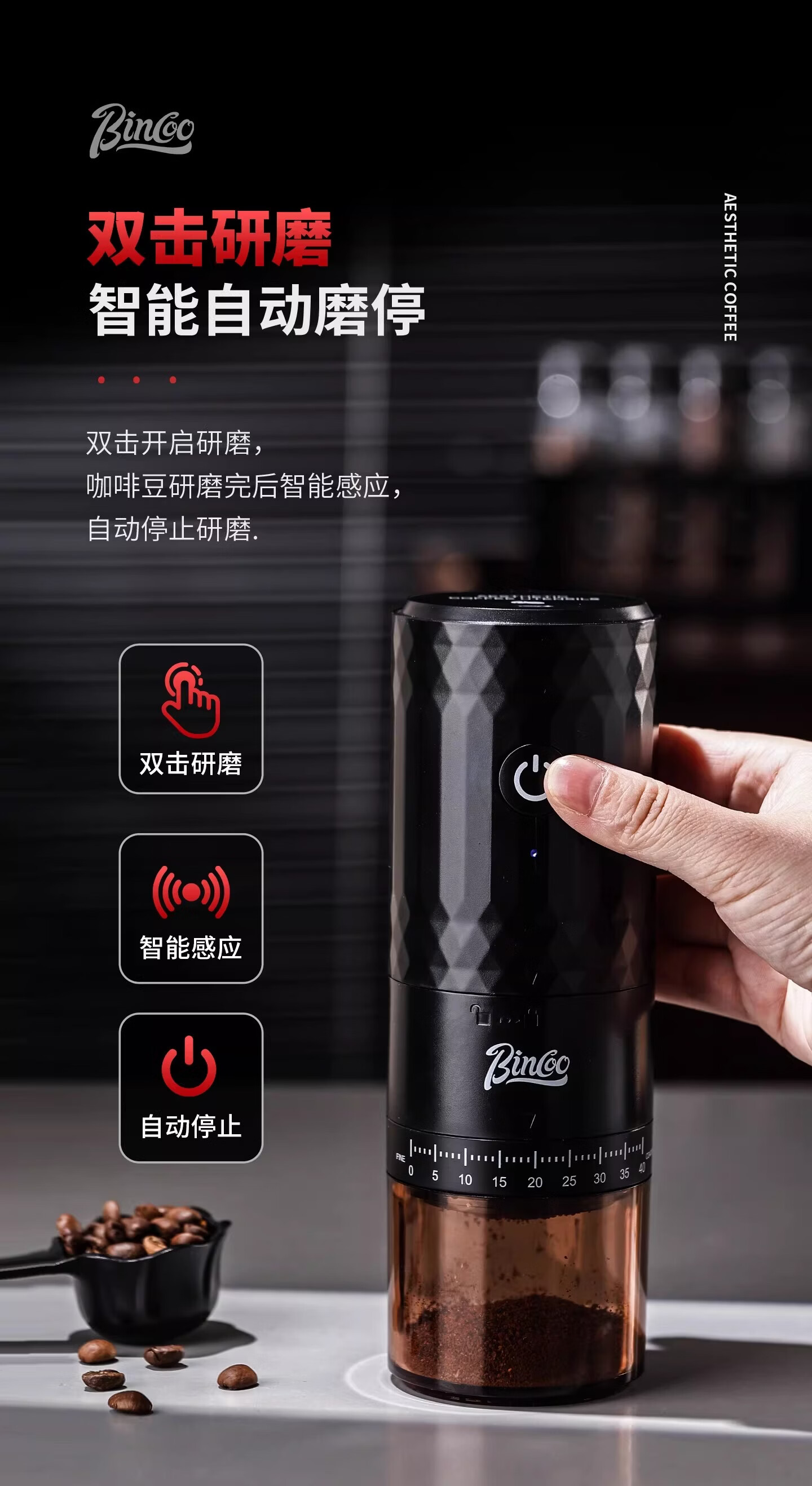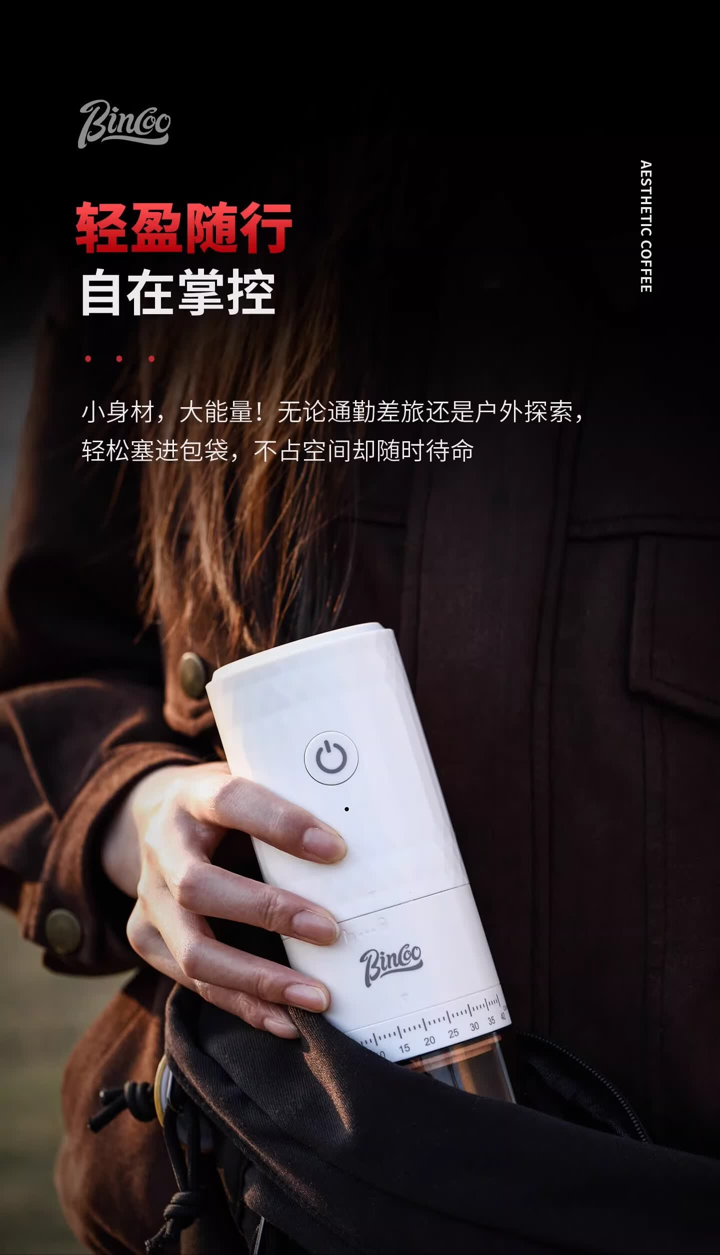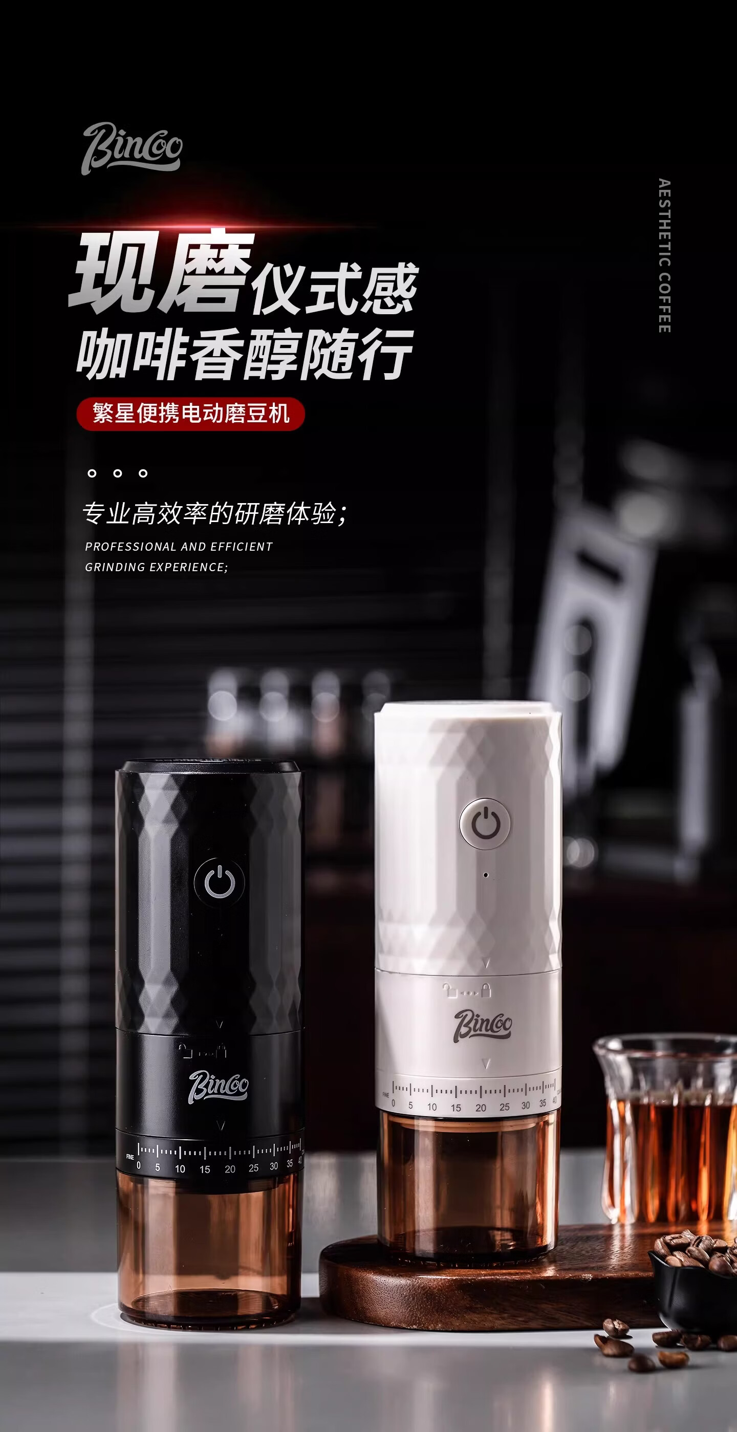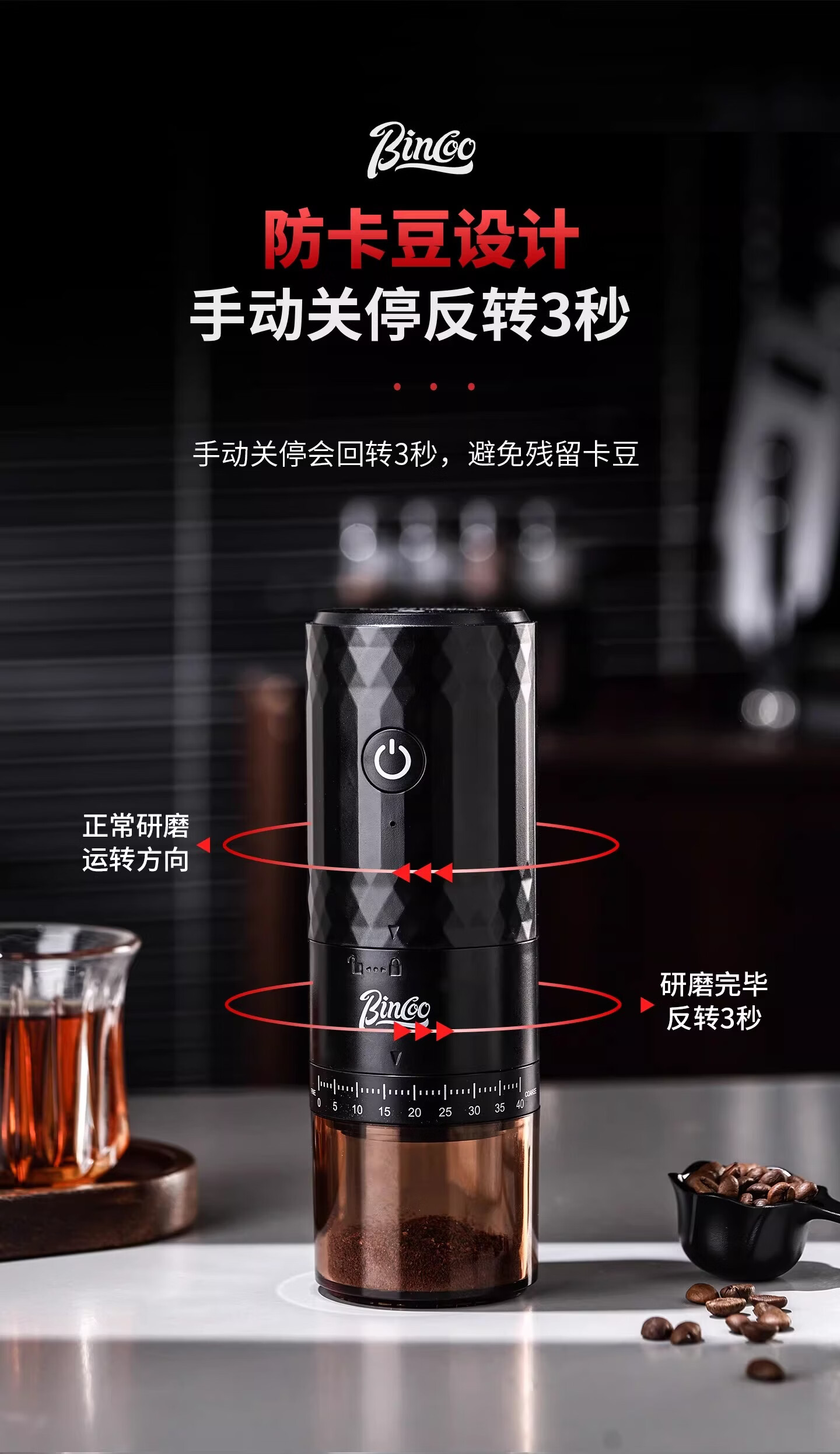 Bincoo电动磨豆机无线便携磨粉机咖啡豆研磨机家用小型自动研磨器 无线升级款白色(陶芯)