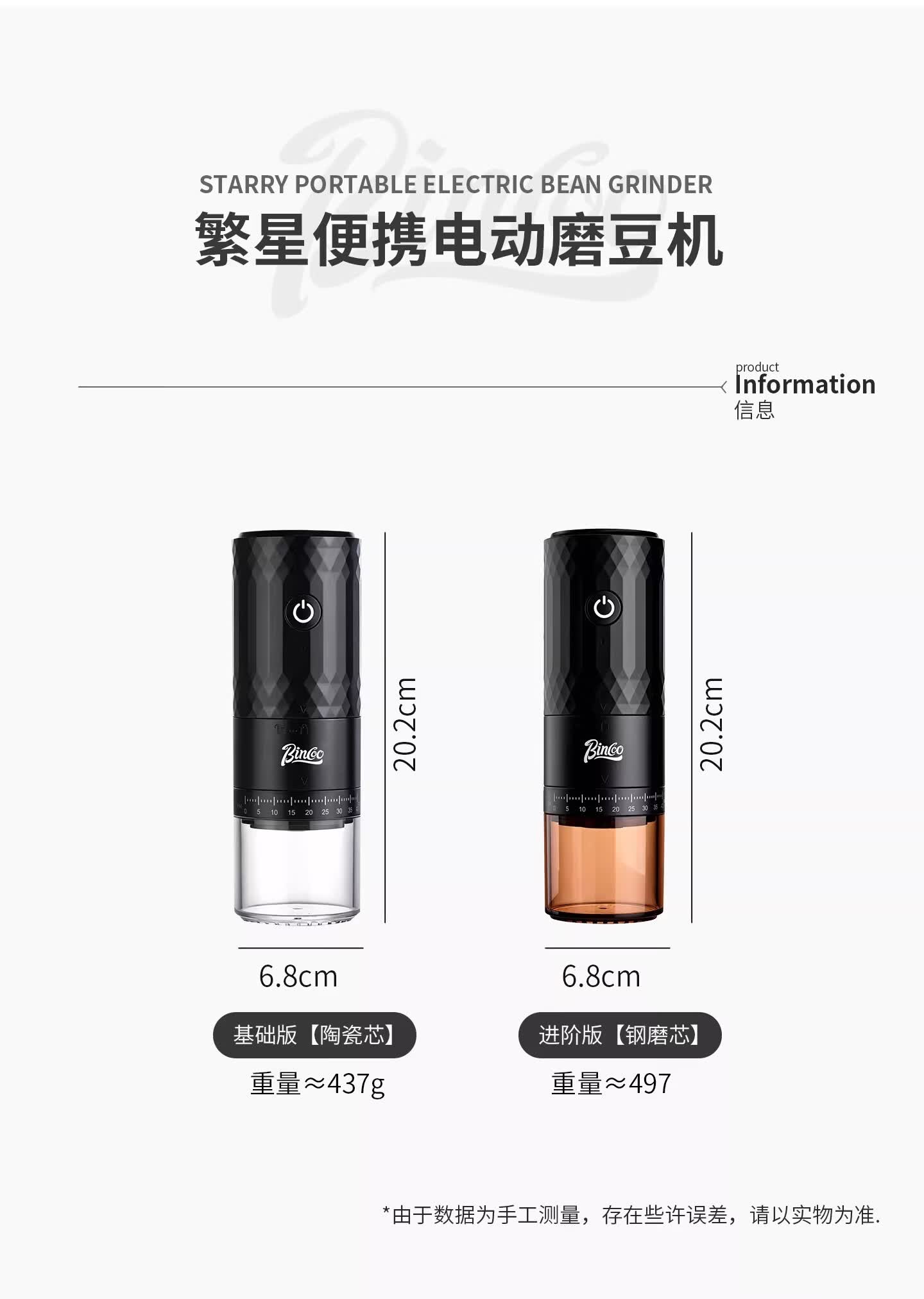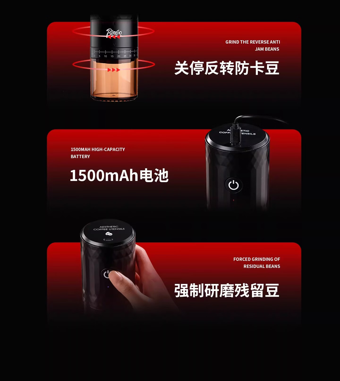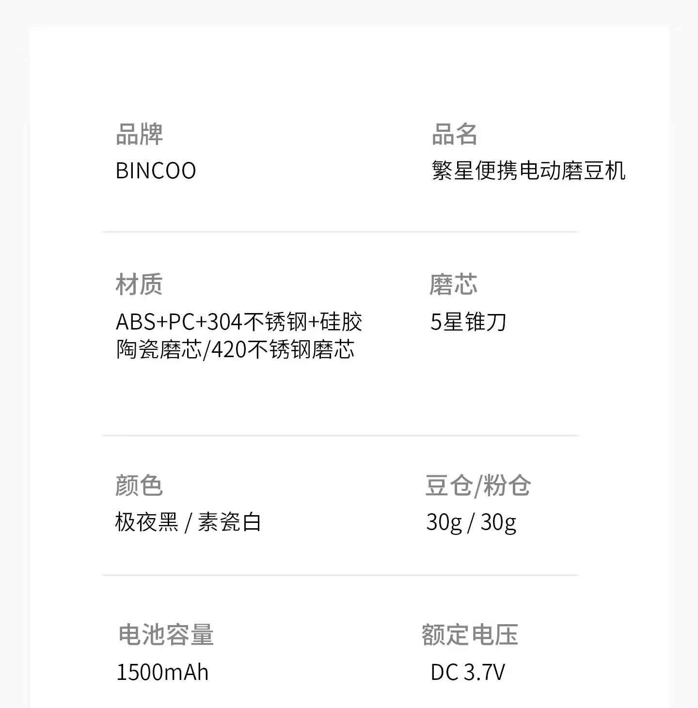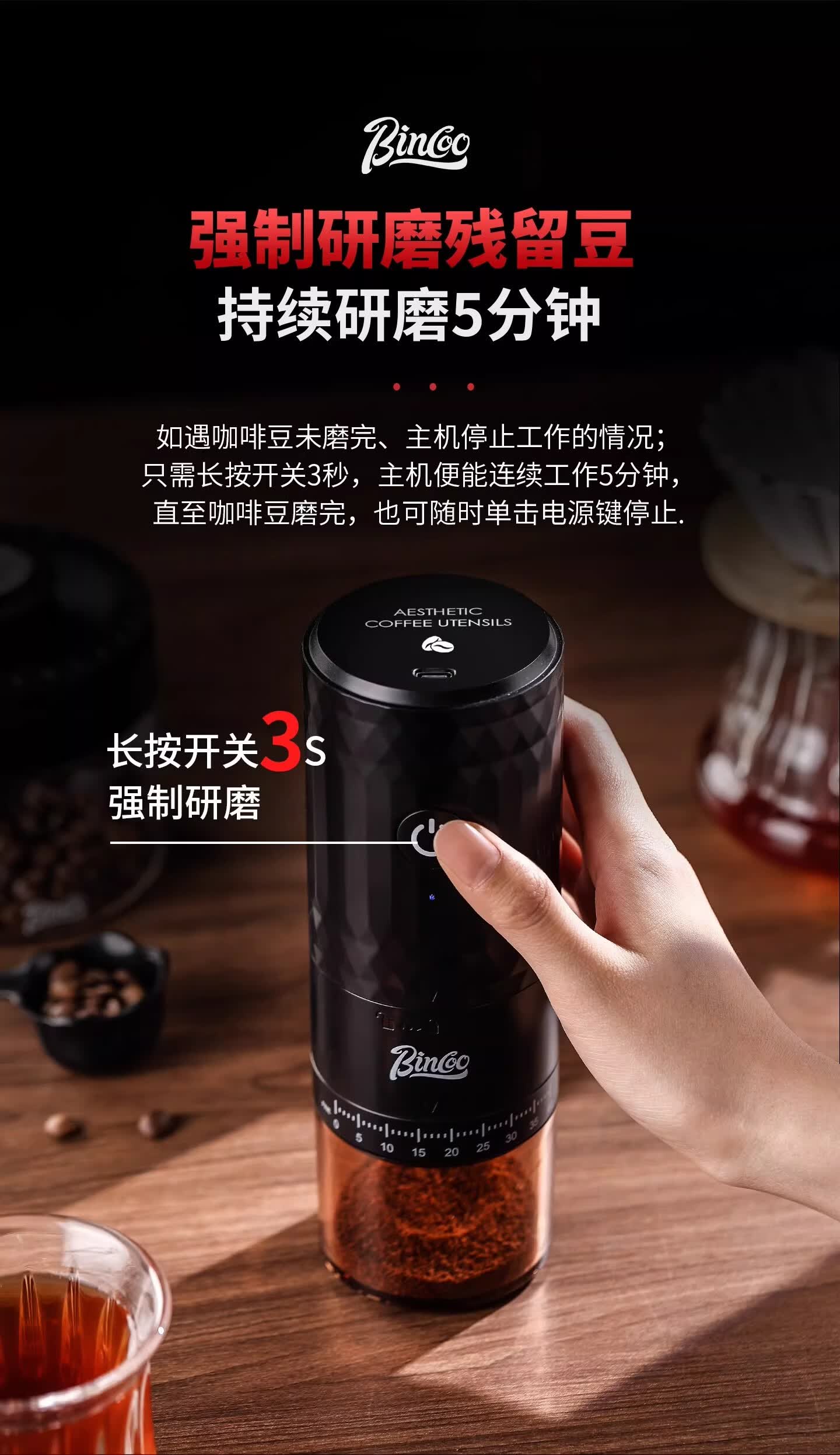 Bincoo电动磨豆机无线便携磨粉机咖啡豆研磨机家用小型自动研磨器 无线升级款白色(陶芯)
