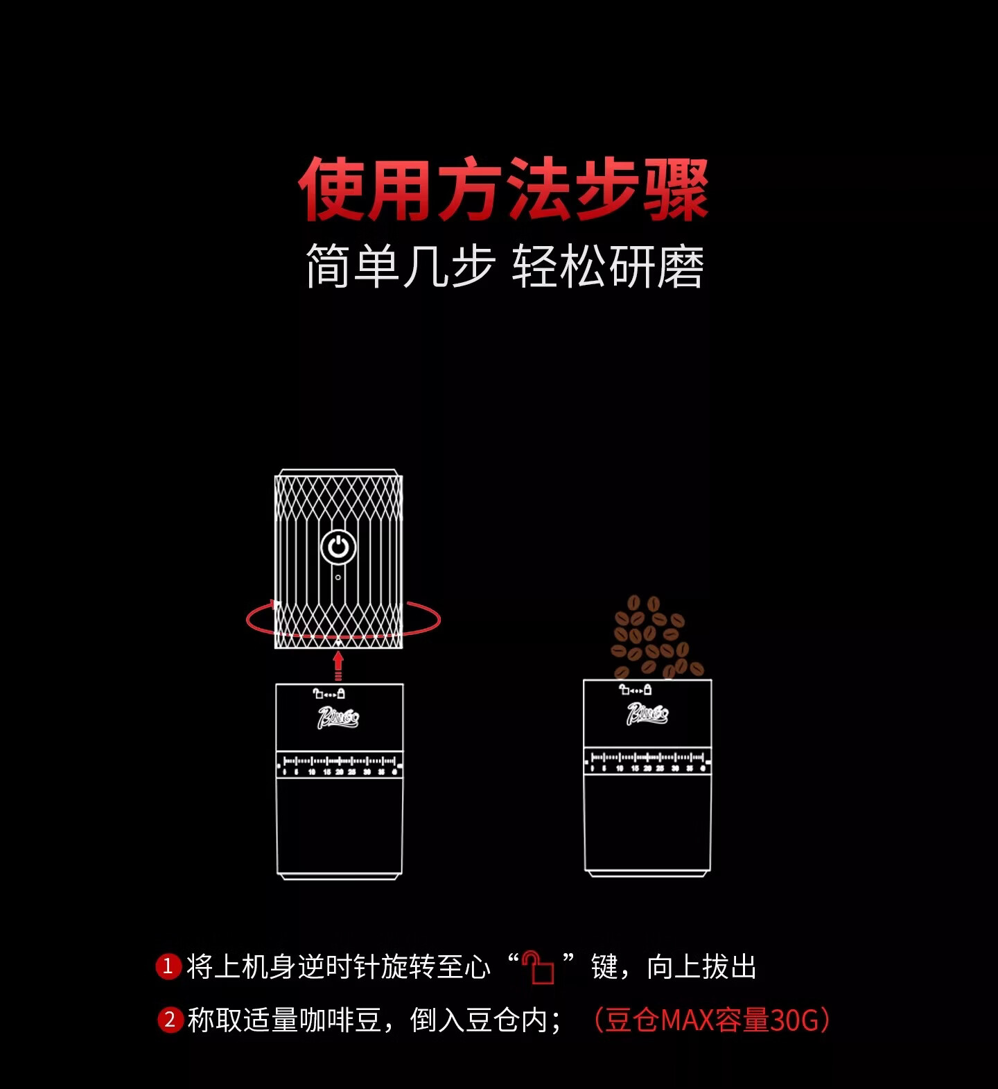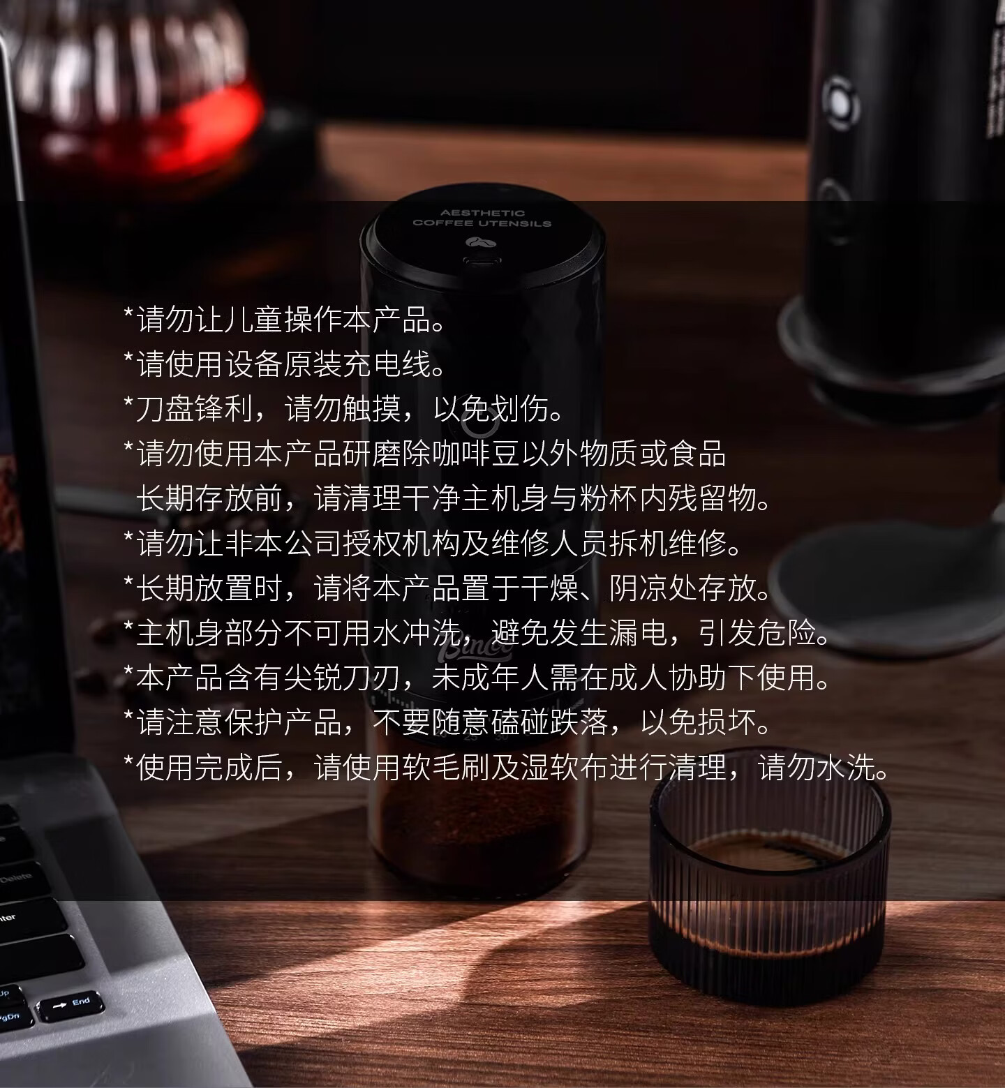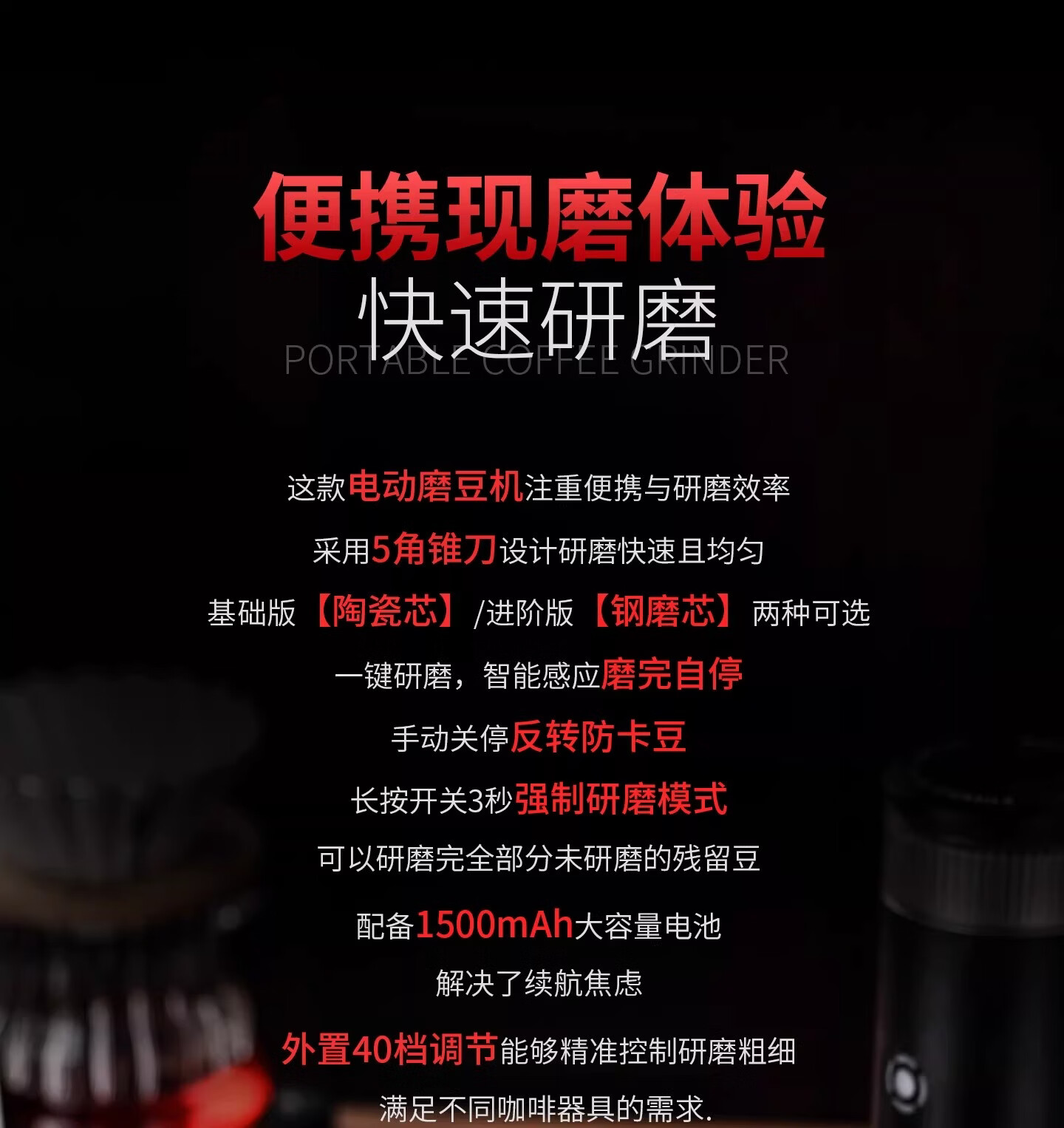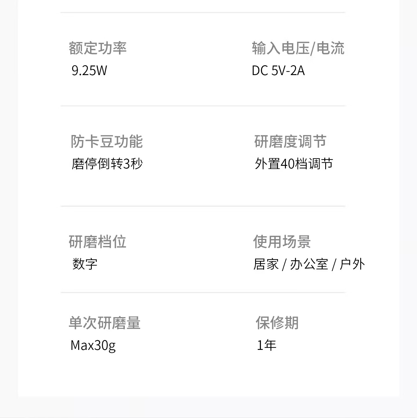 Bincoo电动磨豆机无线便携磨粉机咖啡豆研磨机家用小型自动研磨器 无线升级款白色(陶芯)