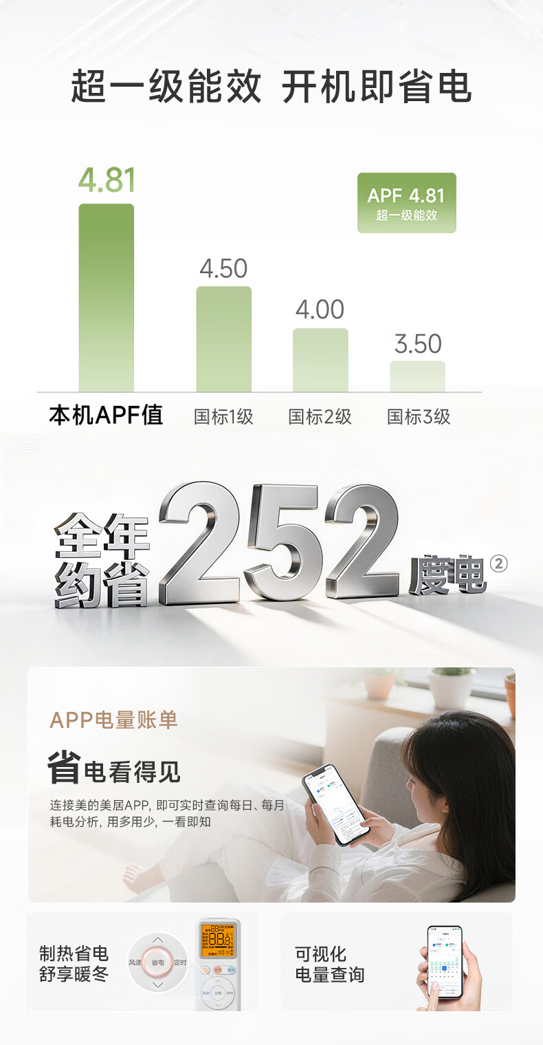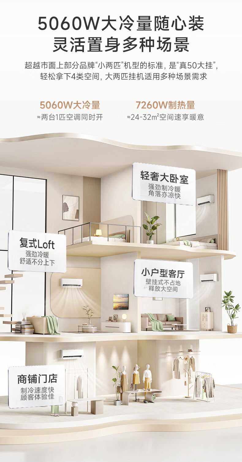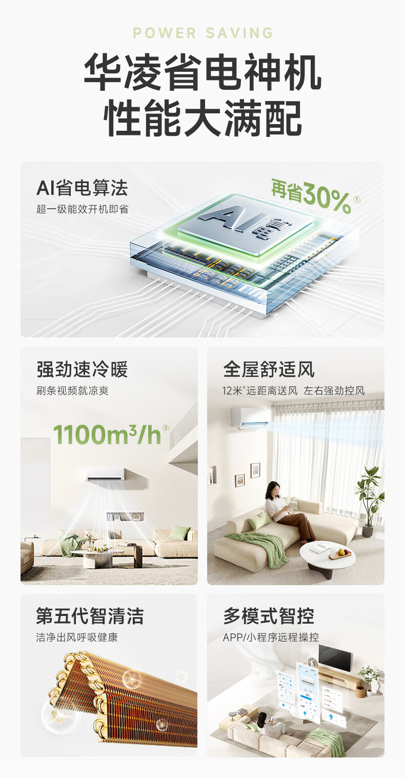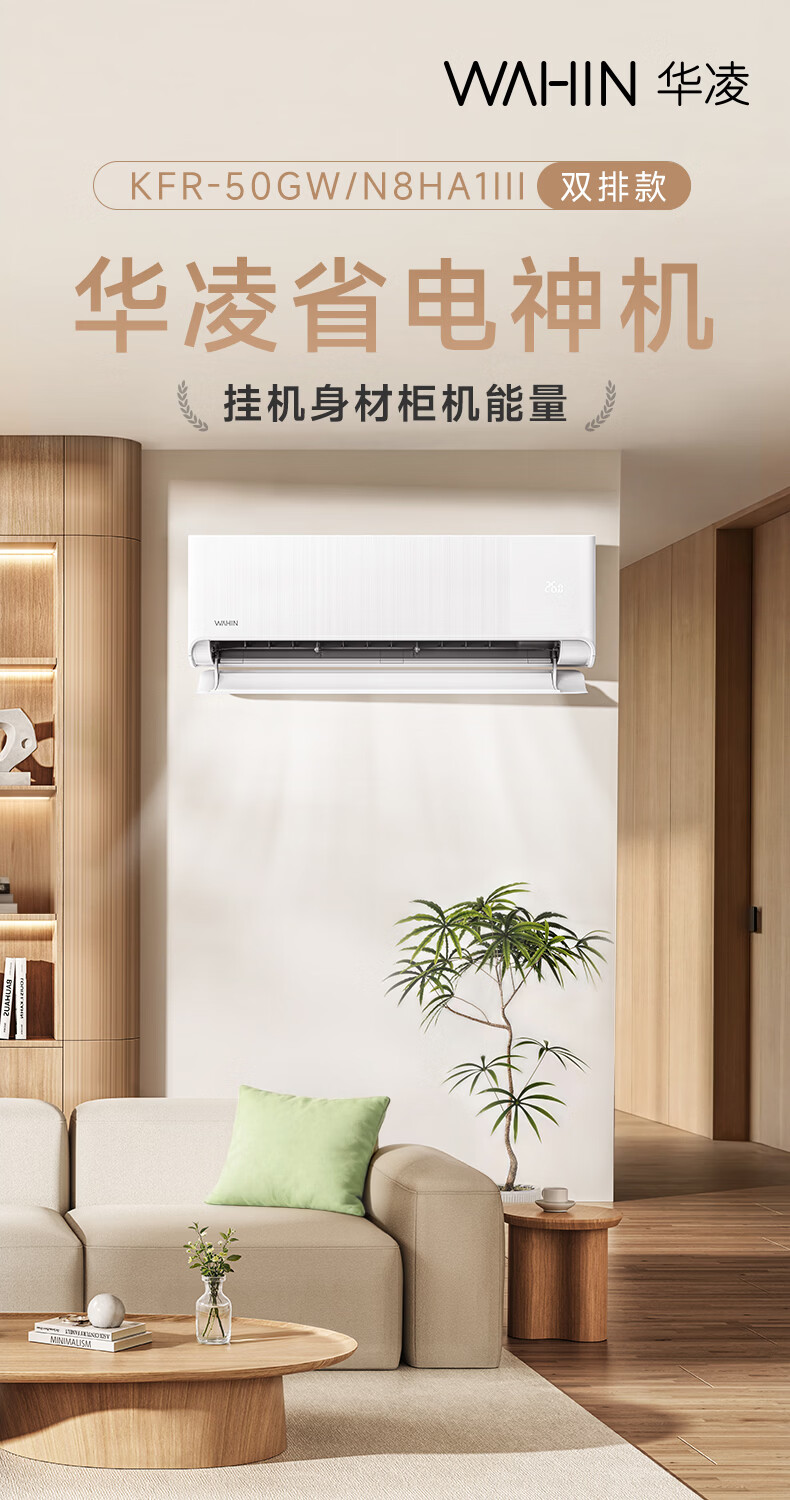 华凌空调 新品省电神机2匹新一级能效 双排铜管舒适风变频卧室客厅挂机以旧换新补贴KFR-50GW/N8HA1Ⅲ