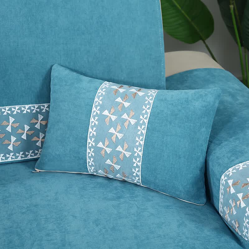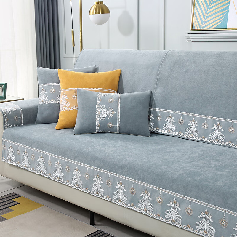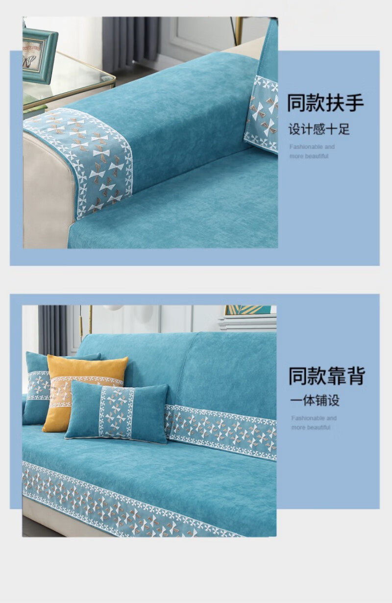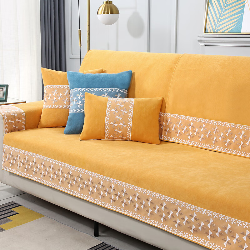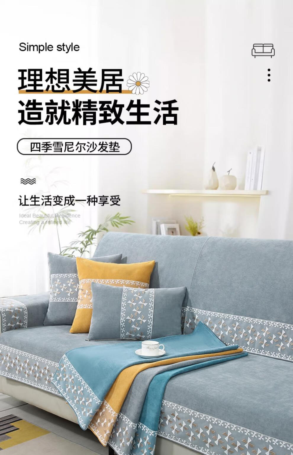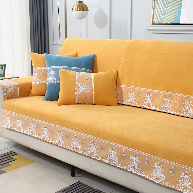 眷耐沙发垫四季通用防滑2026年新款雪尼尔坐贵妃一体开叉靠背通铺整张 相知橘黄-(雪尼尔) 130*180cm一面花边贵妃专用