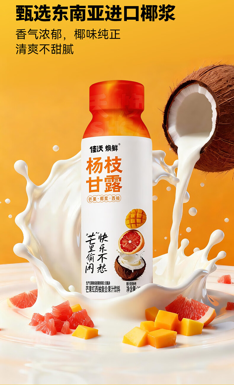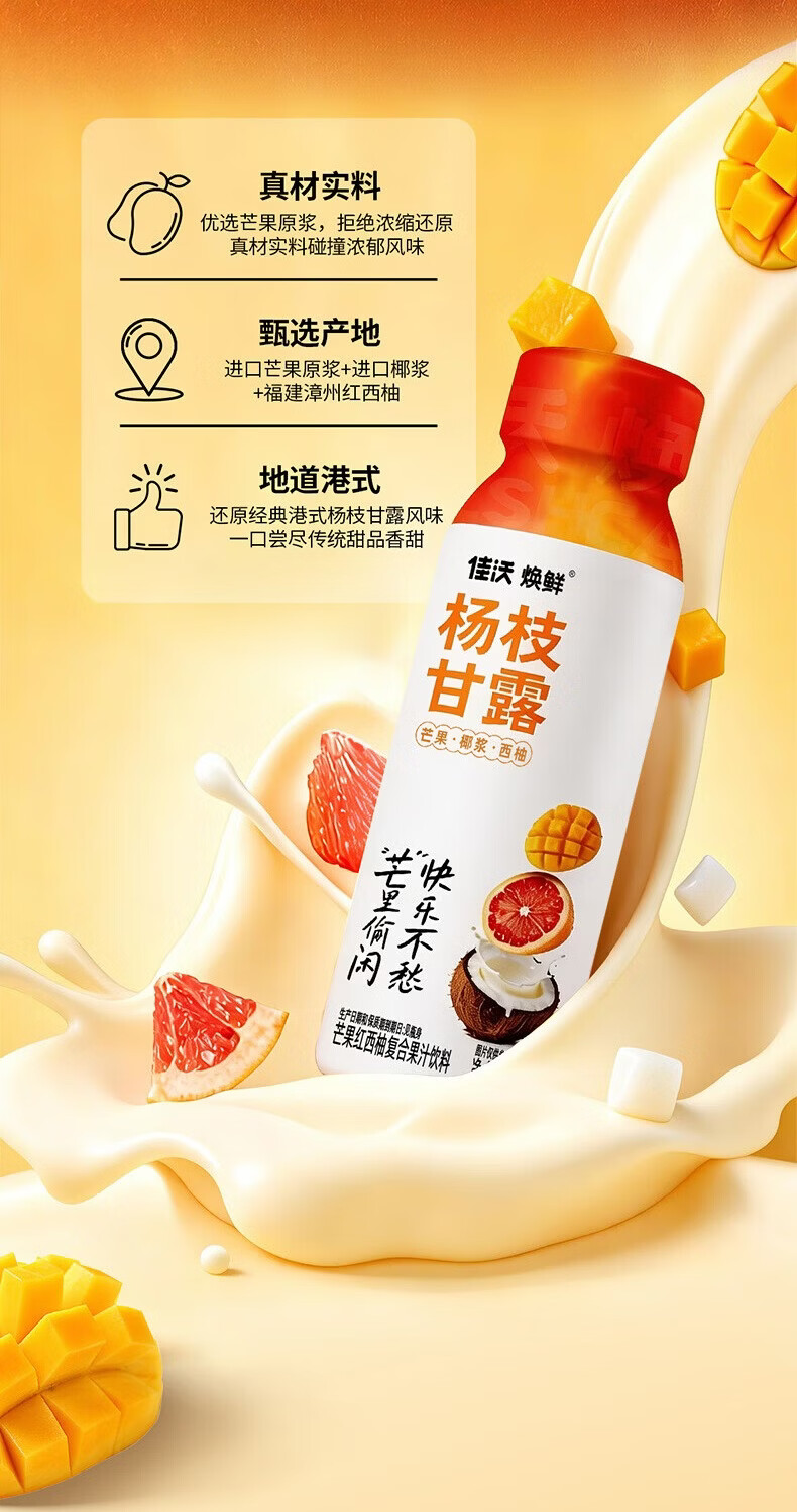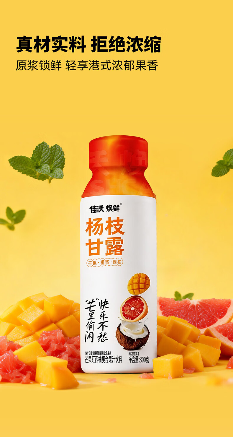 佳沃焕鲜港式风味杨枝甘露芒果红西柚复合果汁饮料饮品 椰香柚甜300g*24瓶