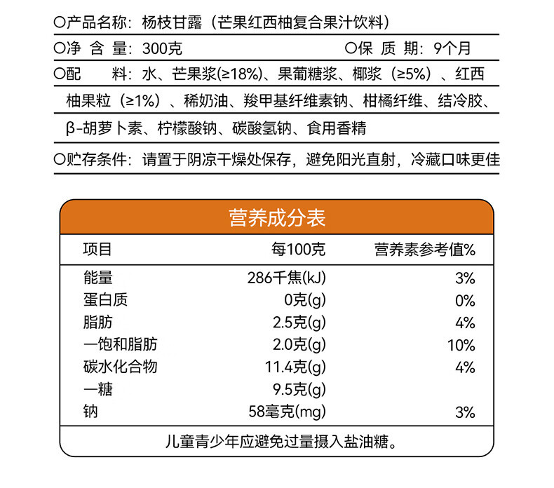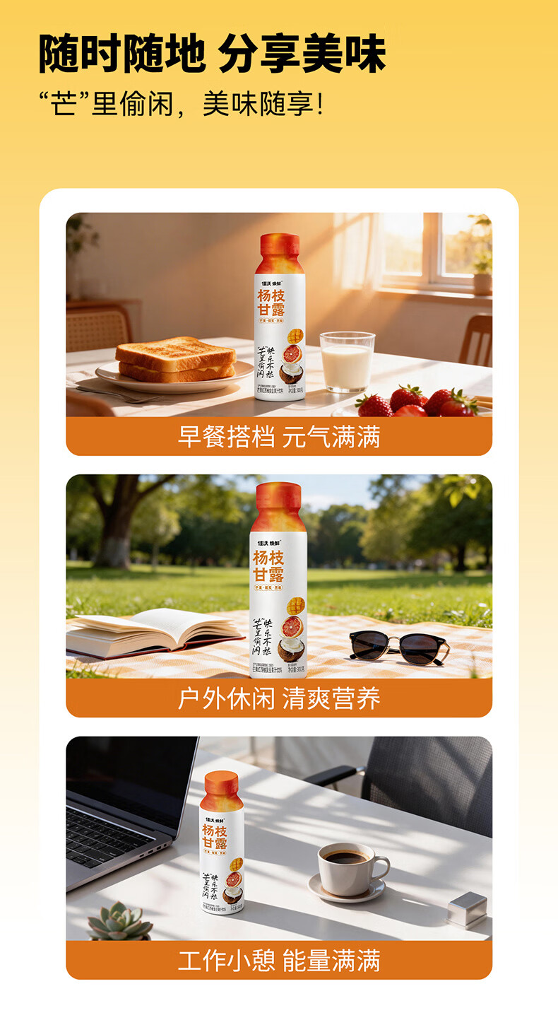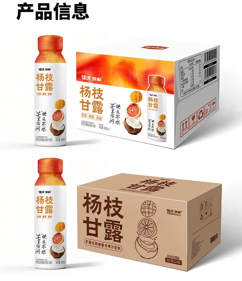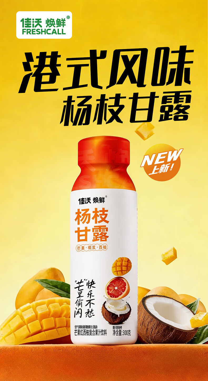 佳沃焕鲜港式风味杨枝甘露芒果红西柚复合果汁饮料饮品 椰香柚甜300g*24瓶