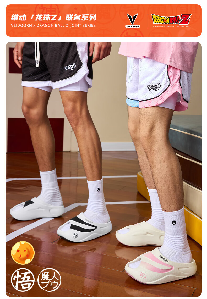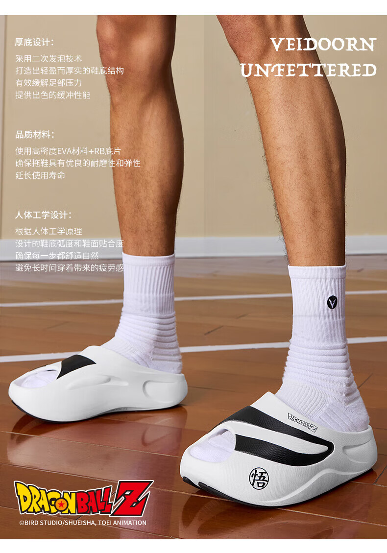 维动(VEIDOORN)七龙珠正版联名LOGO【逍遥】拖鞋运动休闲情侣增高鞋 七龙珠正版联名-白黑色 44-45