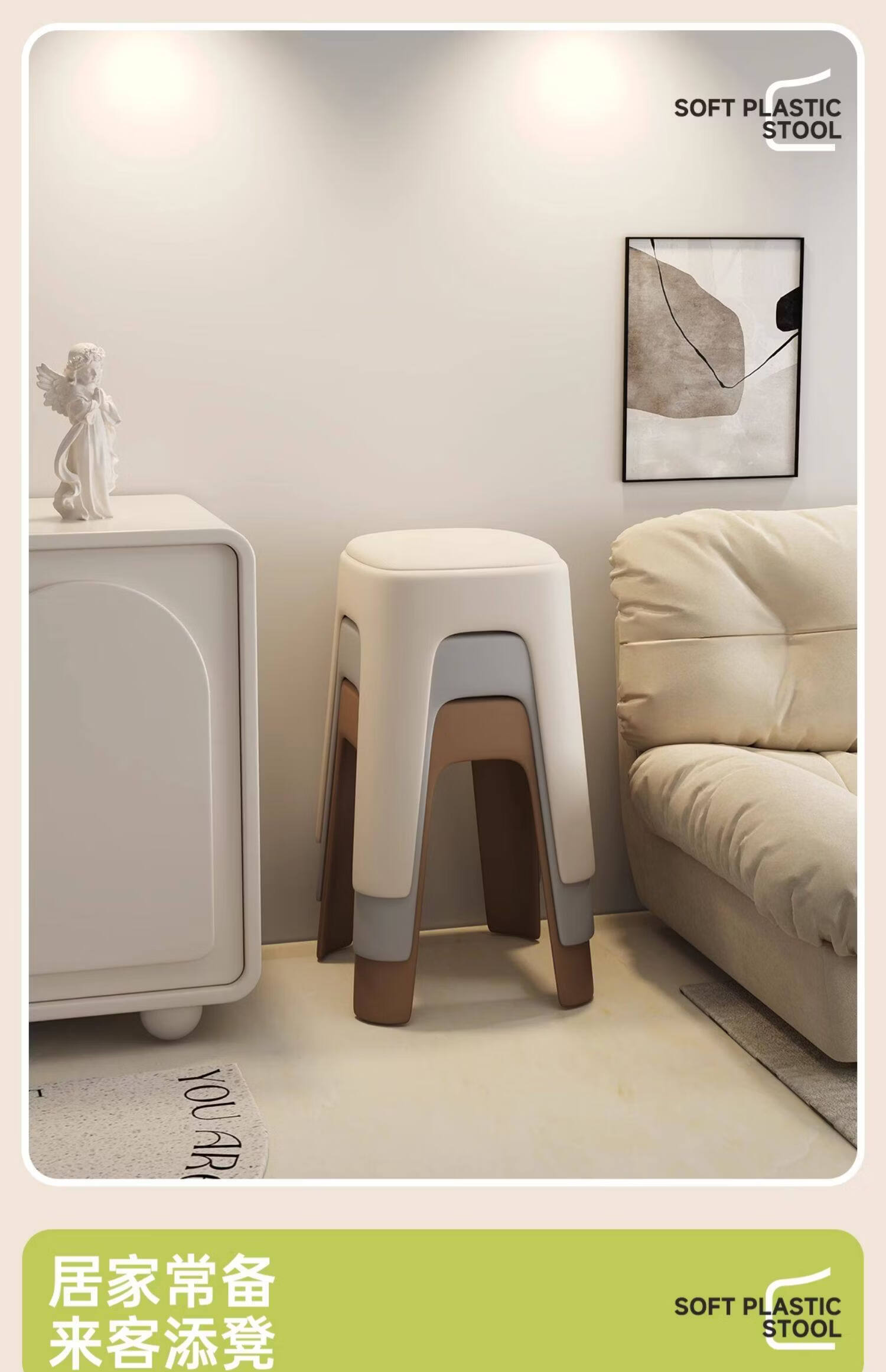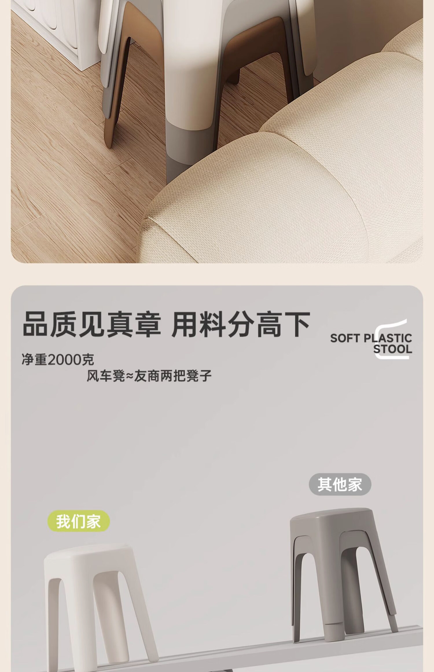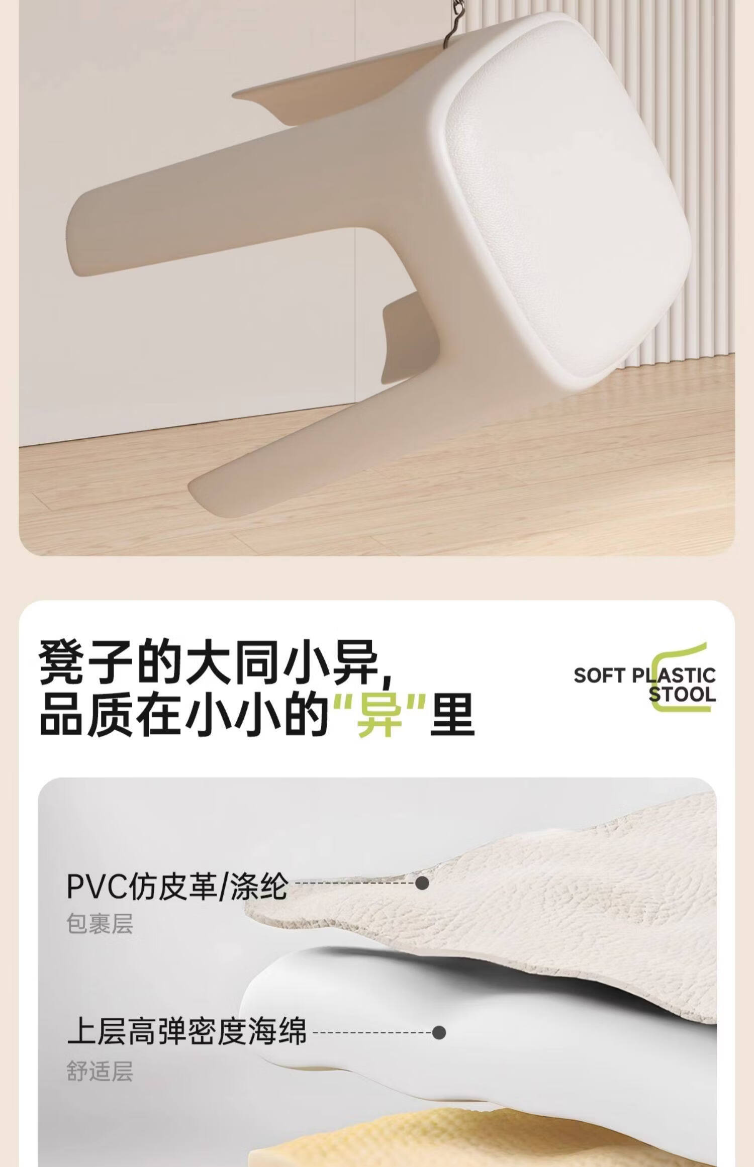 诗元奶油风软包塑料椅子可叠放高级感加厚餐桌独凳子2026新款家用餐椅 【特厚加粗2kg】米白色-云感软包凳【1把装】