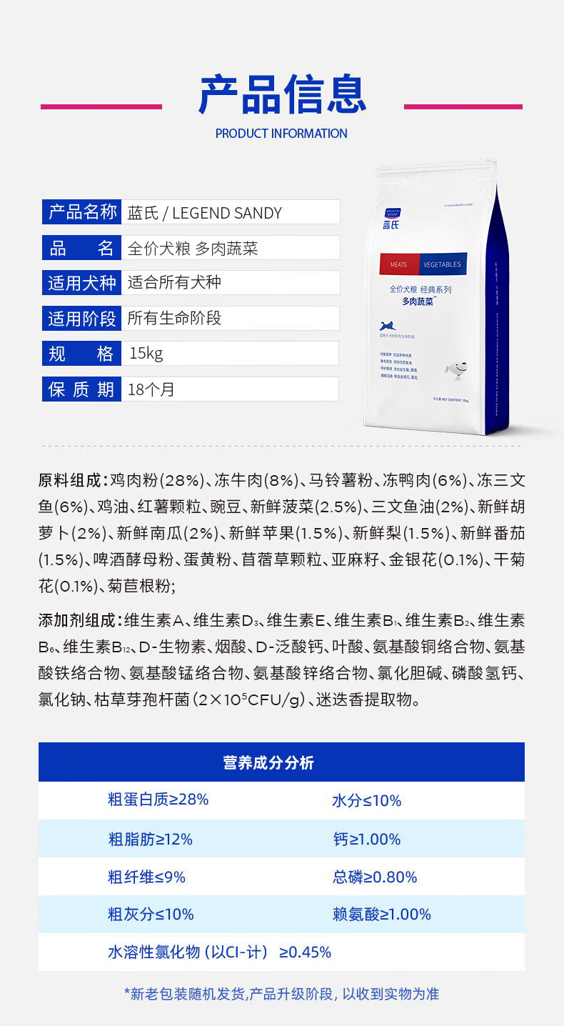 LEGENDSANDY蓝氏狗粮金毛柯基拉布拉多泰迪全犬种成犬幼犬多肉蔬菜15kg30斤