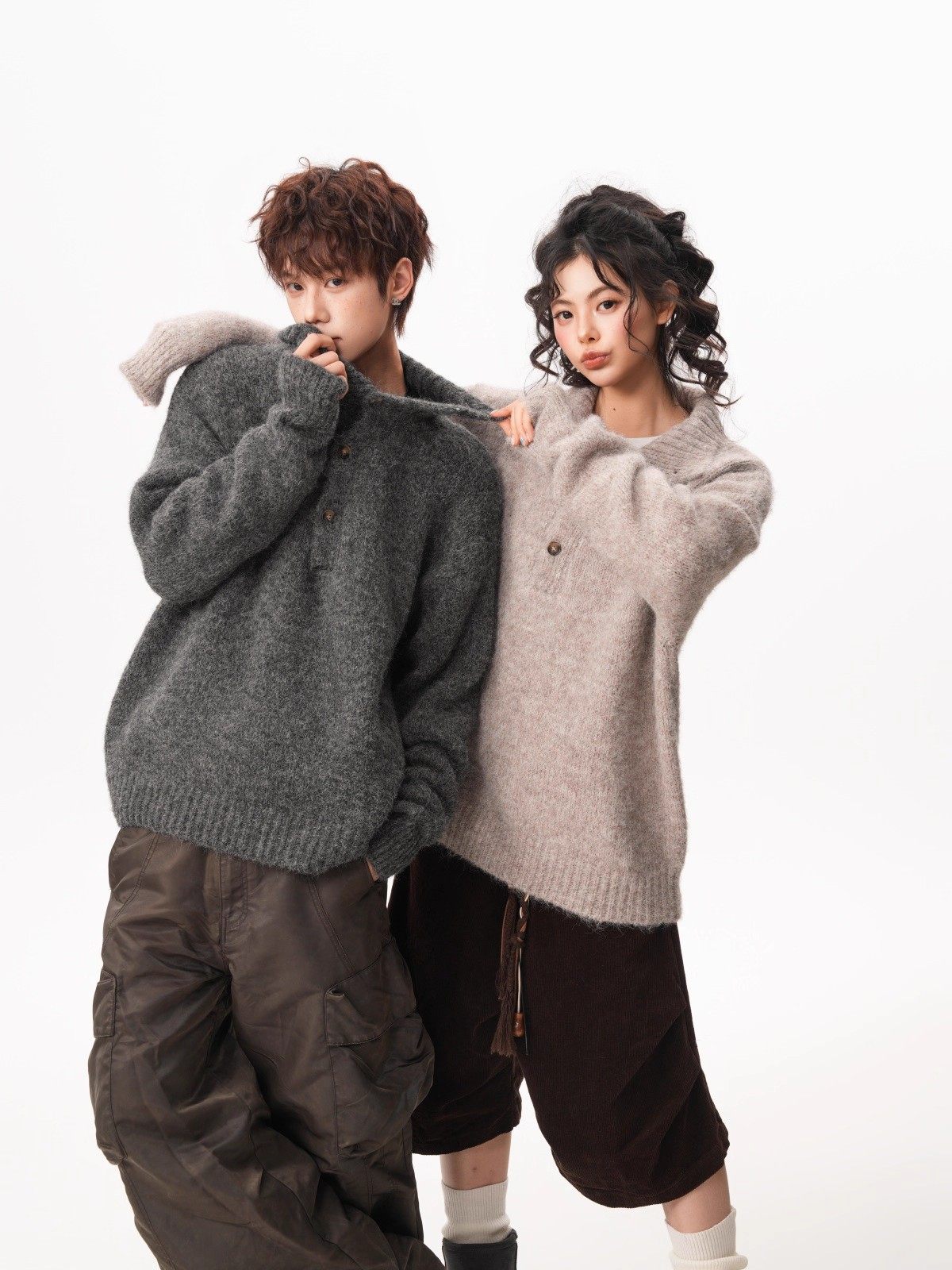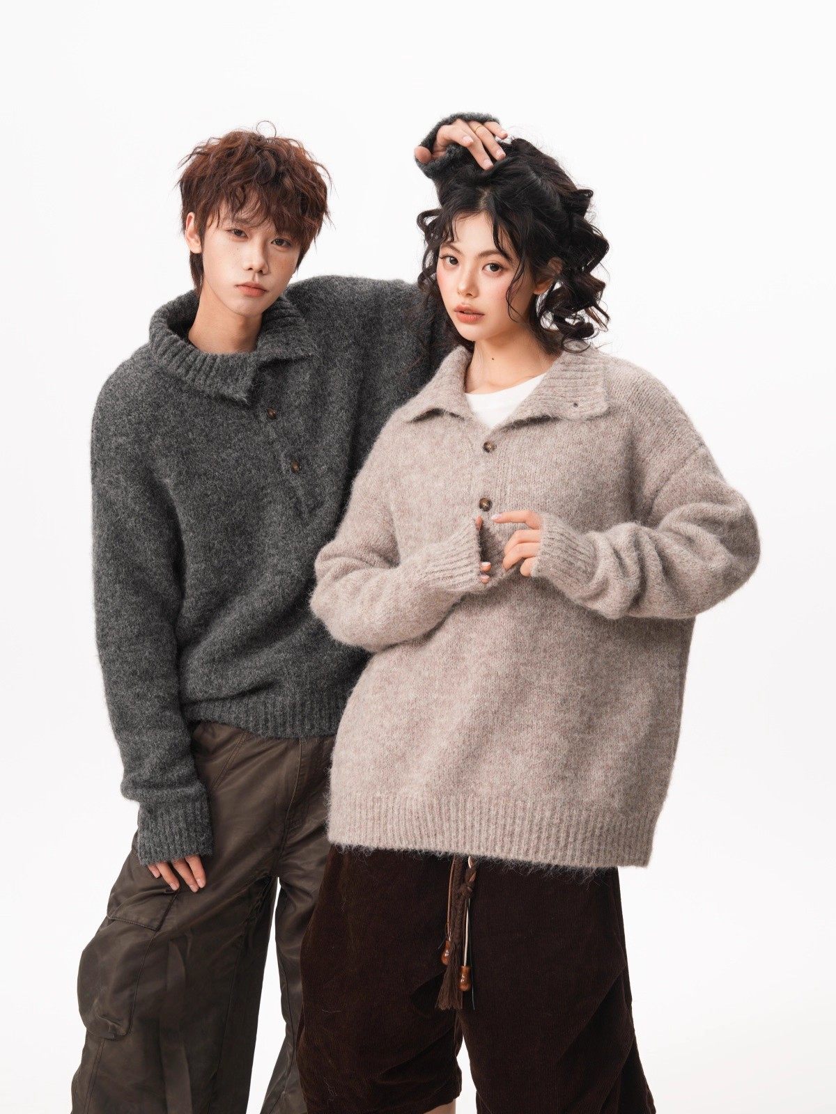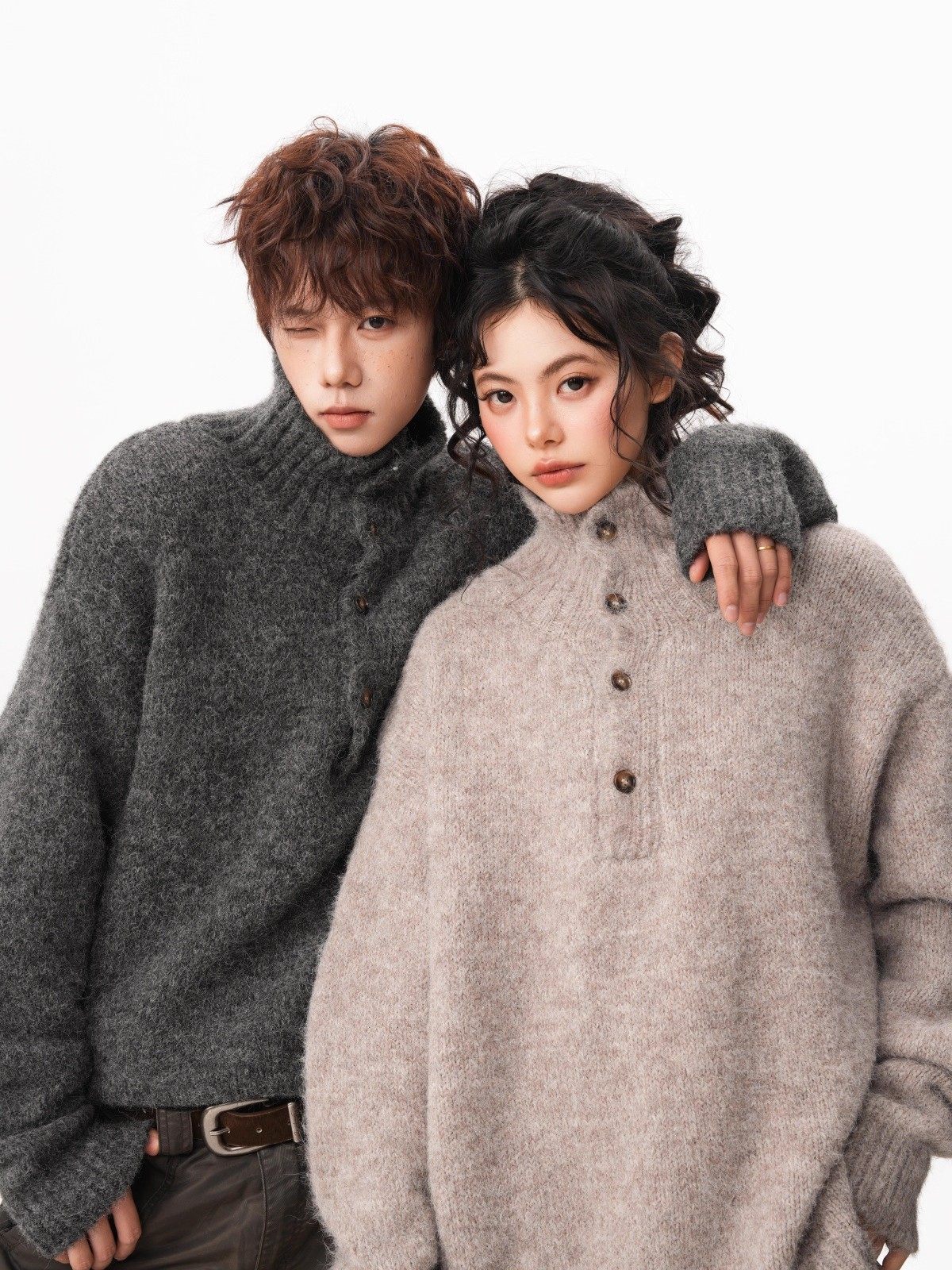 NEW OR MODE老钱风复古纽扣高领毛衣男冬季新款保暖宽松松弛感情侣羊毛针织衫 燕麦色 M 【建议90-110斤】