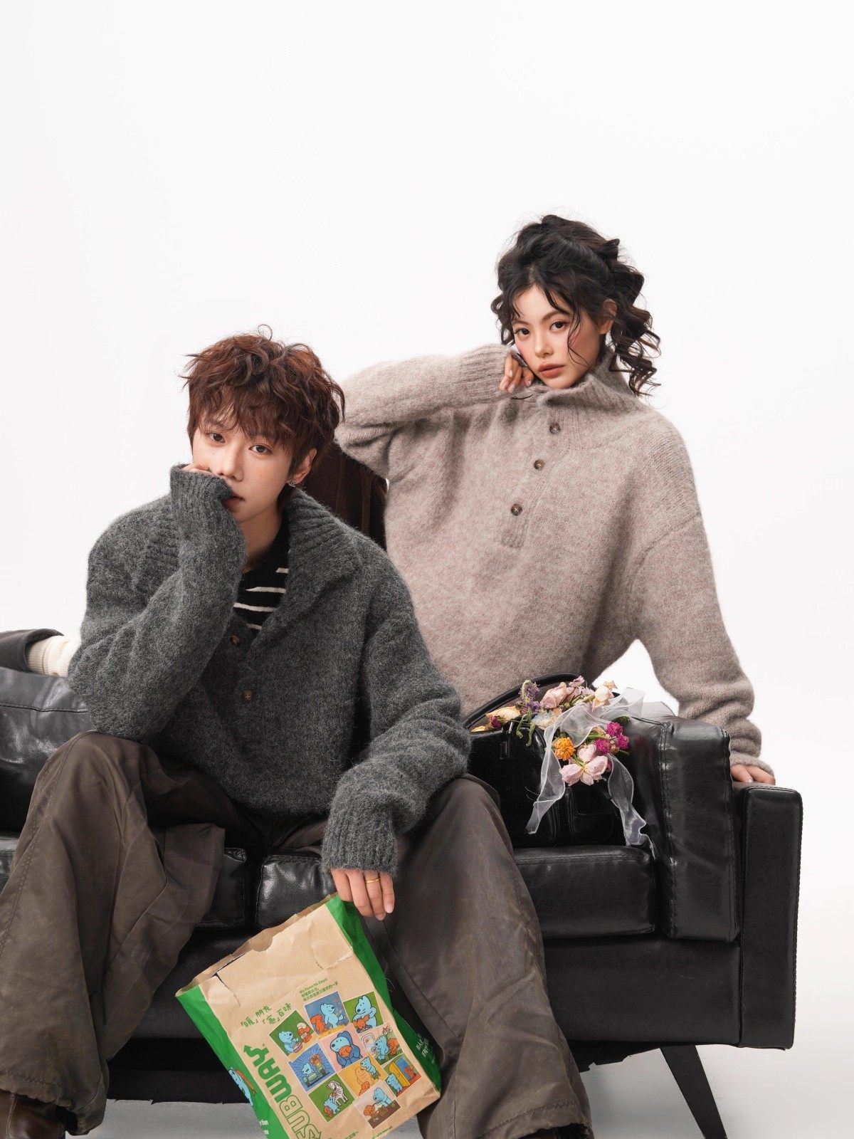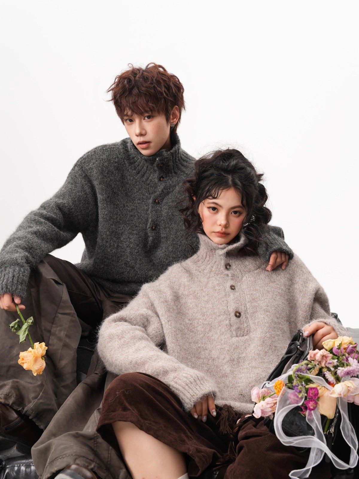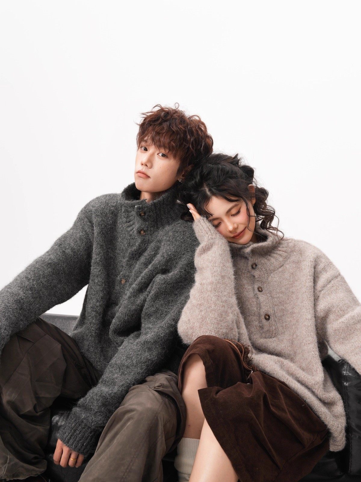 NEW OR MODE老钱风复古纽扣高领毛衣男冬季新款保暖宽松松弛感情侣羊毛针织衫 燕麦色 M 【建议90-110斤】