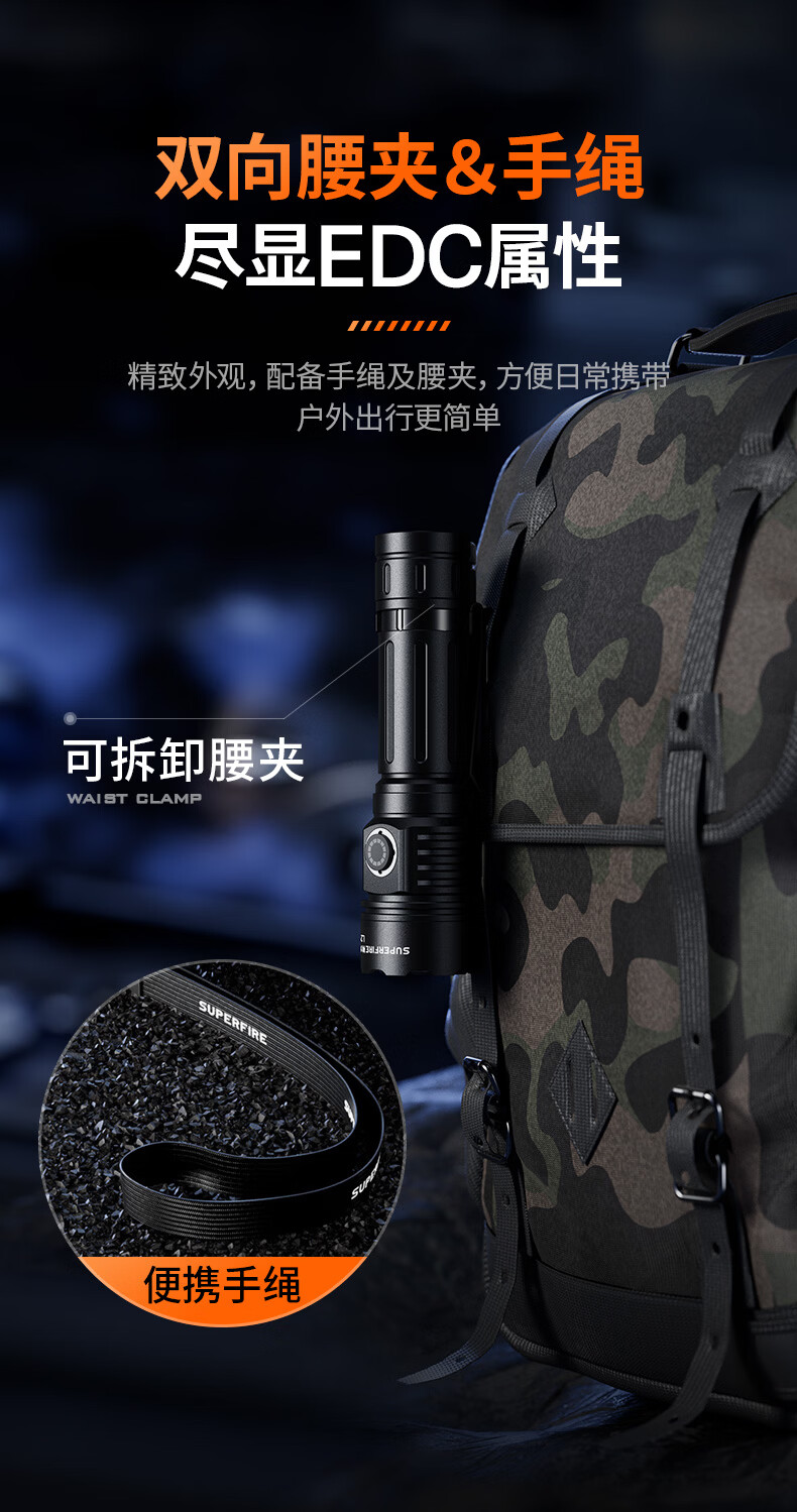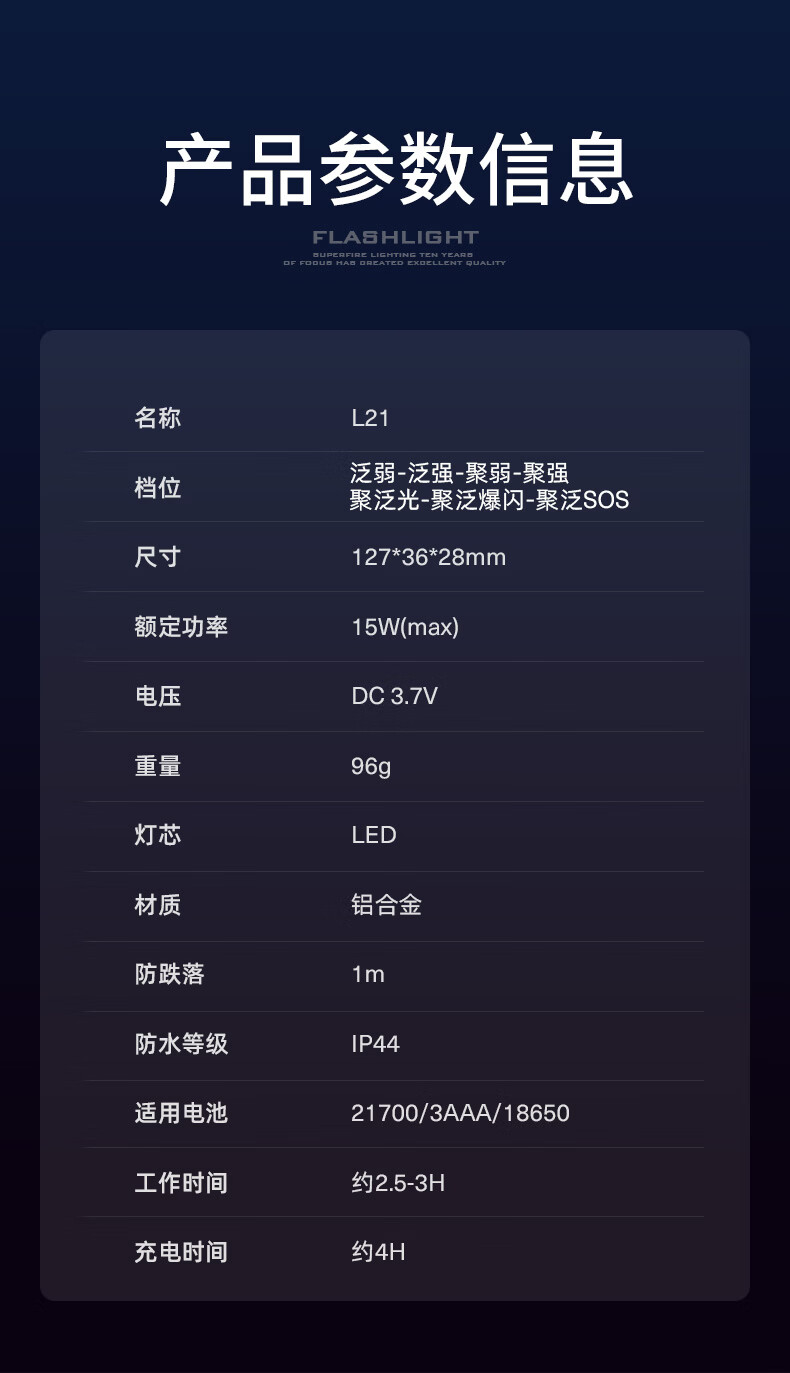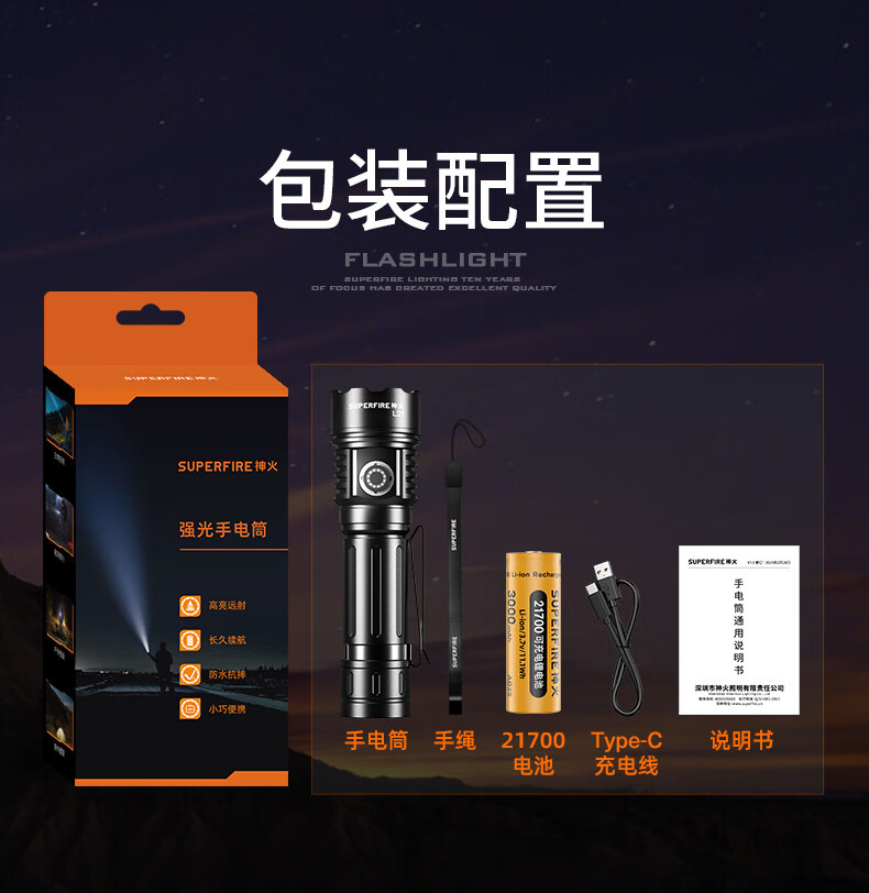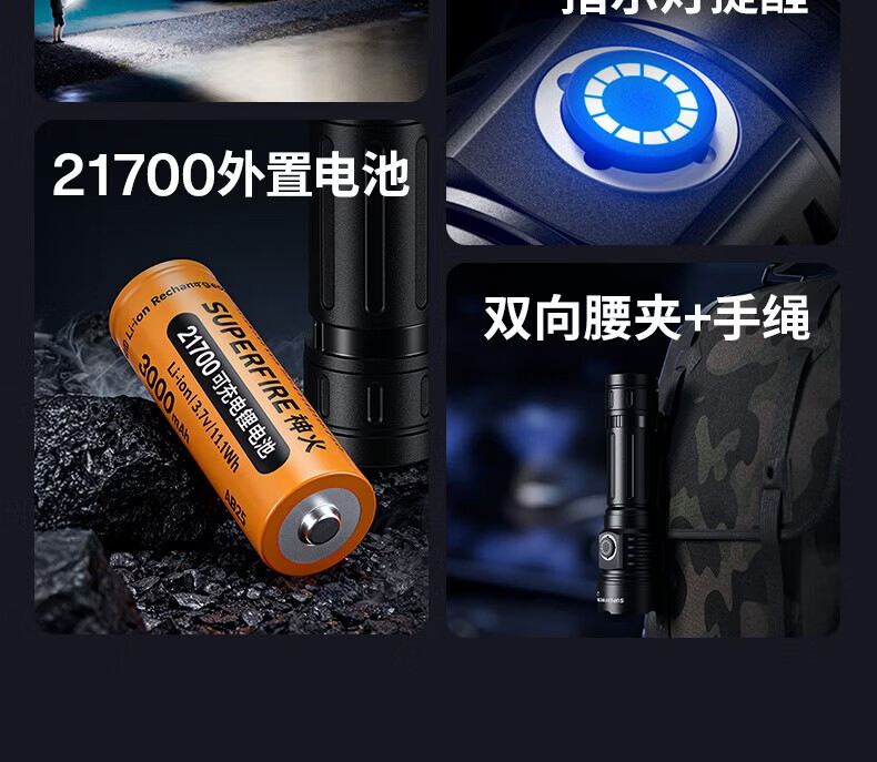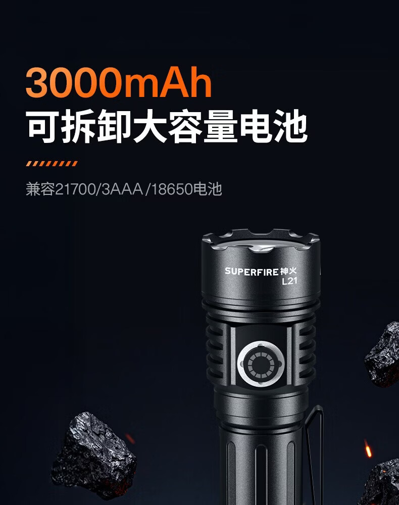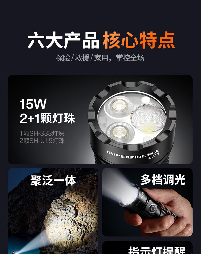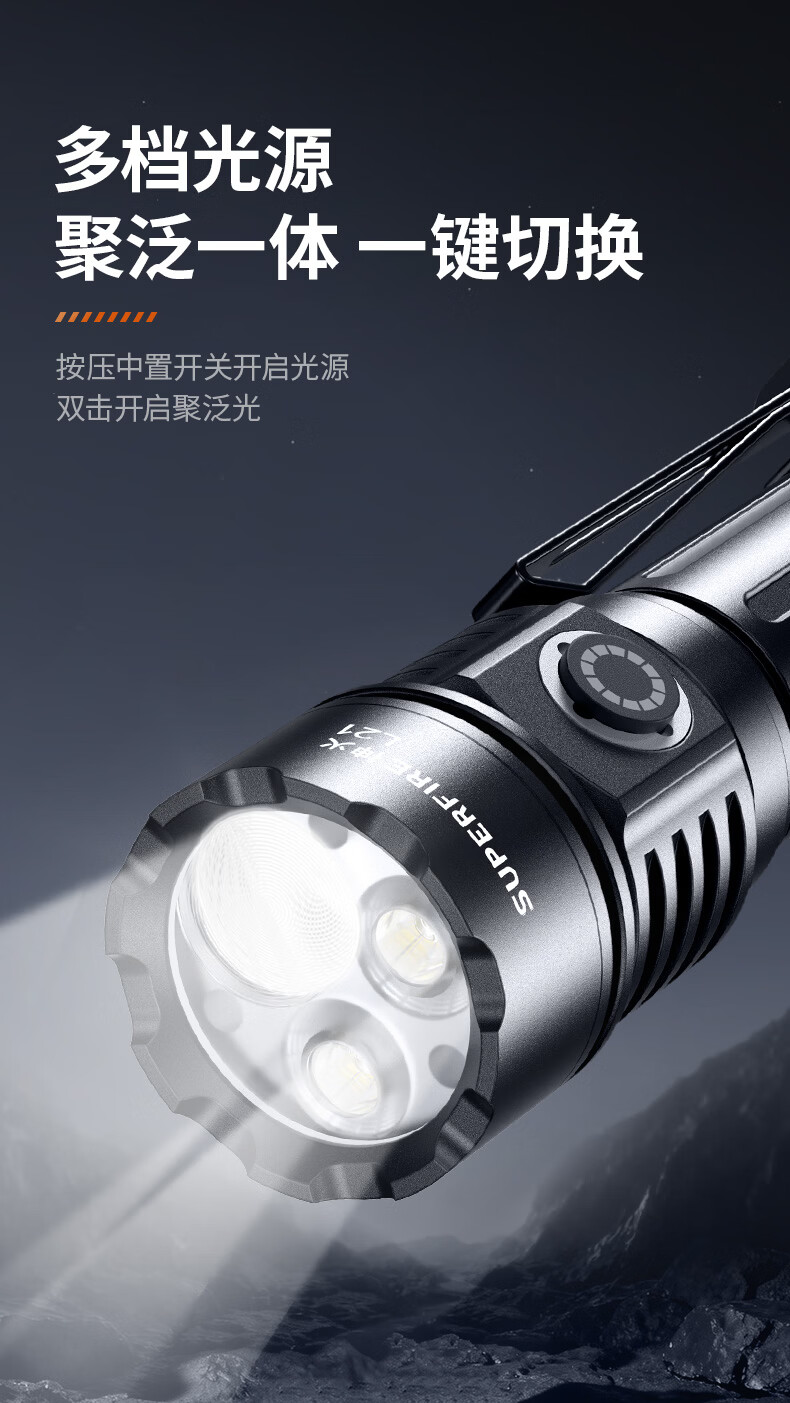 神火(SupFire)强光手电筒家用流明超亮大泛光户外照知了猴长续航巡逻大容量 L21【1350LM-15W】