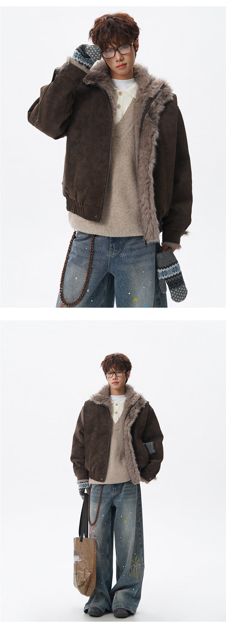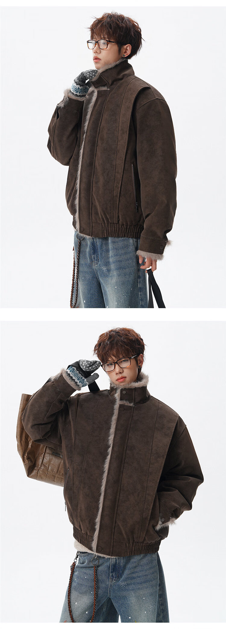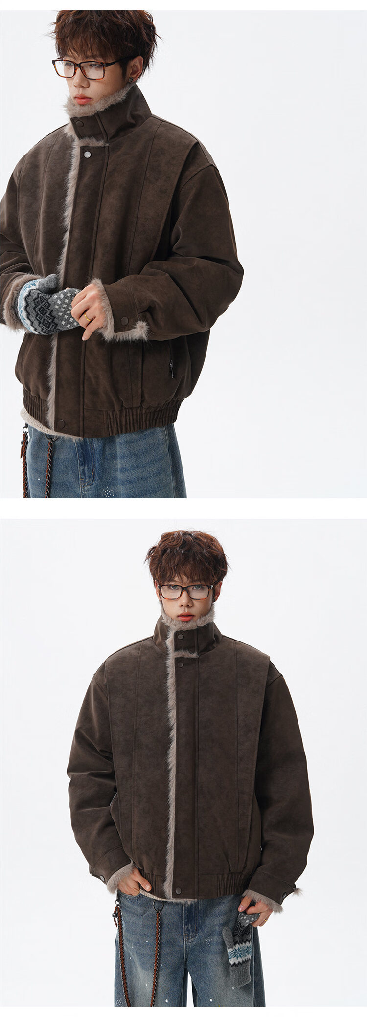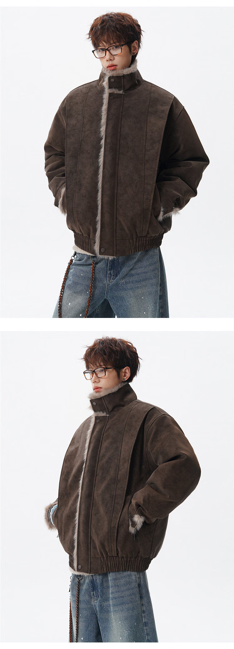 NEW OR MODE美式加绒加厚毛领座山雕棉服男冬季新款保暖宽松潮牌PU皮棉衣外套 灰色 M 【建议90-110斤】