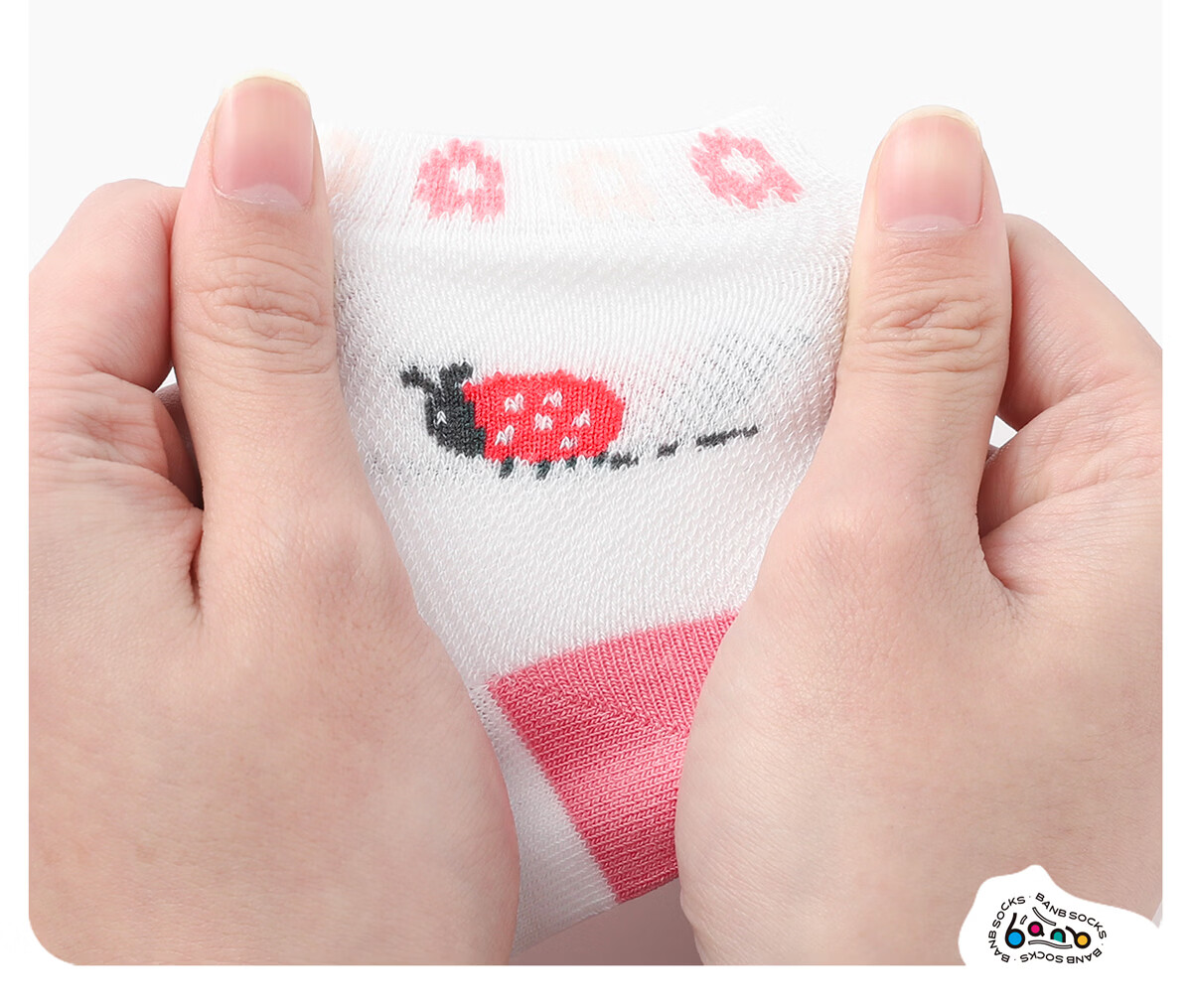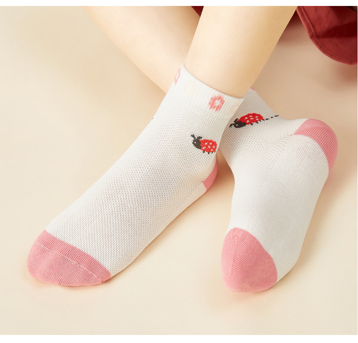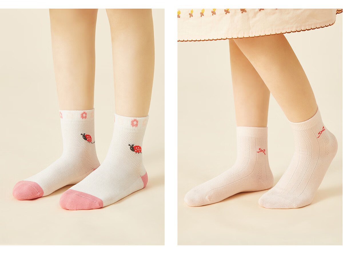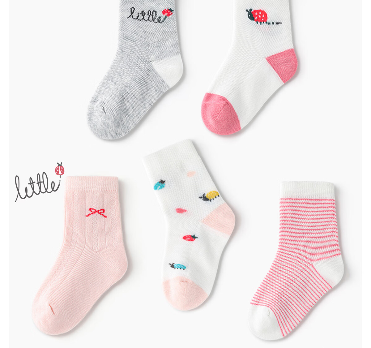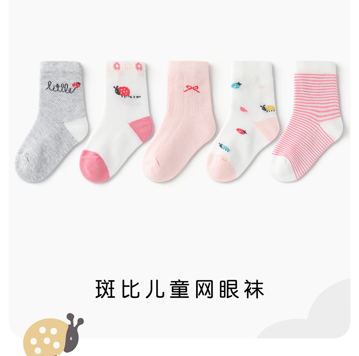 斑比儿童袜子女孩夏季网眼透气薄款中小童春秋无骨中筒棉袜 BB2214 春夏款儿童网眼袜 5双 1-3岁 建议脚码16-20码【14-16】