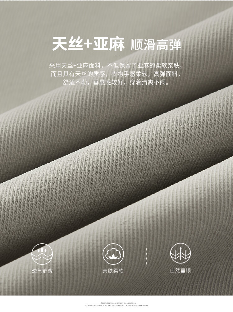 杉杉(FIRS)【天丝亚麻】休闲裤男裤春季商务男士休闲裤男直筒裤子男士长裤子 浅灰 30 170/76A(30)