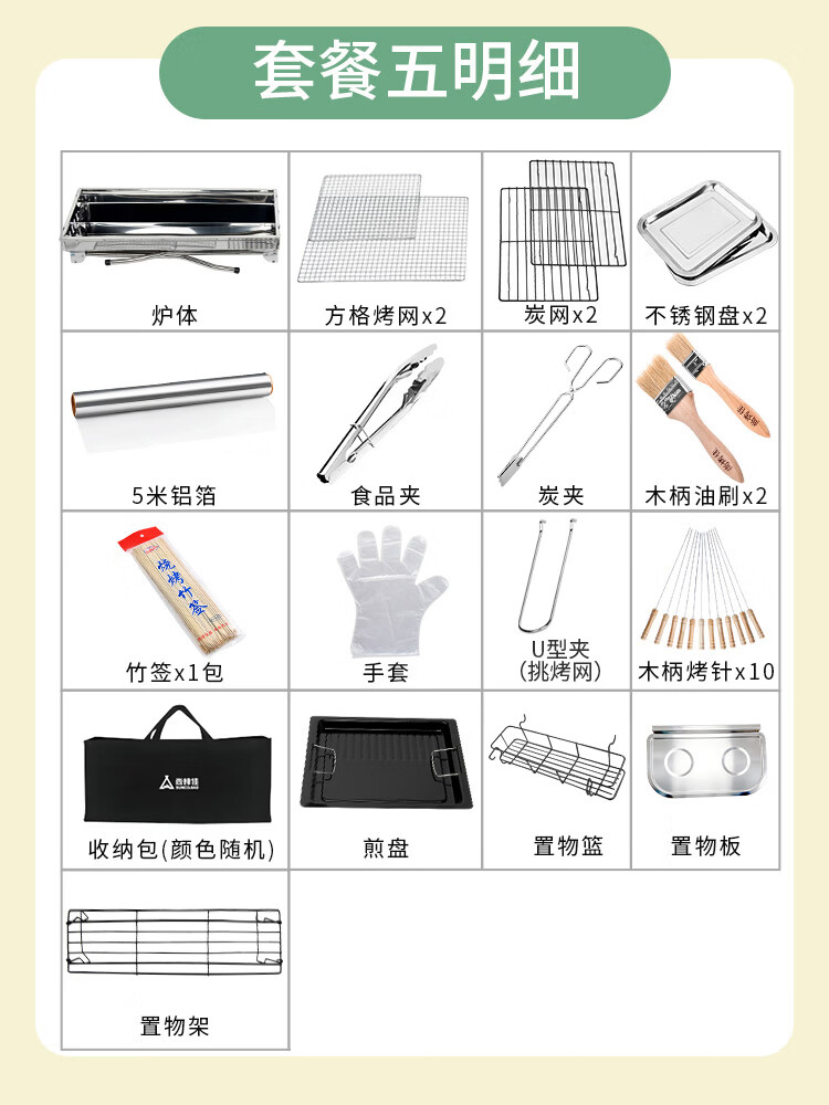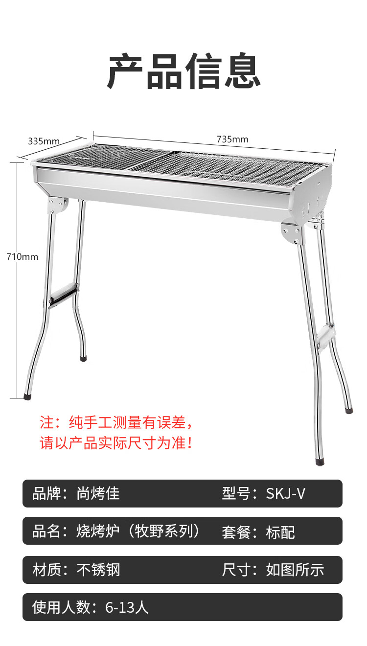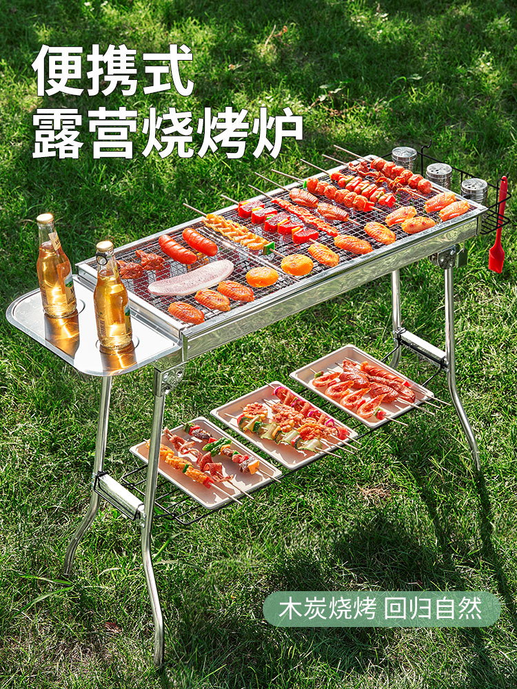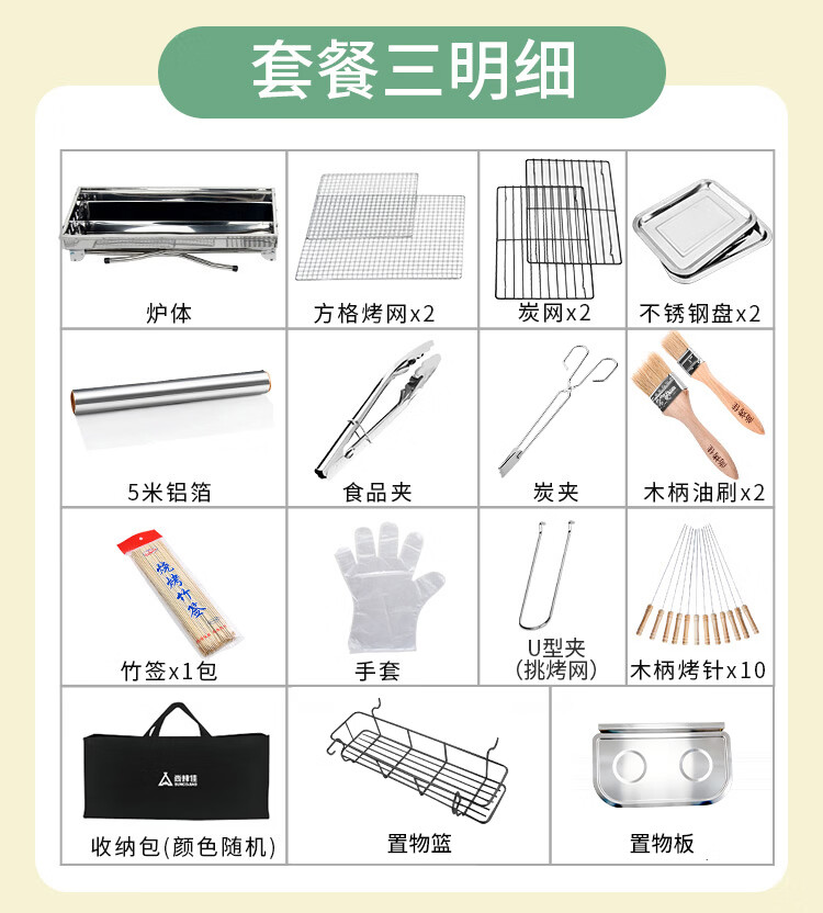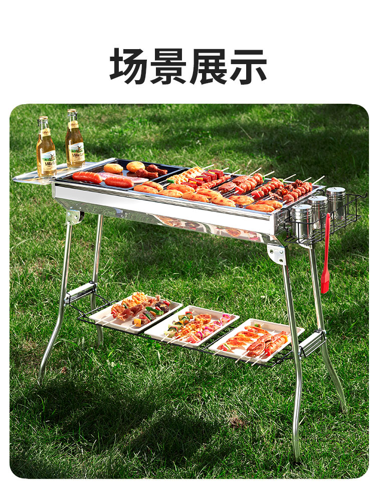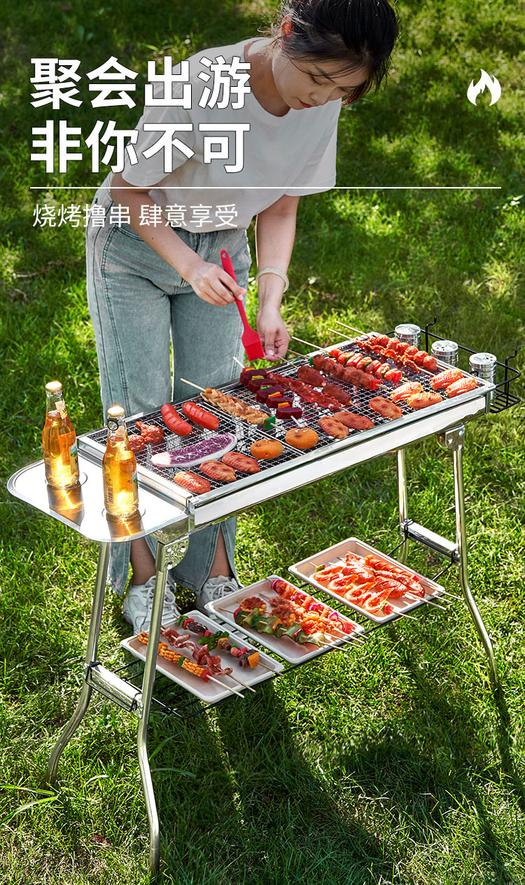 尚烤佳(Suncojia) 户外不锈钢烧烤炉 便携可折叠烧烤架木炭烤炉 碳烤炉烤肉架 地垫 烧烤炉|含配件|抽拉烤网|玛特
