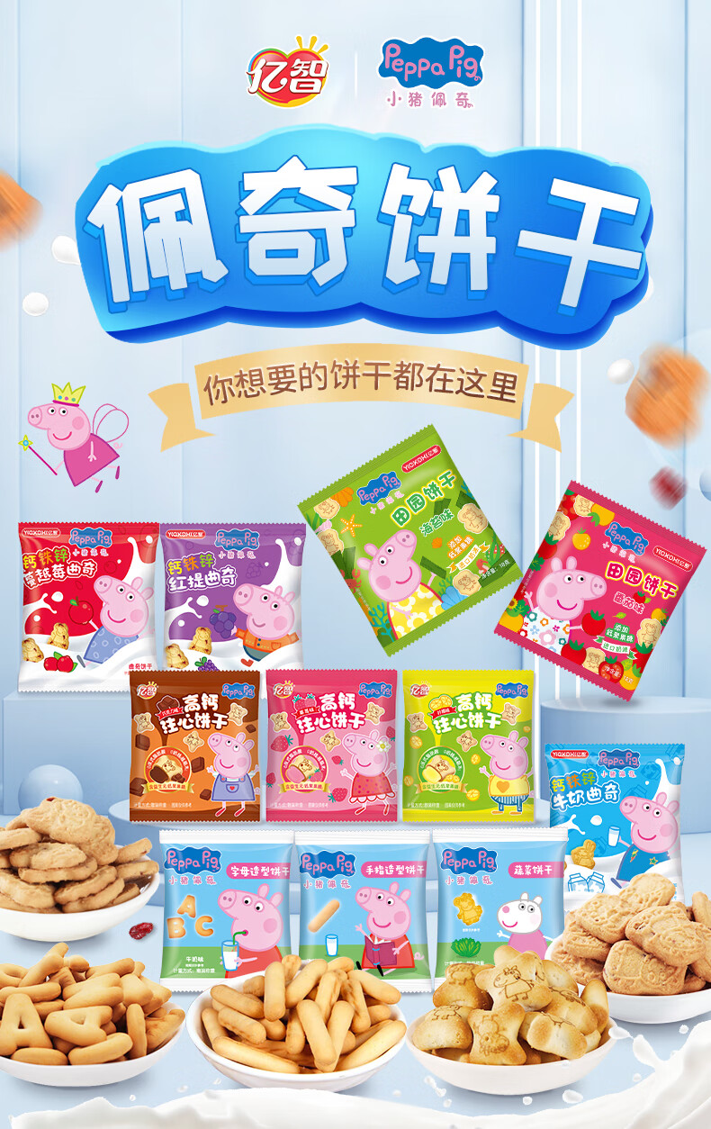 亿智30包随机小猪佩奇散装饼干曲奇注心夹心手指字母饼批发休闲零食 30包随机小猪佩奇饼干【约500g】