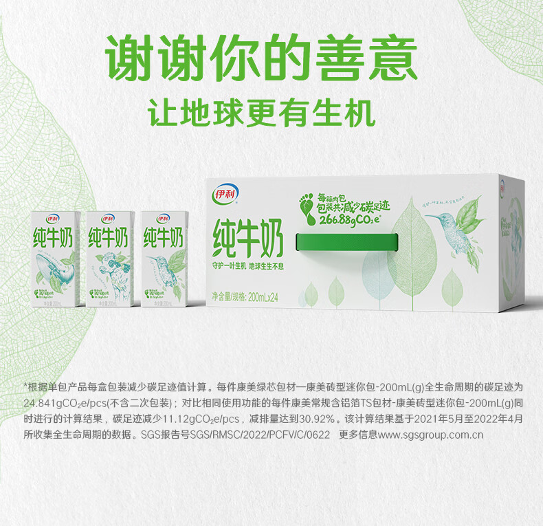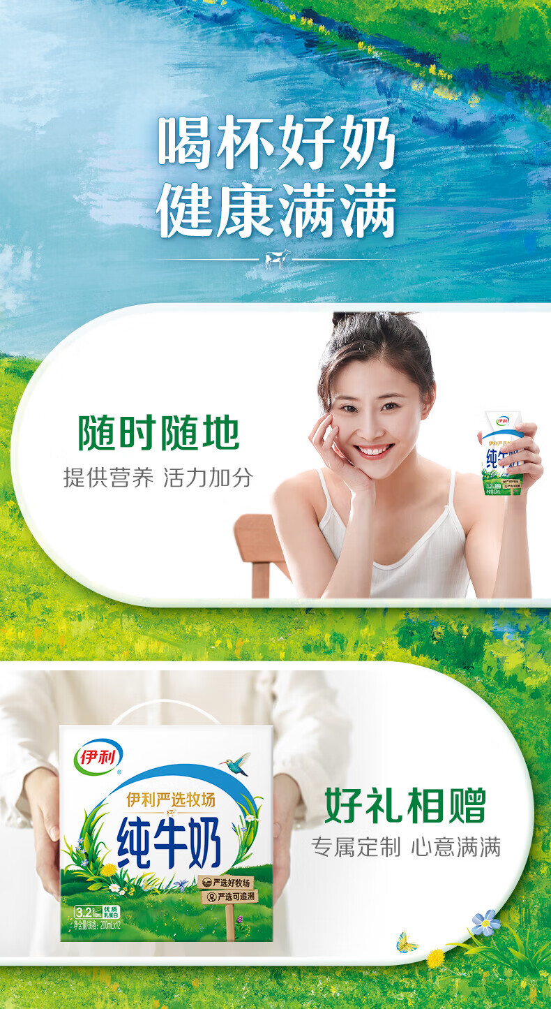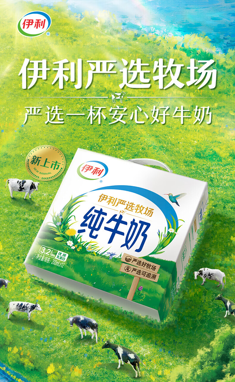伊利纯牛奶 优质乳蛋白 早餐奶 纯牛奶200ml*24盒/箱3-4月产