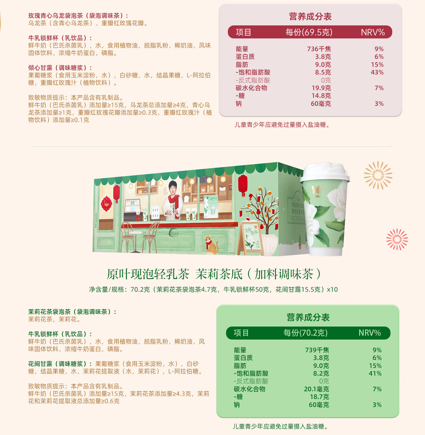 香飘飘【赠孙颖莎定制周边】低GI奶茶铺子玫瑰青心乌龙轻乳茶10杯