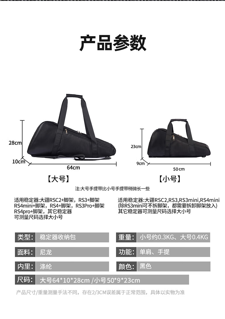 相机稳定器收纳包适用于大疆RSC2/RS3/RS3Mini/RS4/RS4Mini/RS3Pro/RS4Pro云台手提单肩包 黑色小号