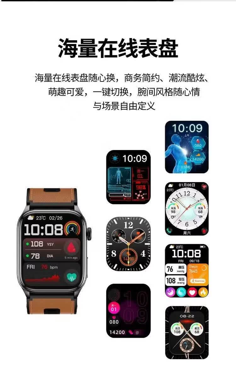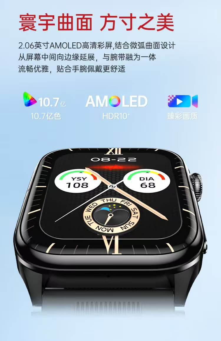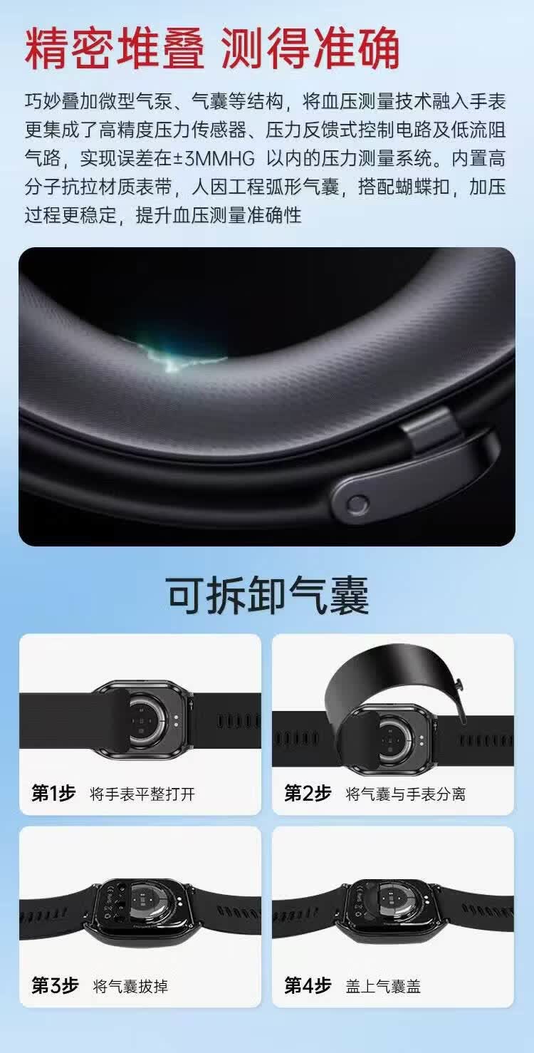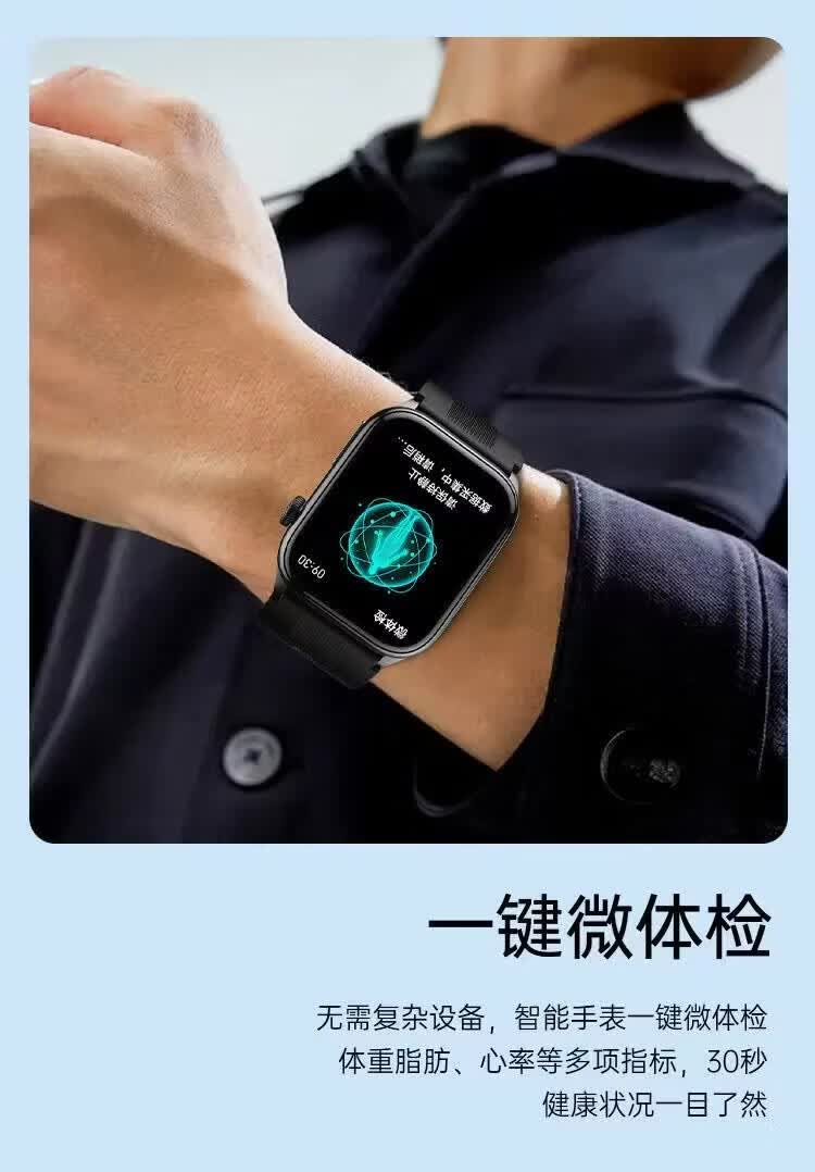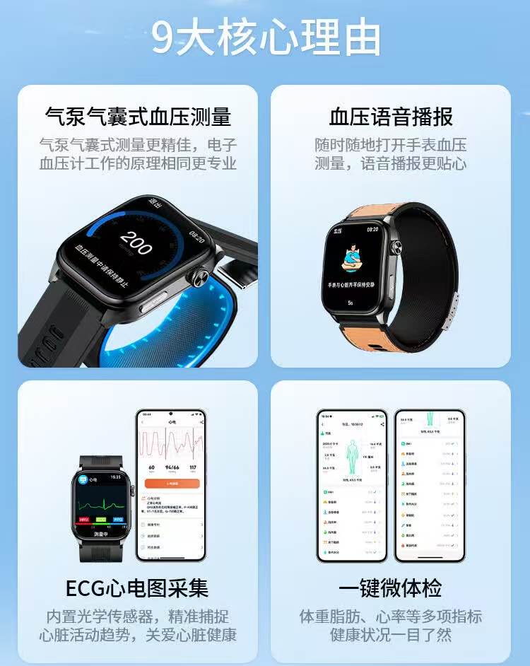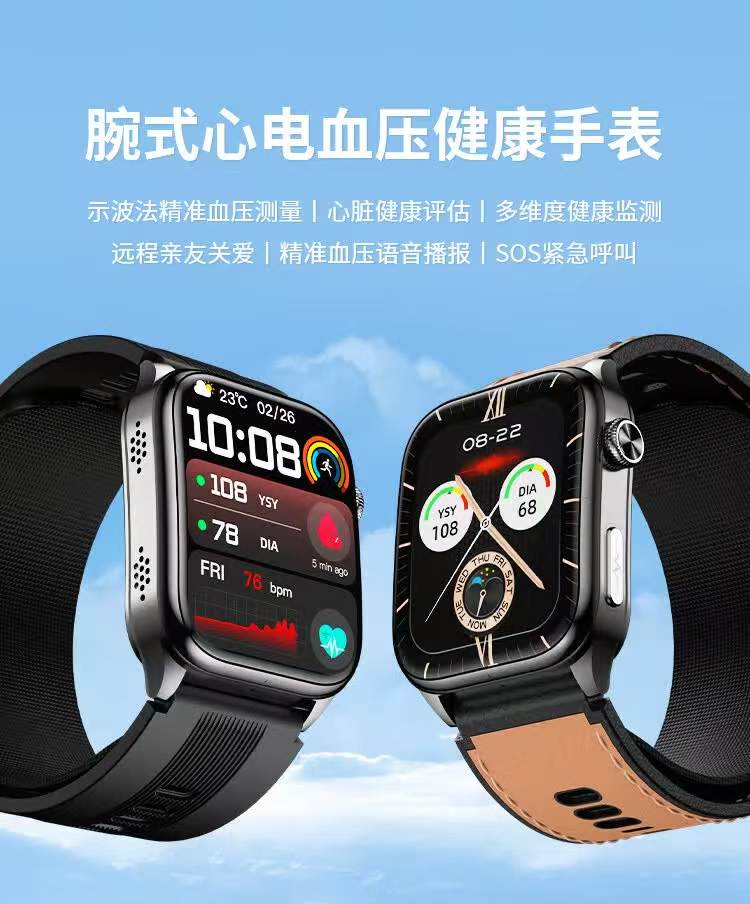 HKVW鸿蒙华为机适用智能手表测血压测心率血氧血糖血脂尿酸心脏心电智能健康监测手表2026年新款一体机 【顶配版黑胶】德国进口芯片 高端全自动气泵加压测量 -ECG心电图 蓝牙通话-语音播报-NFC门禁