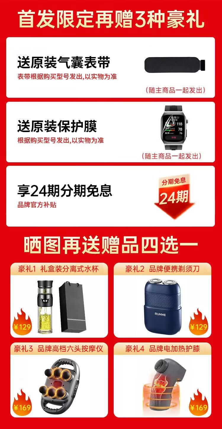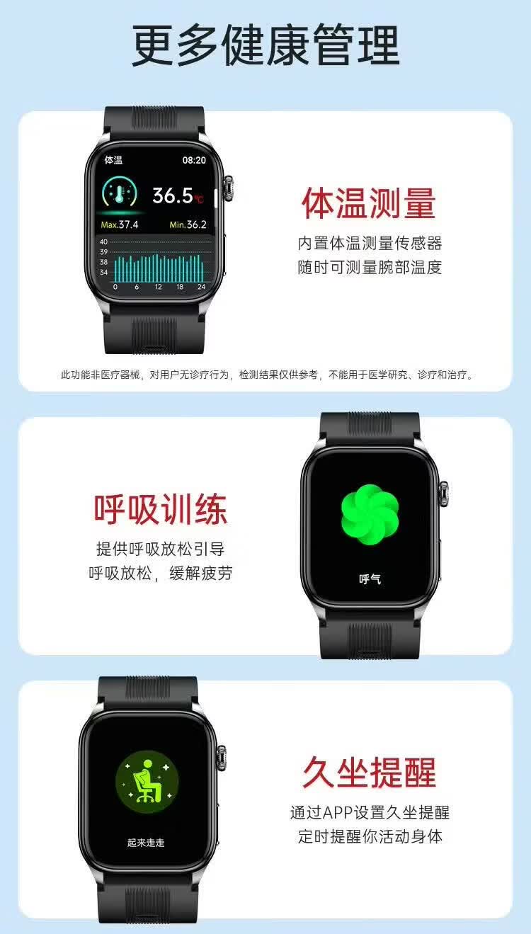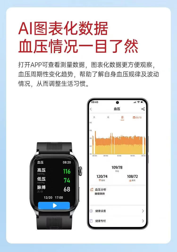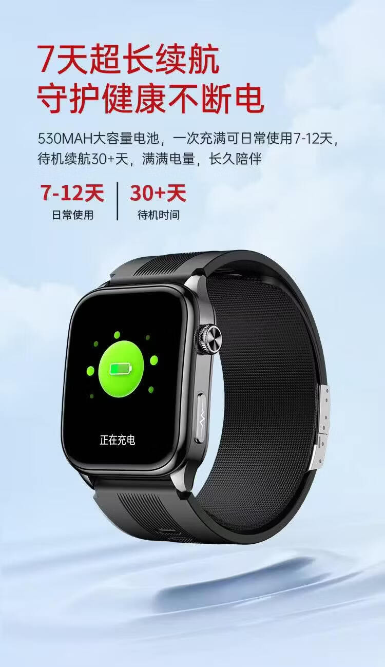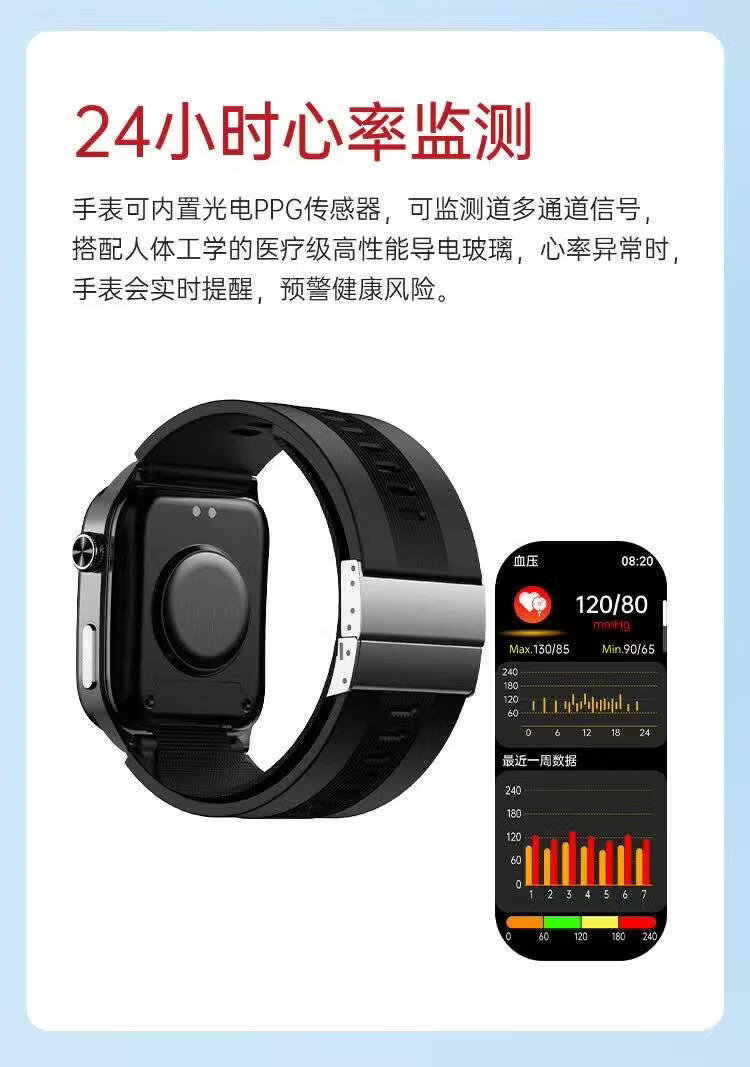 HKVW鸿蒙华为机适用智能手表测血压测心率血氧血糖血脂尿酸心脏心电智能健康监测手表2026年新款一体机 【顶配版黑胶】德国进口芯片 高端全自动气泵加压测量 -ECG心电图 蓝牙通话-语音播报-NFC门禁